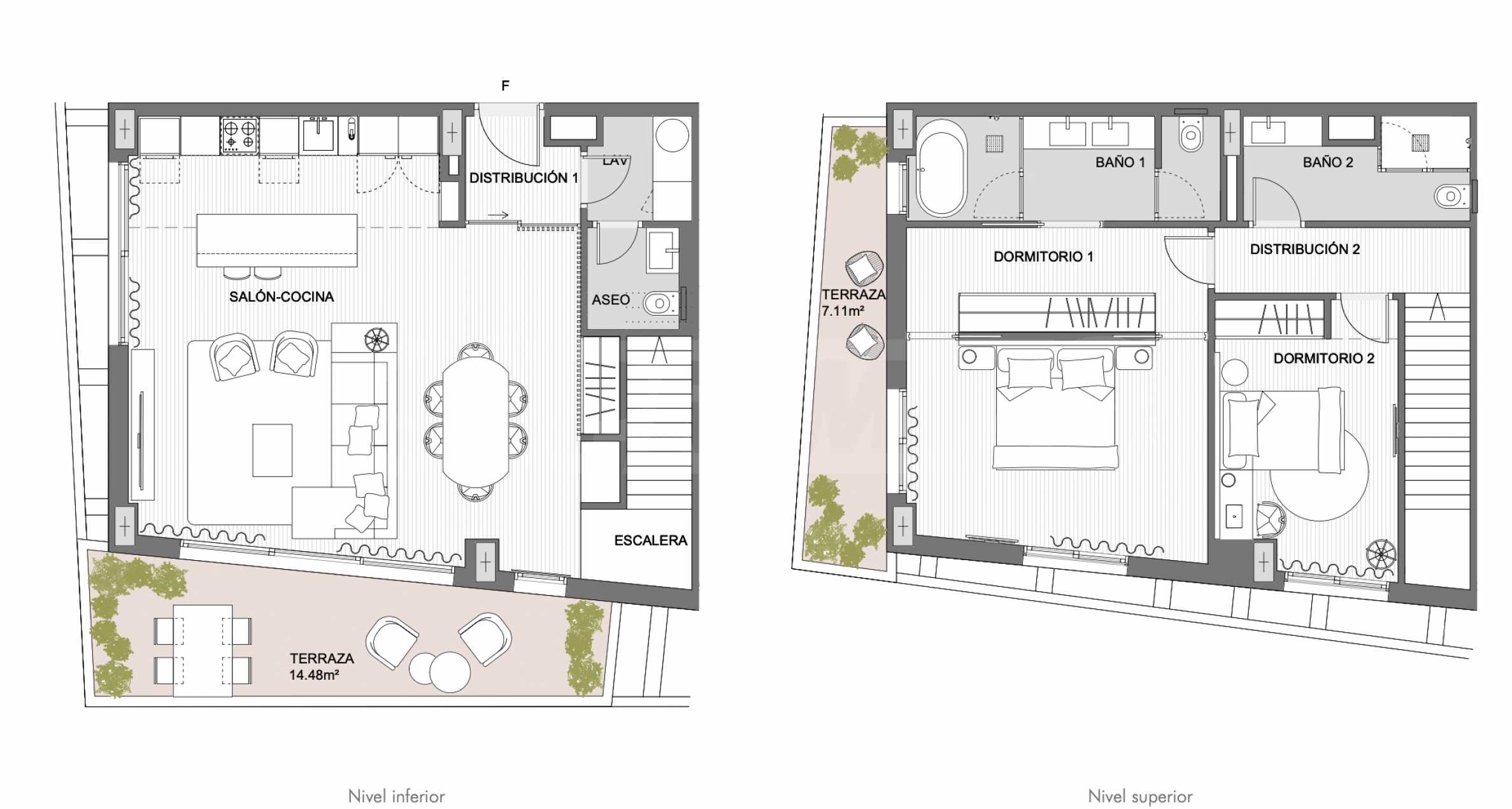 Представяме тристаен апартамент Octavia 44 – ексклузивен двуетажен пентхаус на първа линия до морето в западната част на Малага, с две спални и застроена площ от 183 кв.м.