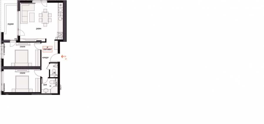 Апартамента се намира на 12-ти етаж от общо 16, с чиста площ от 82.69 кв.м.