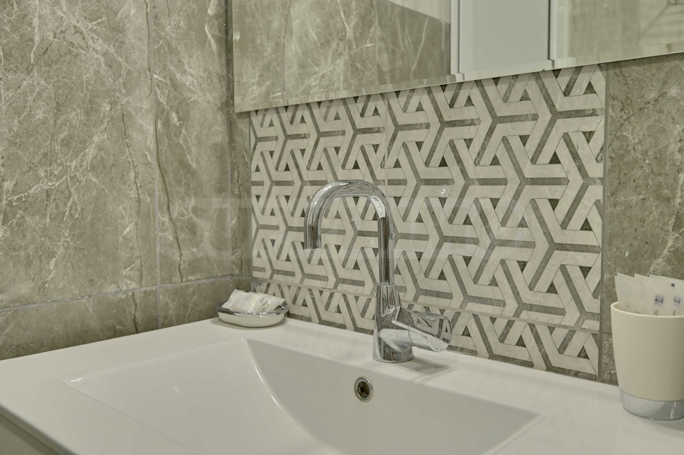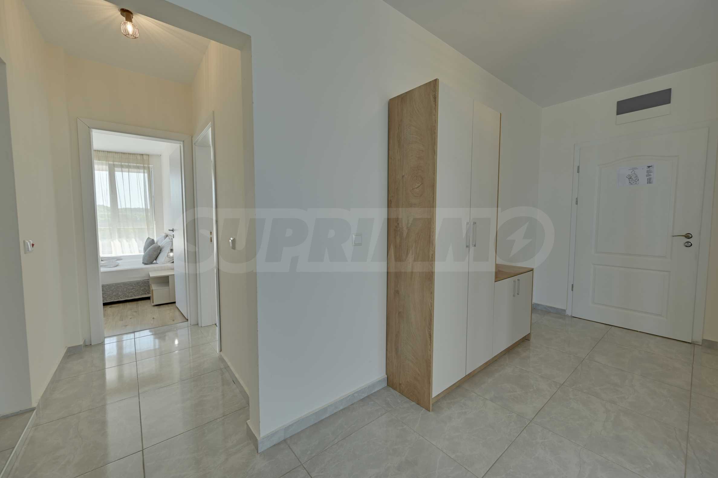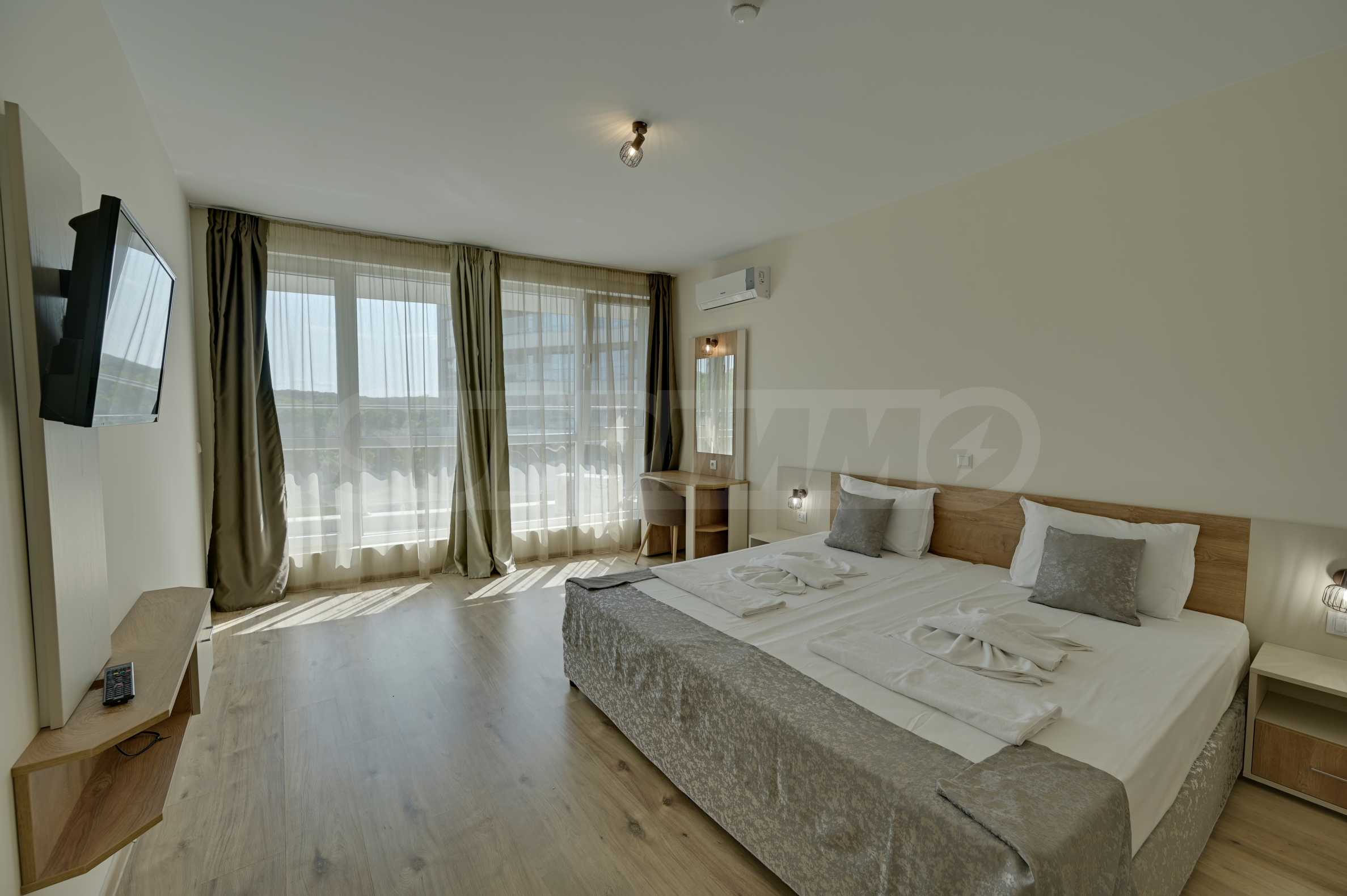 Жилището се продава напълно обзаведено, с внимание към всеки детайл, и е готово за нанасяне или отдаване под наем. Сградата разполага с отлично поддържани общи части, басейн, рецепция и допълнителни удобства, характерни за високия клас на хотела.