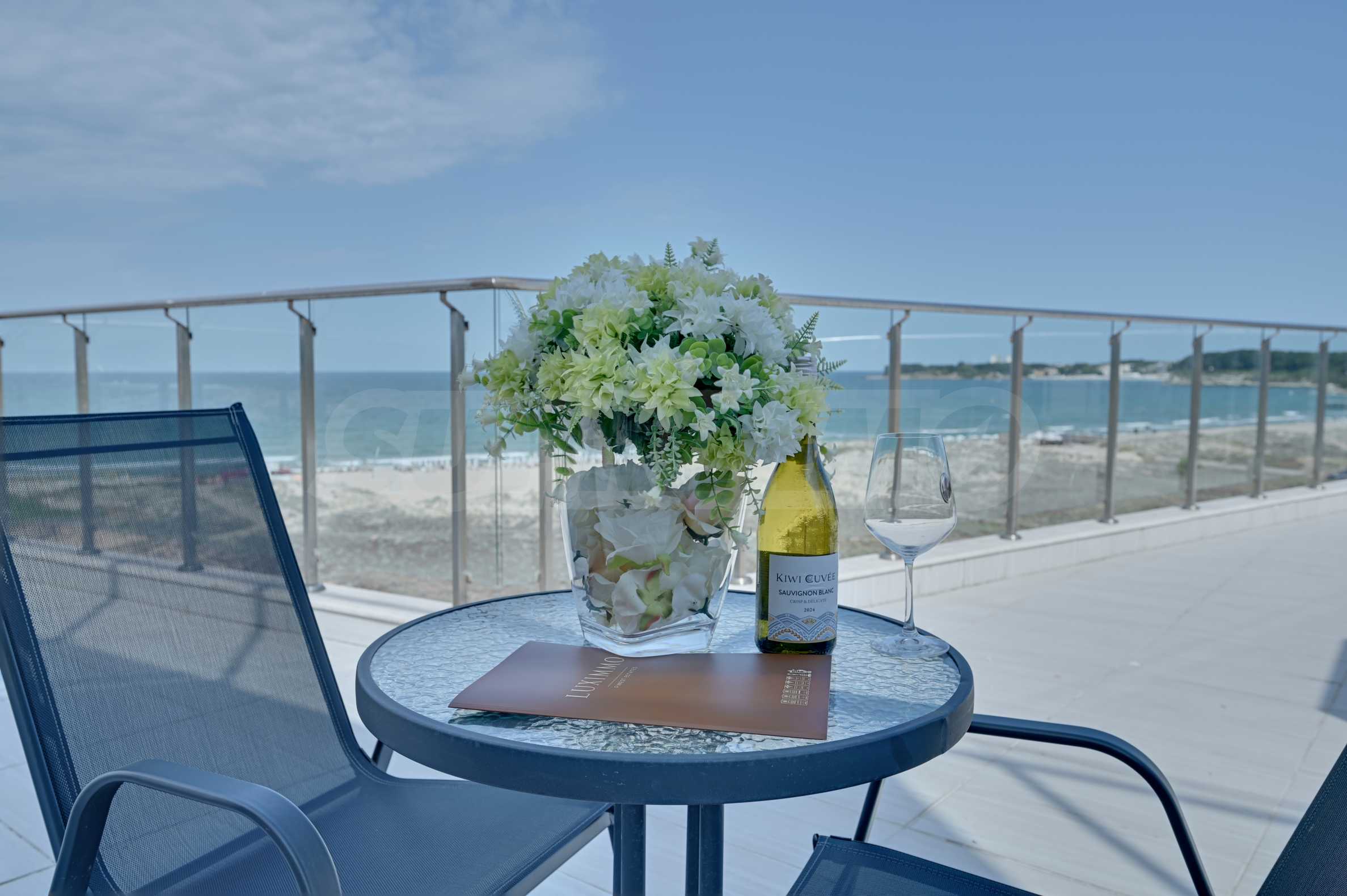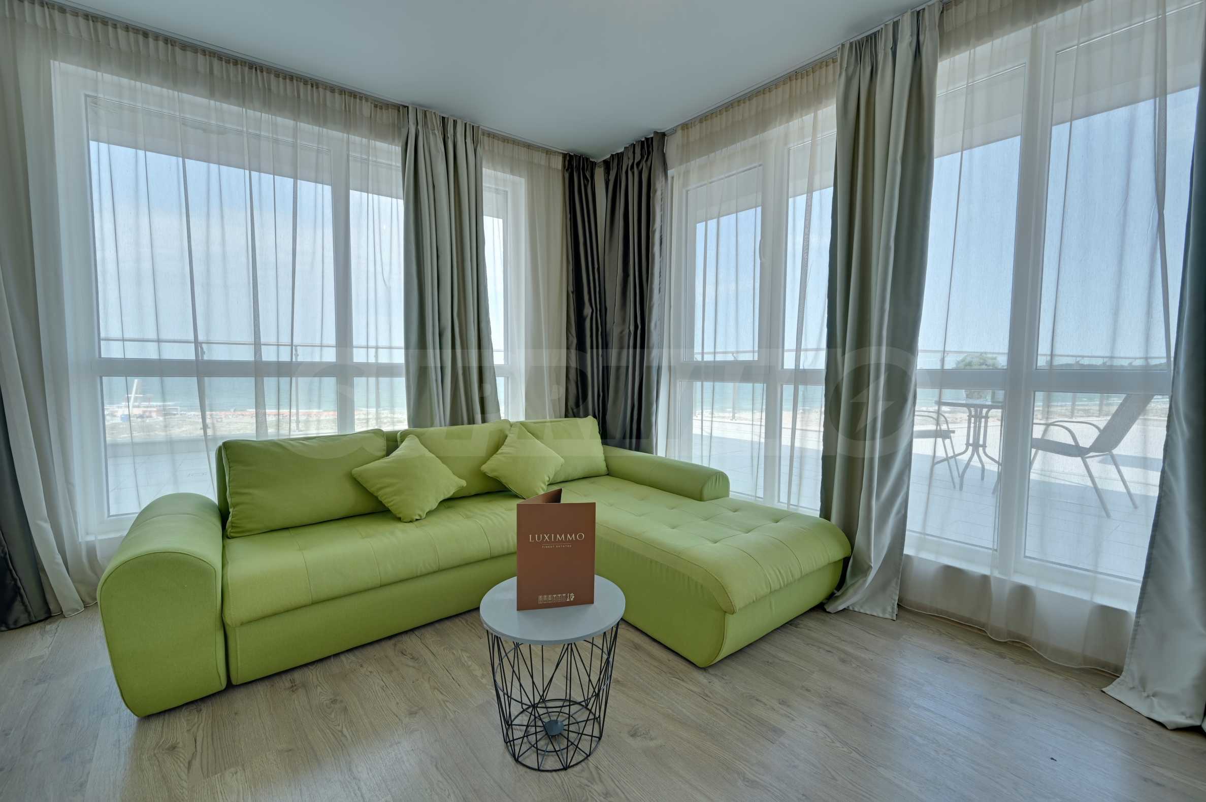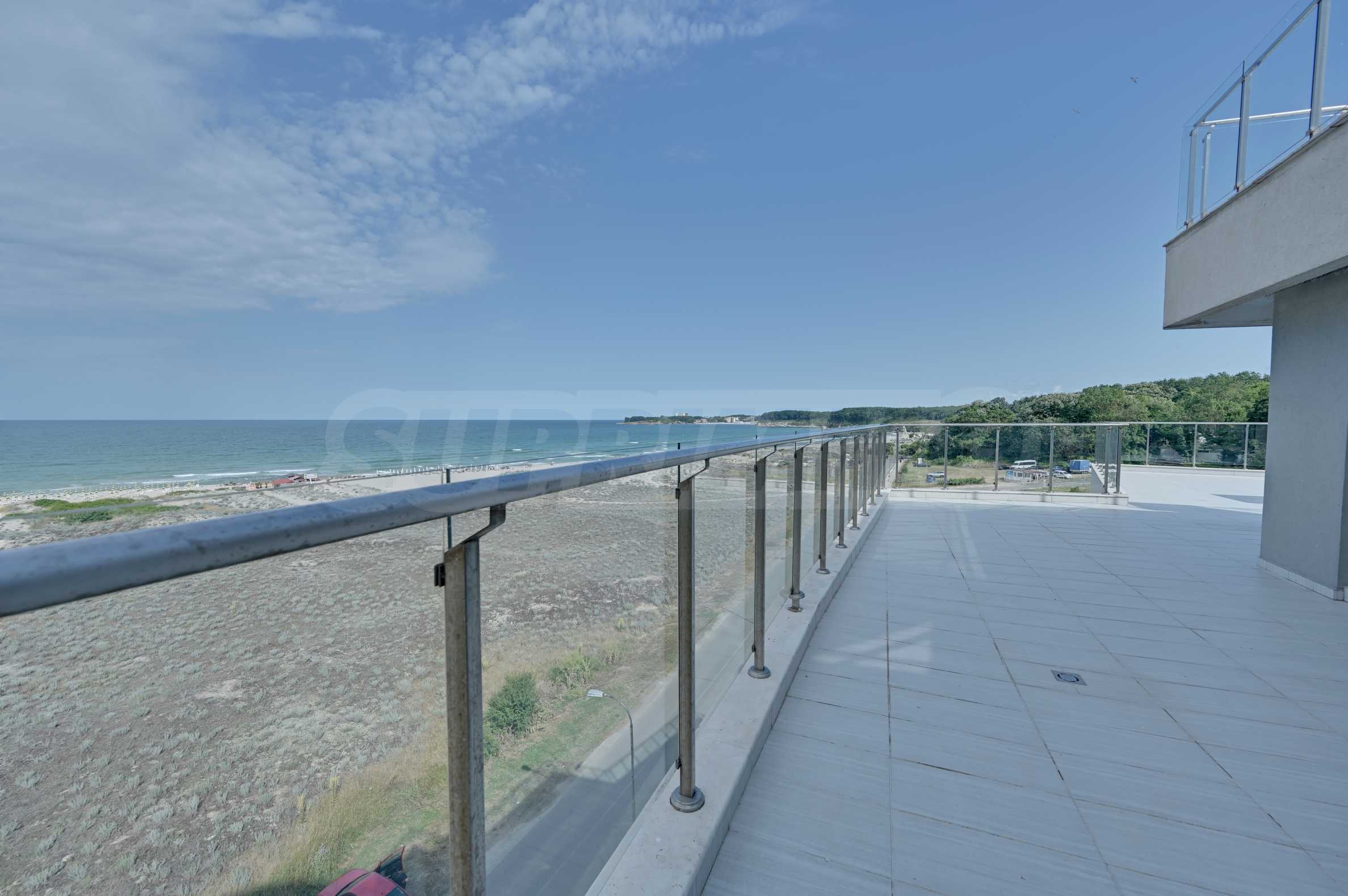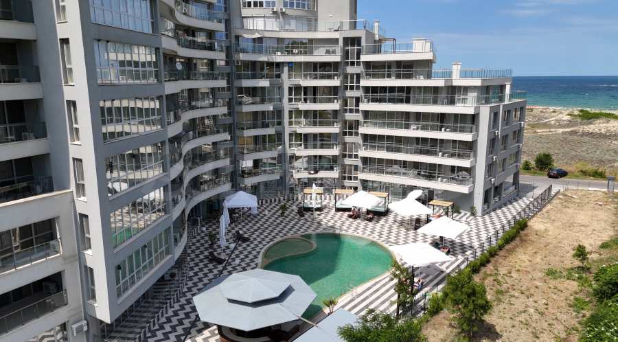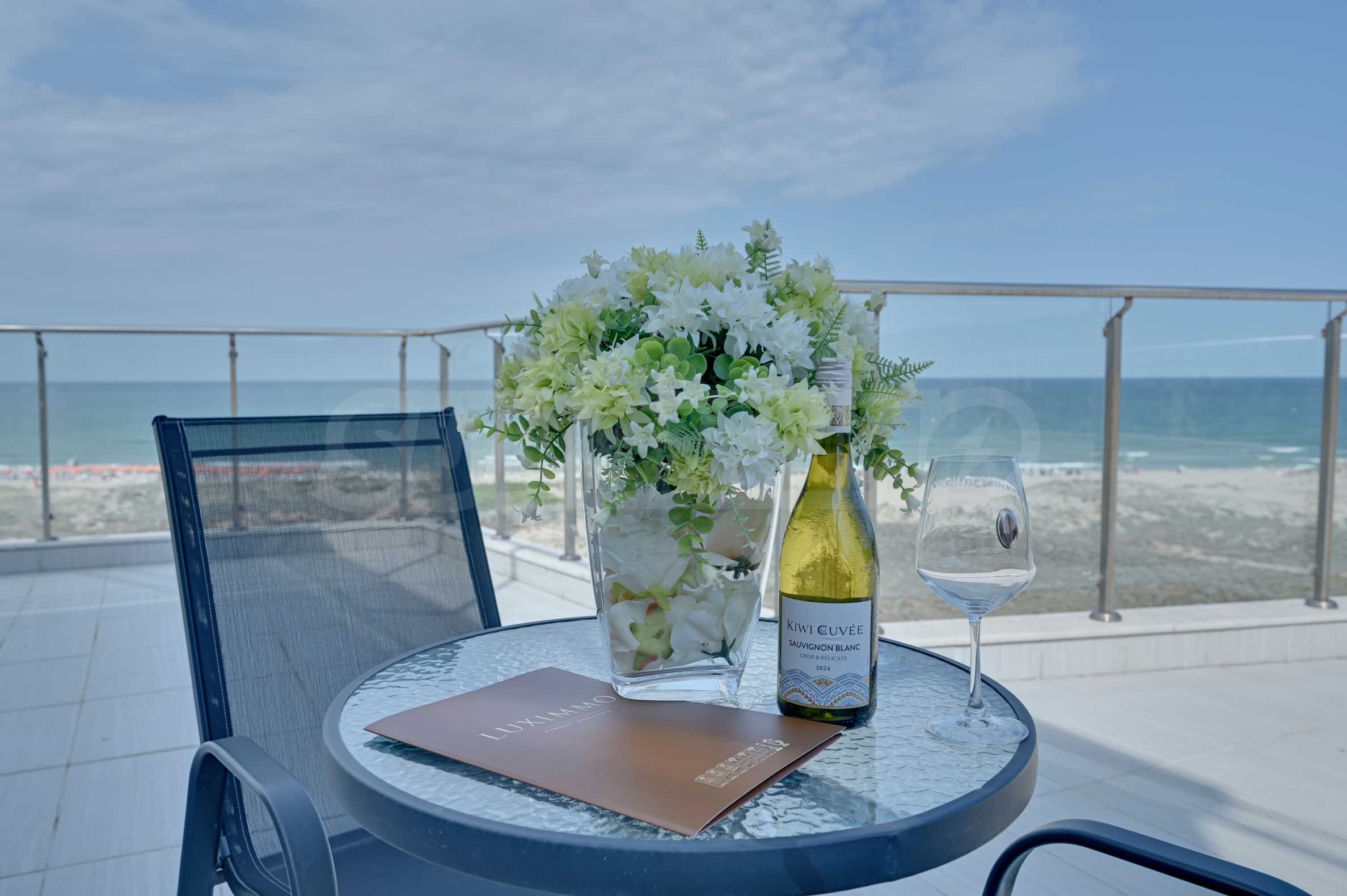 Представяме Ви изключителен тристаен апартамент с морска и горска панорама, разположен на първа линия с директен достъп до плажа в престижен четиризвезден комплекс в гр. Приморско.