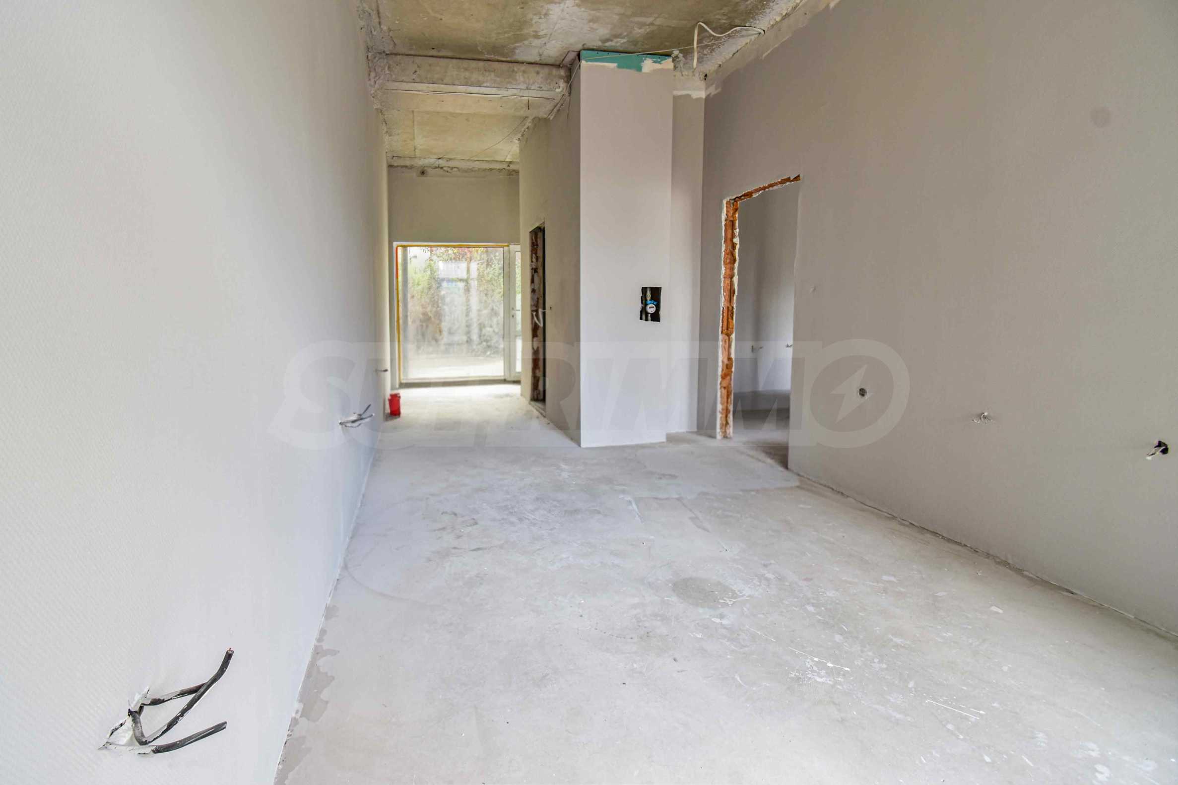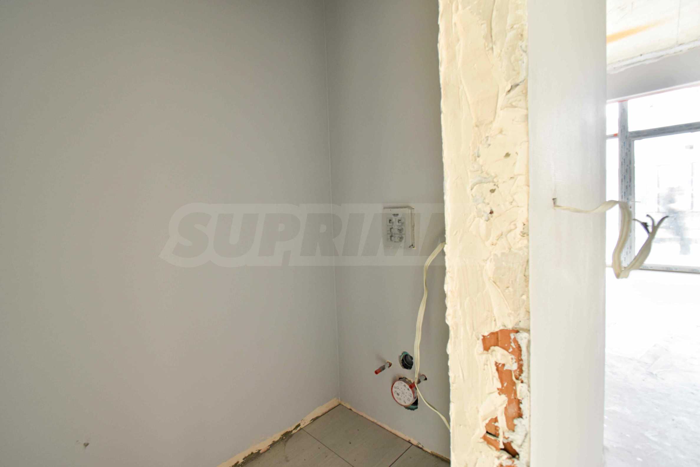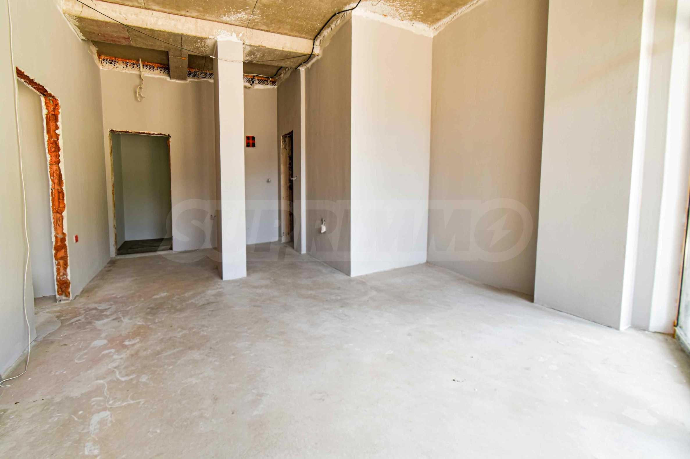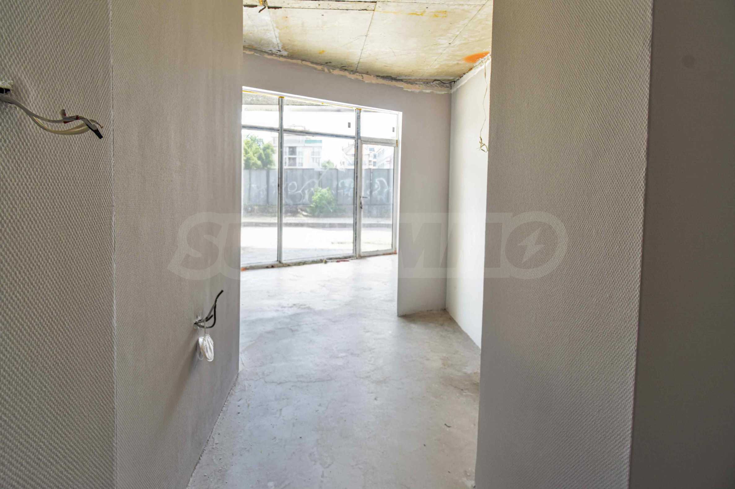 Пространството е разпределено в три отделни помещения, като всяко от тях разполага със собствен санитарен възел, като това позволява гъвкаво използване на обекта. Освен това, имотът разполага с два отделни входа от фасадната страна, както и два изхода към тераси в задната част на сградата, което осигурява допълнителна функционалност и удобство при логистика или организиране на потоци от клиенти и персонал.