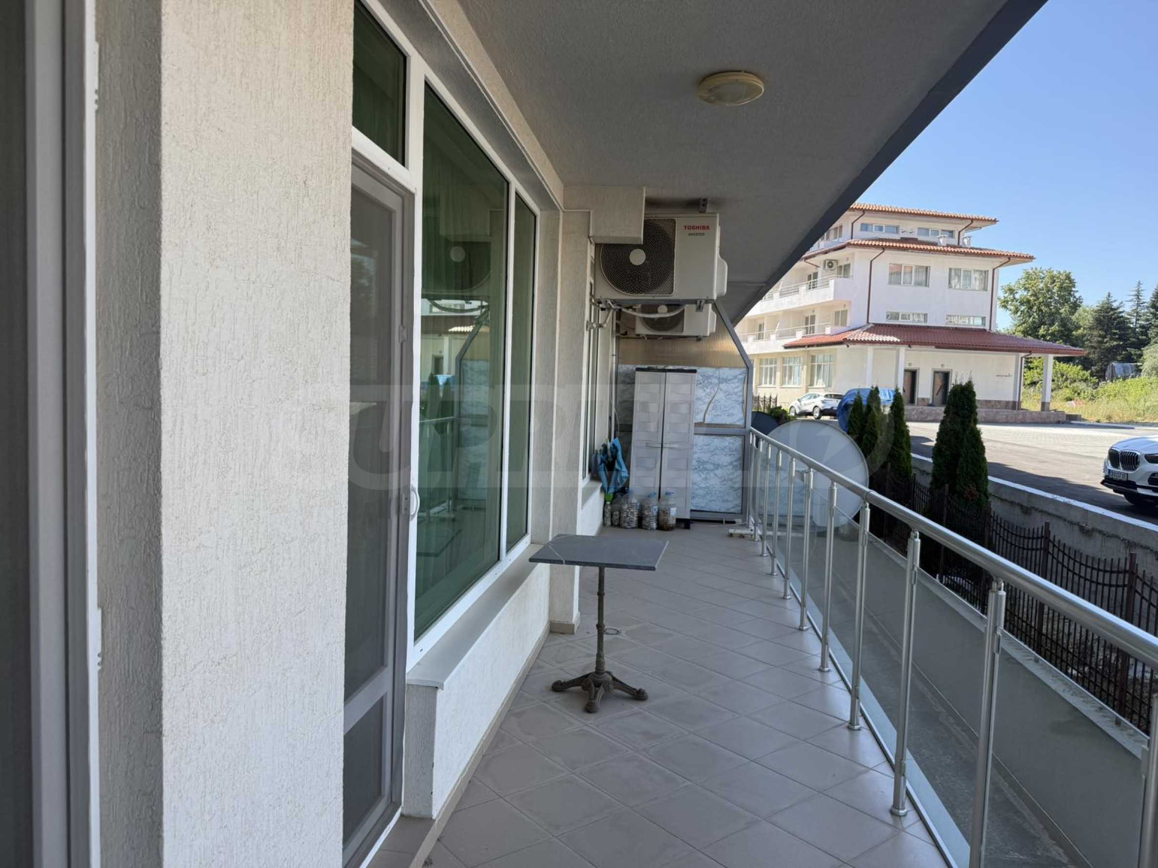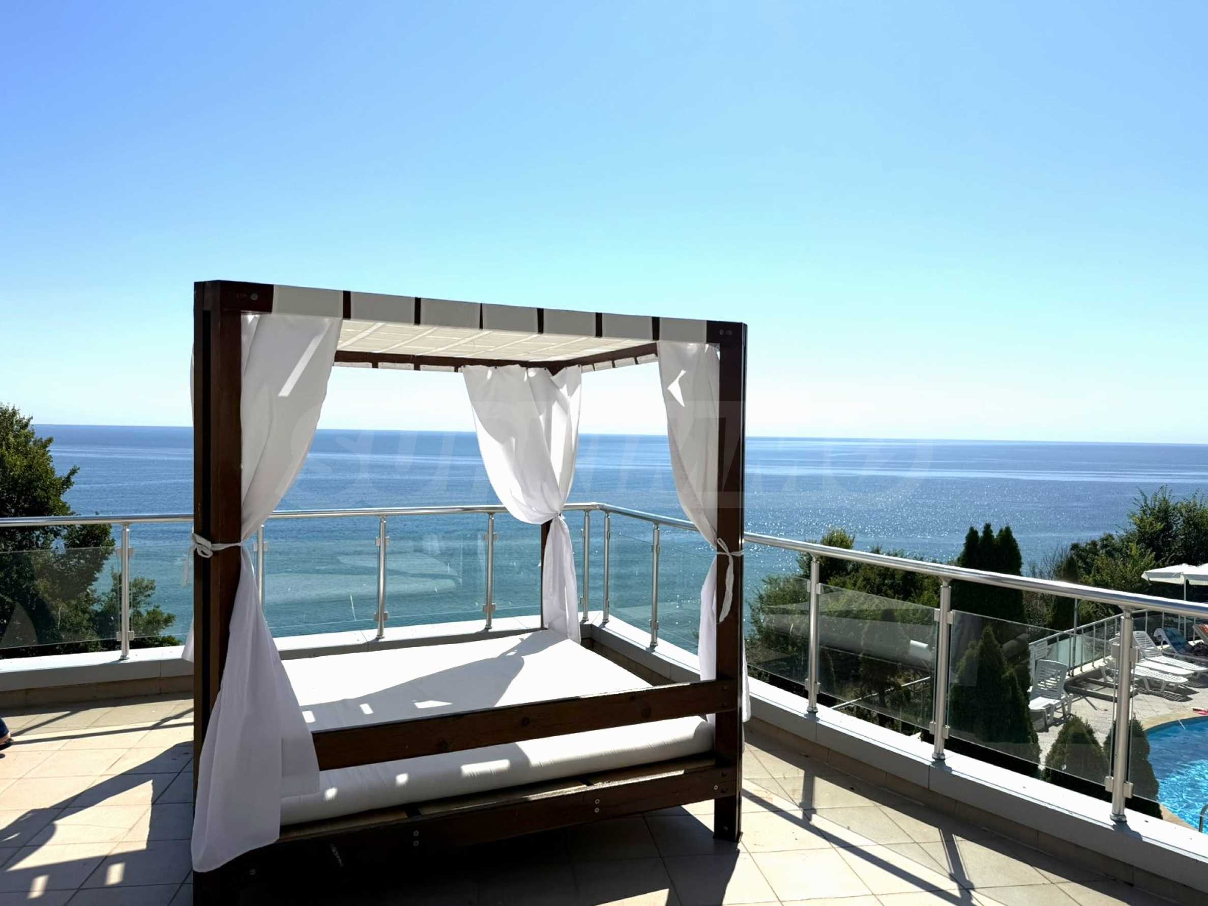 Сградата е въведена в експлоатация (с Акт 16), с басейн, асансьор и рецепция.