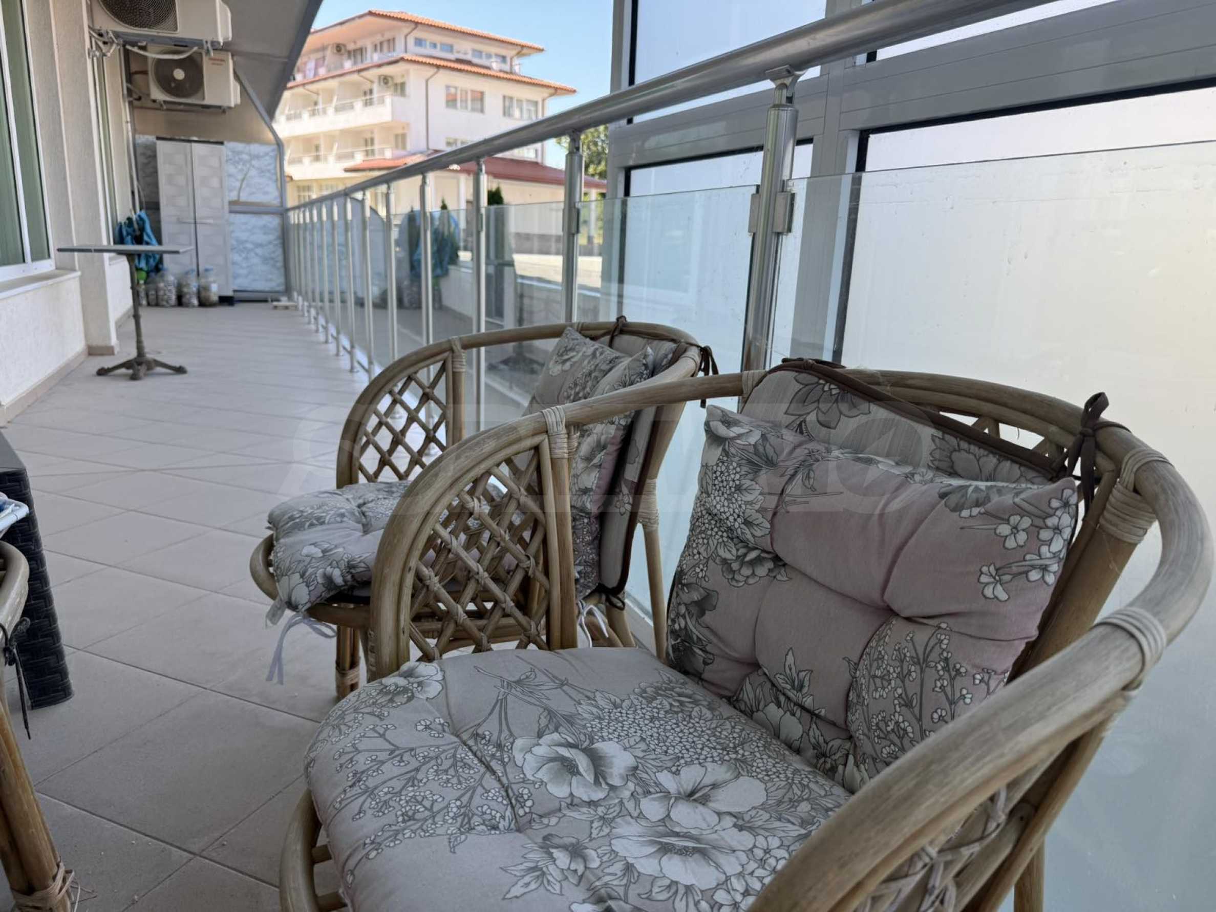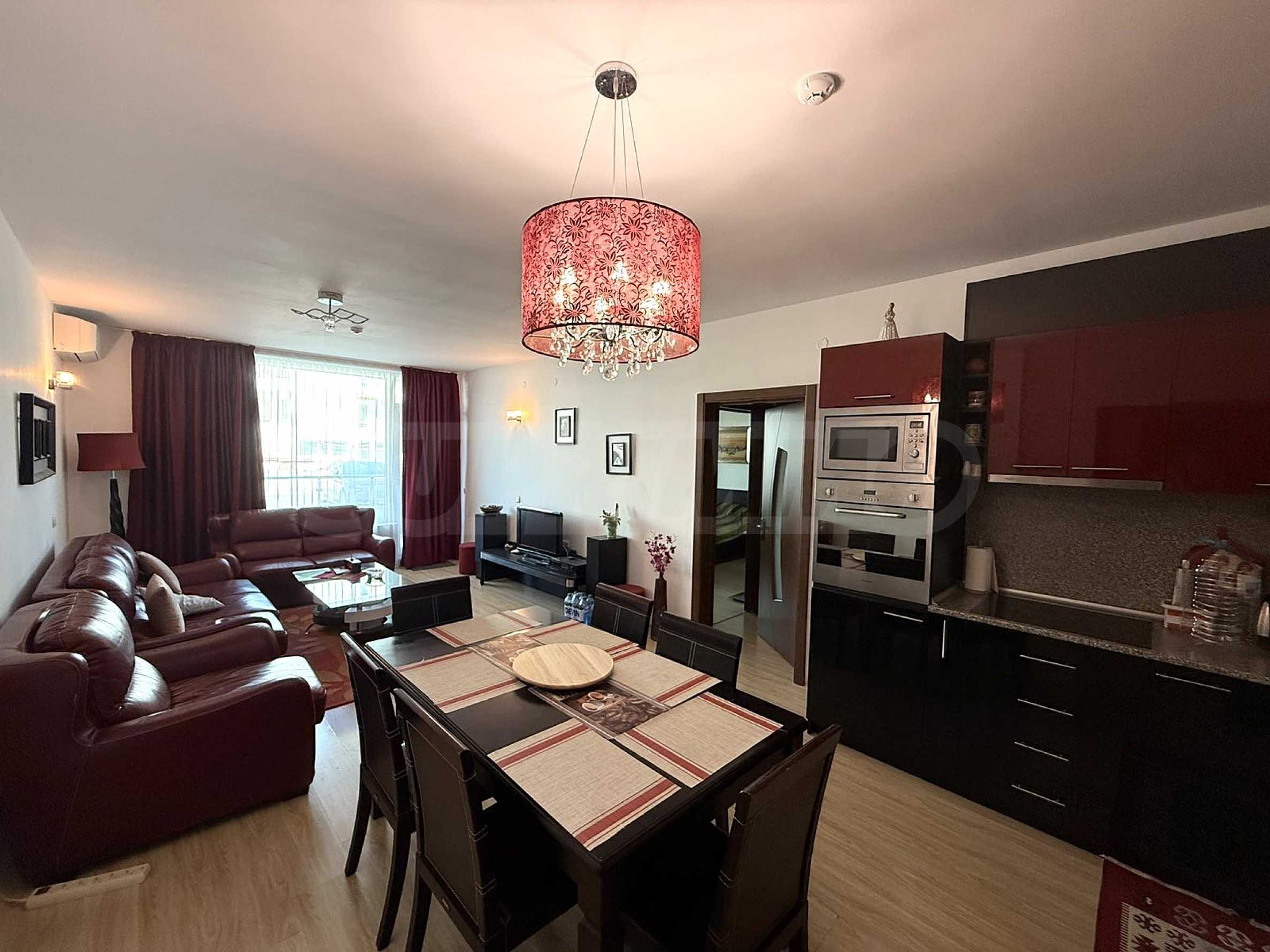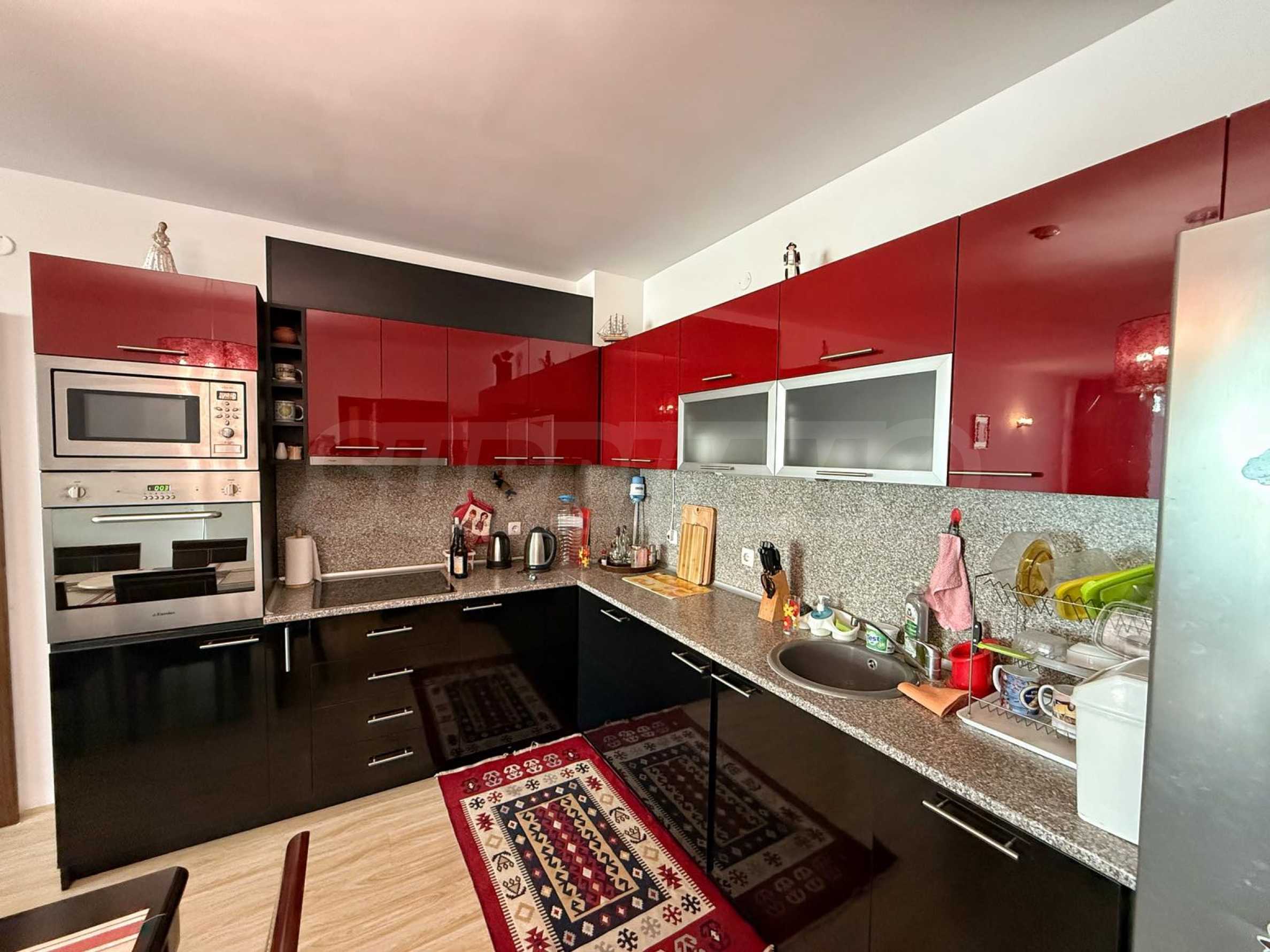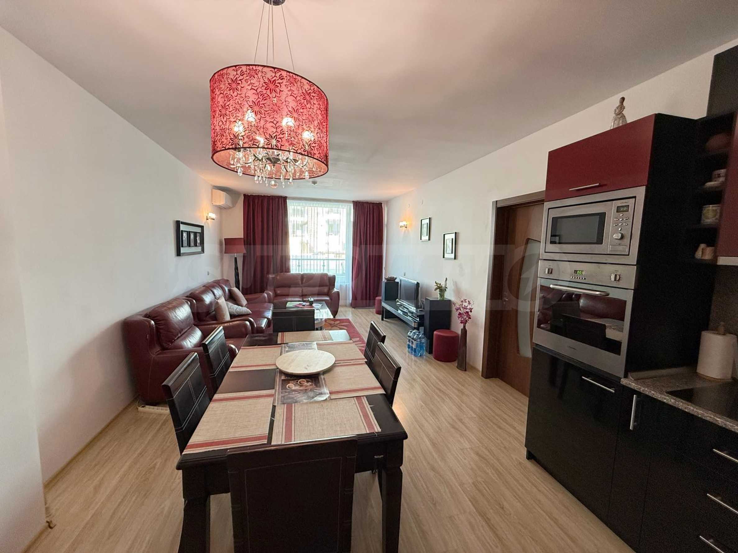 Апартаментът е напълно обзаведен и оборудван с високо качествени електроуреди и мебели. Предлага комфорт и удобство както за целогодишно живеене, така и за почивка.