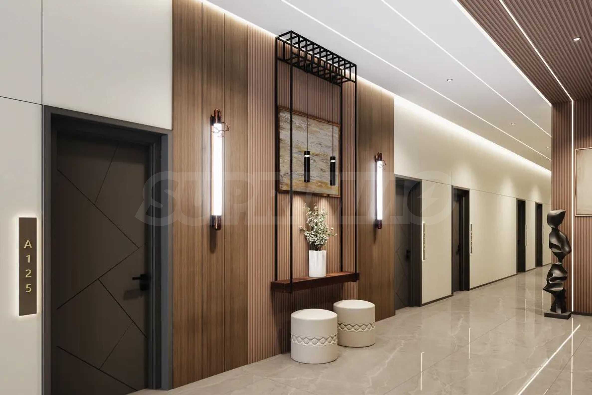 Освен комфортните апартаменти, сградата предлага селекция от удобства, създадени с мисъл за удобството и спокойствието на обитателите. Сред тях ще откриете басейн, фитнес, детска зона за игра, подземен паркинг и охрана.
