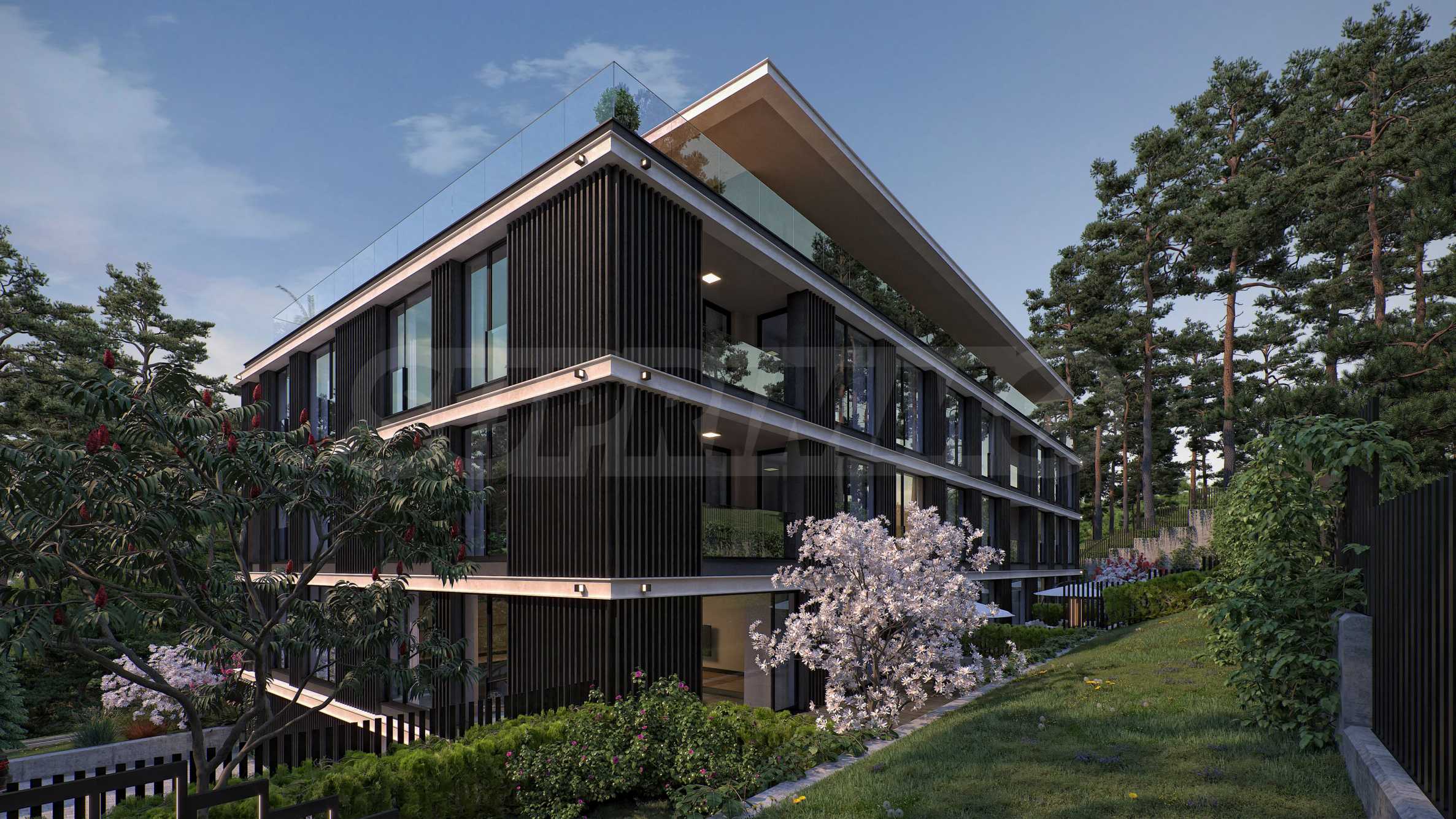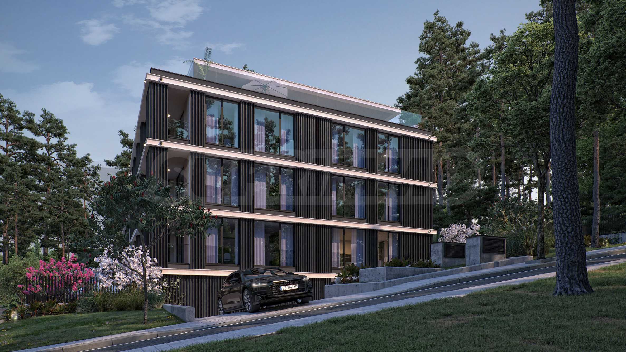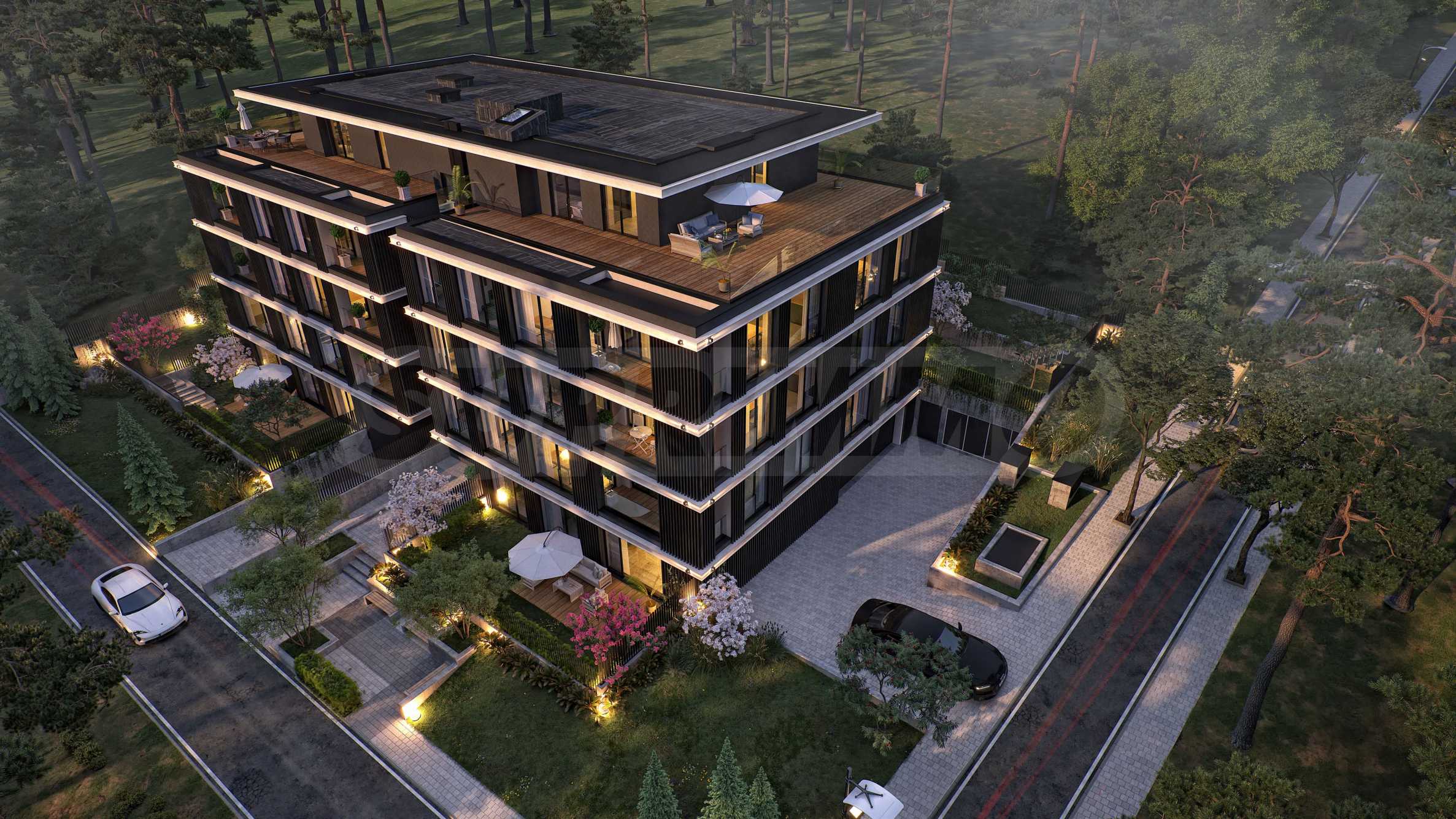 Проектирана с внимание към детайла и околната среда, сградата ще бъде изпълнена по най-високите стандарти: алуминиева дограма с троен стъклопакет, висок клас топлоизолация, фасада с естествени дървени елементи ARTEFINO, подово отопление и умна система за видеонаблюдение с функции за засичане на риск от пожар, наводнение или опасност за обитателите.