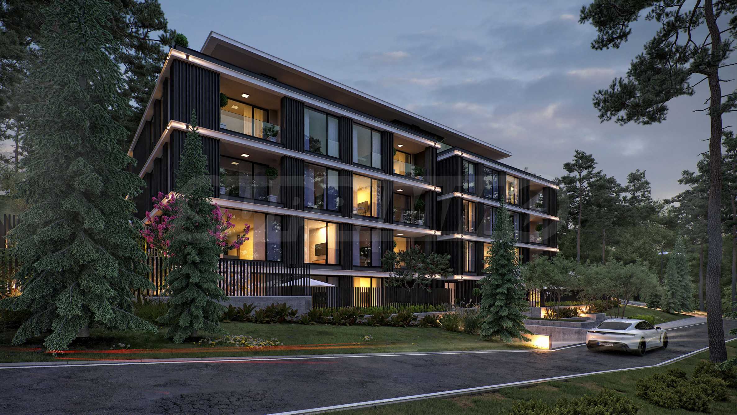 Апартаментите са от тип тристайни имоти и един четиристаен апартамент. Предлагат се в степен на завършеност по БДС. Жилищата разкриват гледки към езерото или към живописна борова гора зад сградата, като локацията е изцяло сред зеленина и вече застроена среда с обитаеми къщи – без риск от бъдещо строителство в близост.