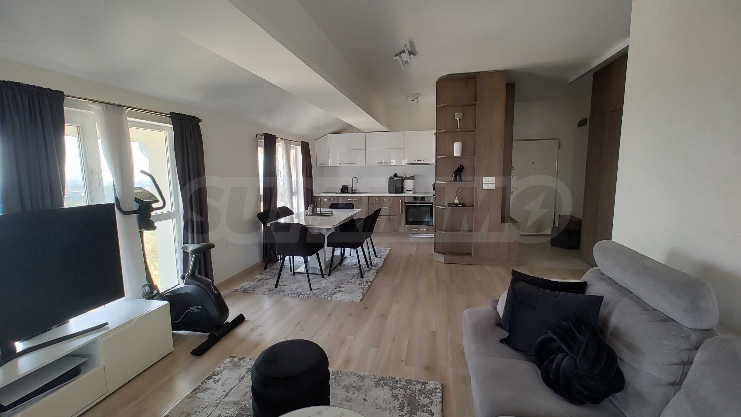 Имотът е обзаведен с вкус и внимание към детайла и оборудван с висок клас мебели и техника, като досега е обитаван единствено от собствениците и се отдава за първи път.