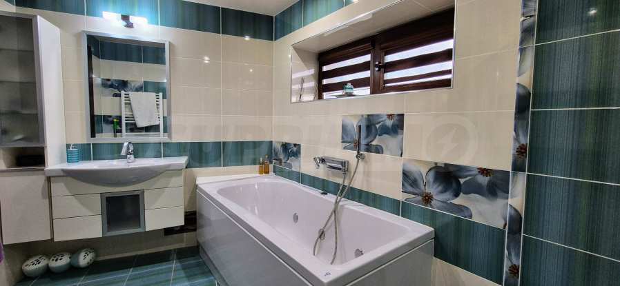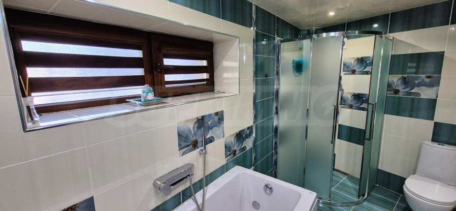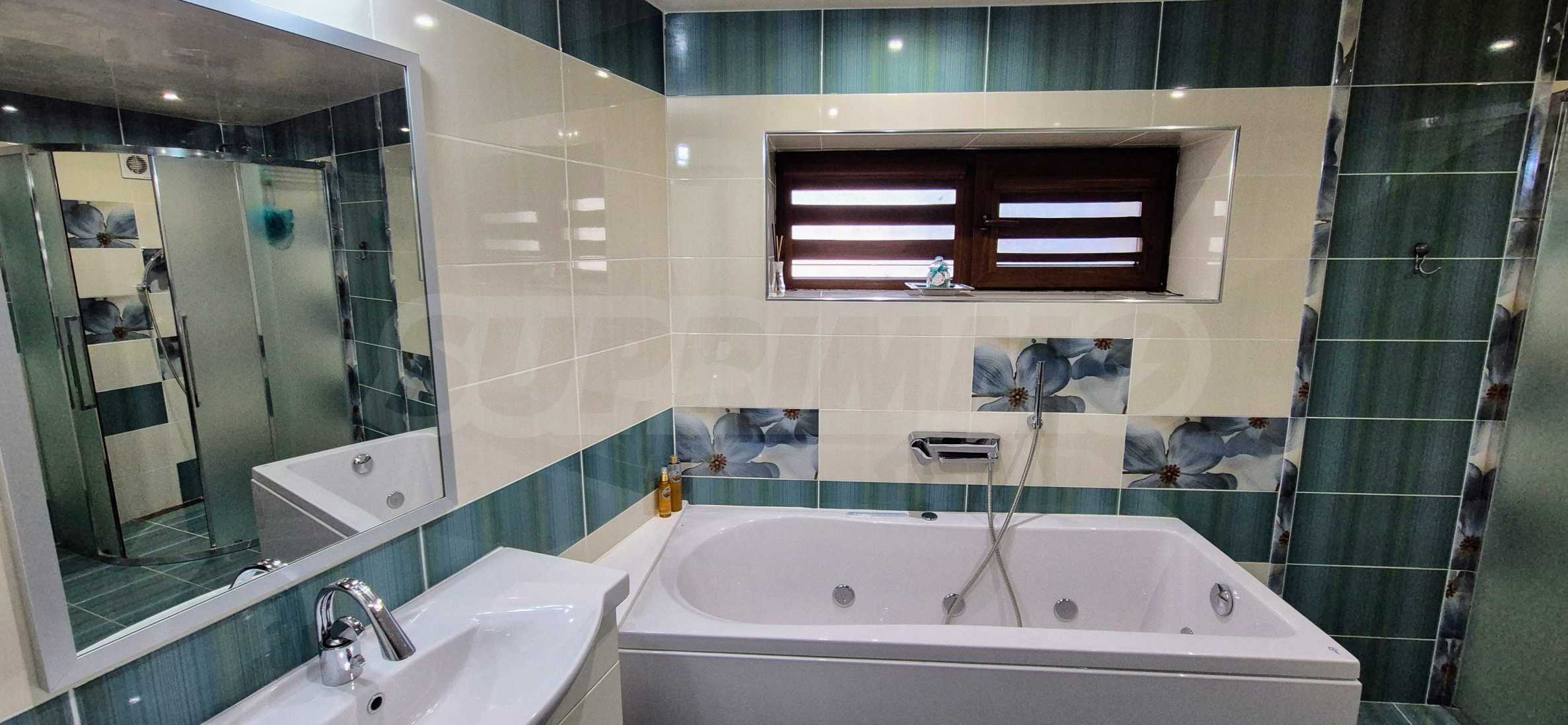- Модерна баня с хидромасажна вана и душ кабина;