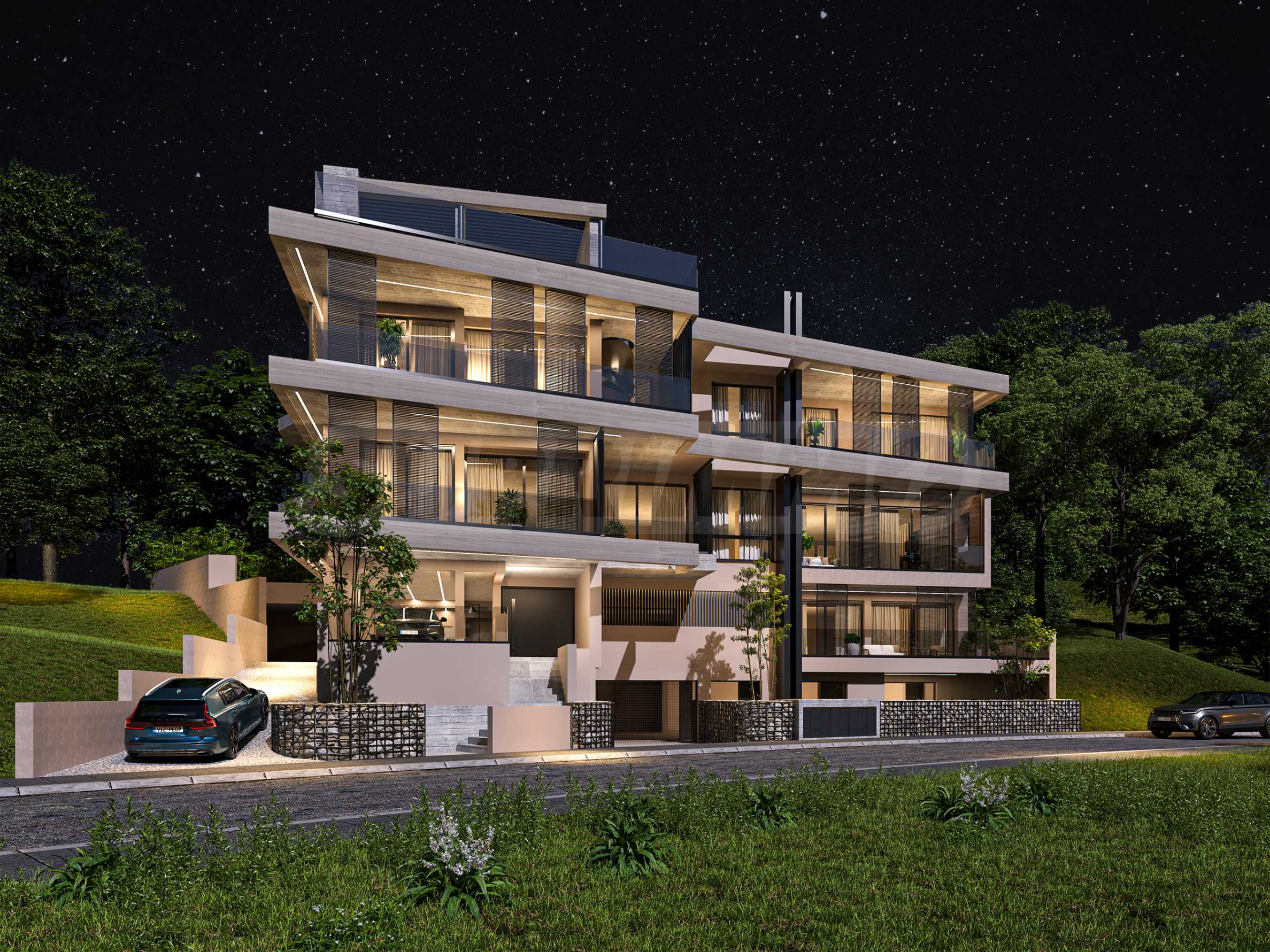 Представяме четиристаен апартамент в Evergreen II – бутиков жилищен проект, разположен в спокойната и зелена местност Агиос Тихонас, само на 6 минути с кола от плажовете и 5-звездните хотели на Лимасол.