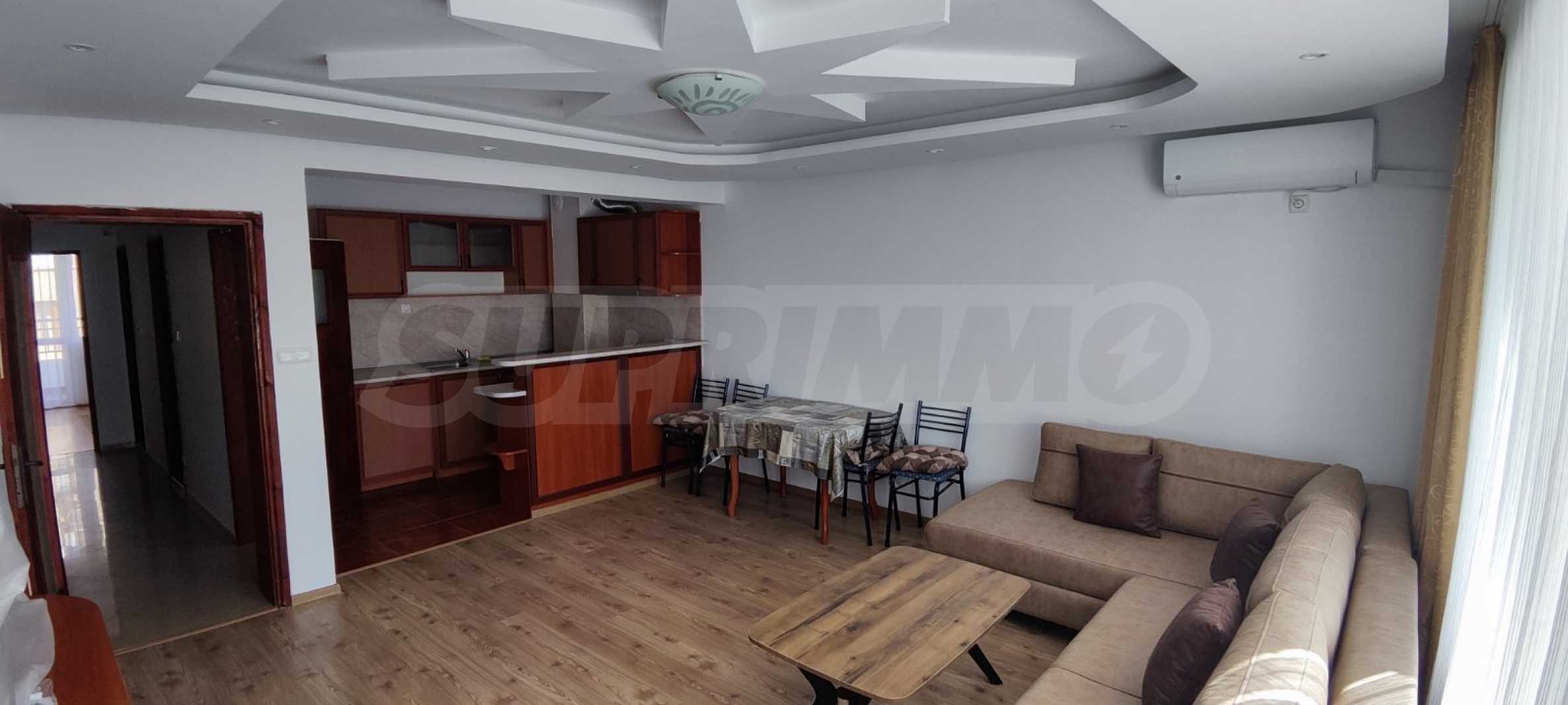 Жилището е напълно обзаведено и оборудвано, има монтирани чисто нови климатици от висок клас, нова готварска печка и нов телевизор.
