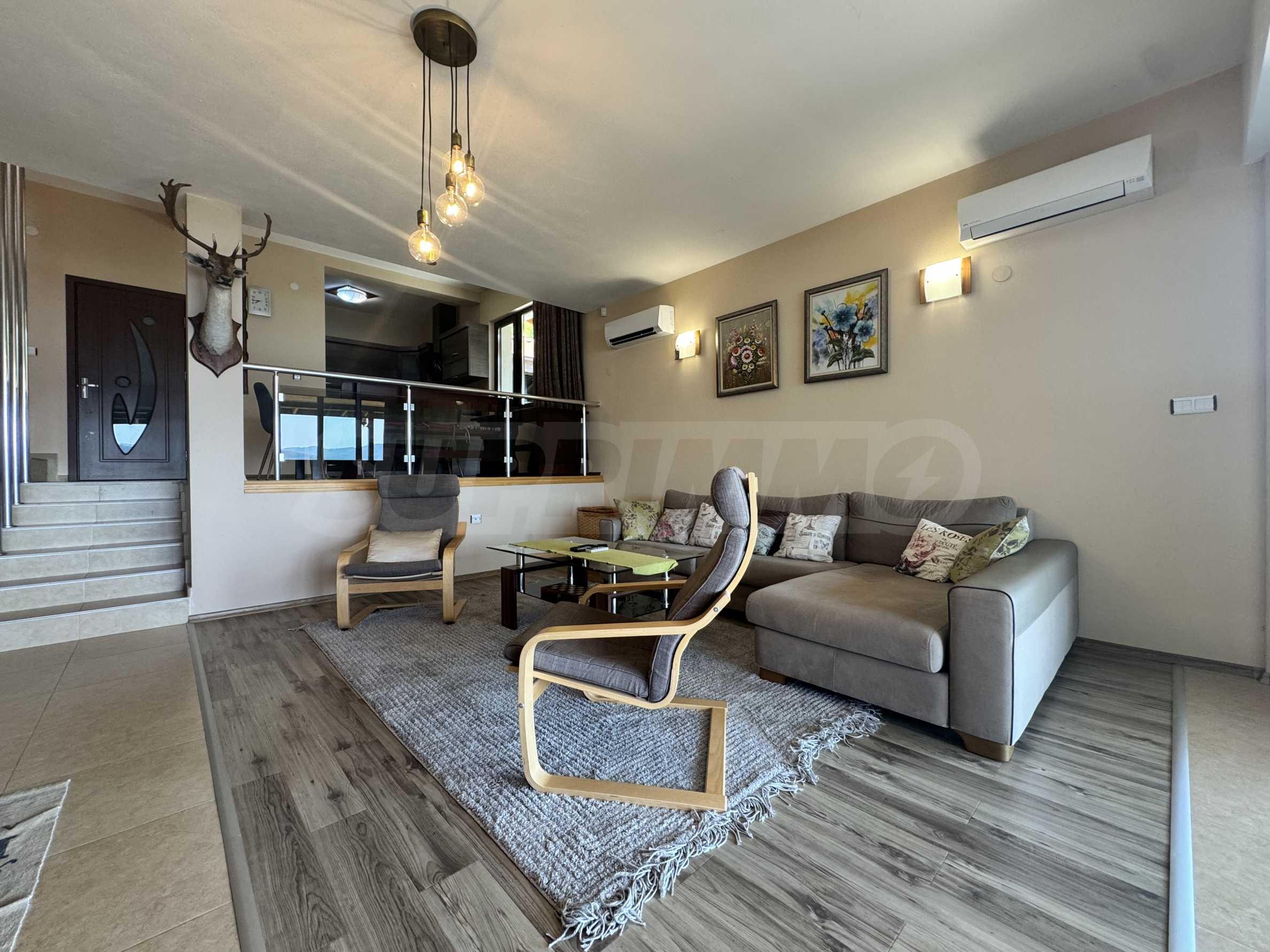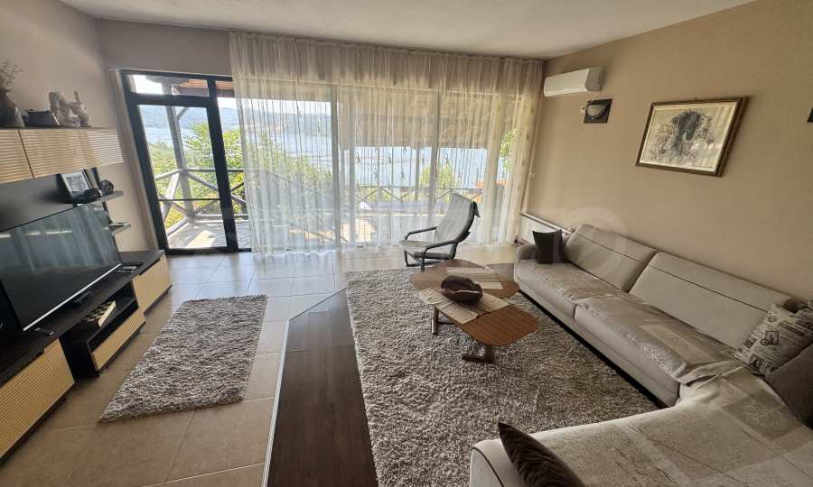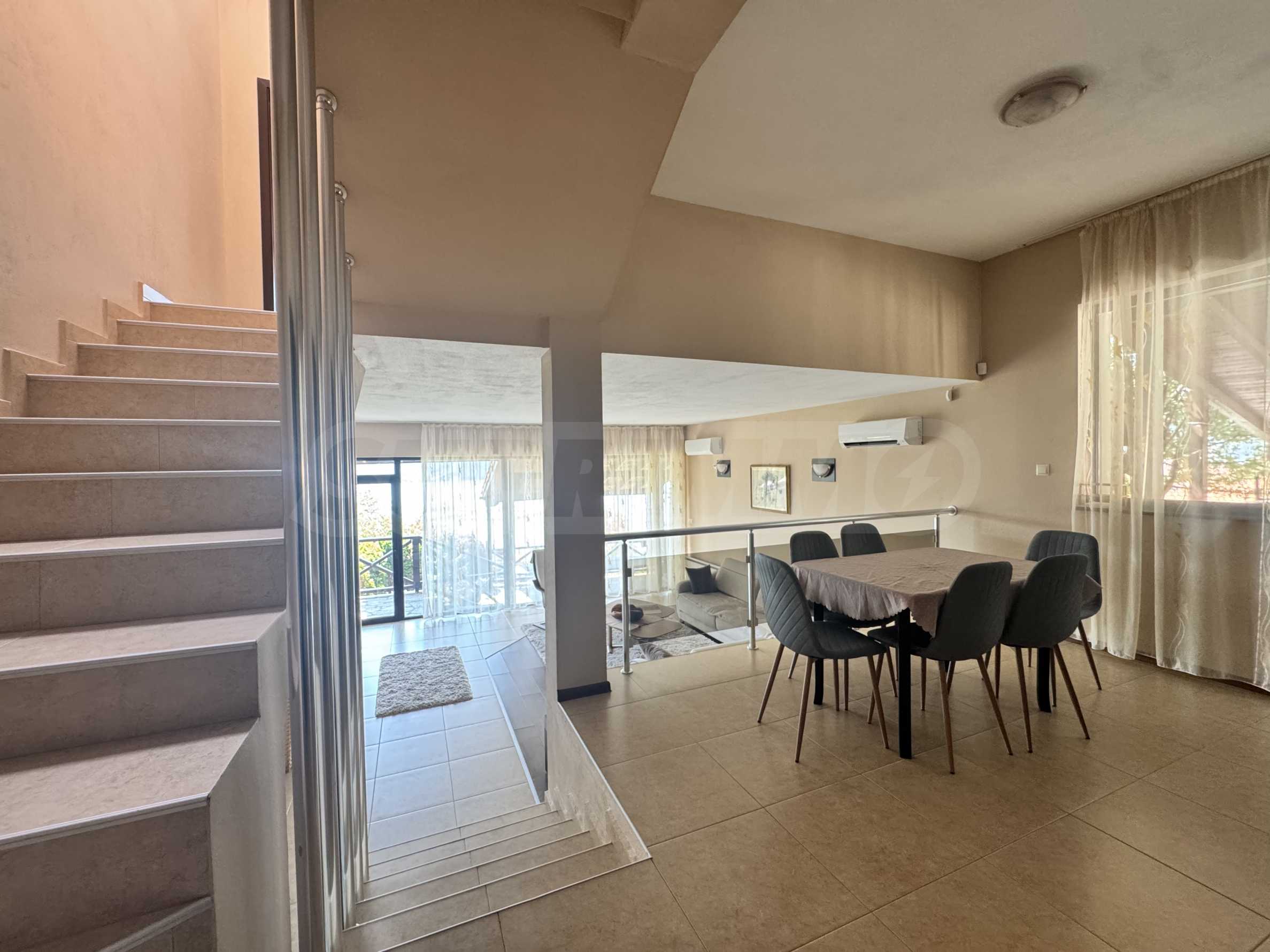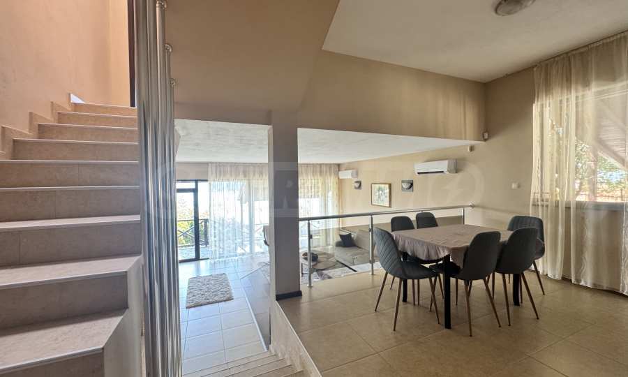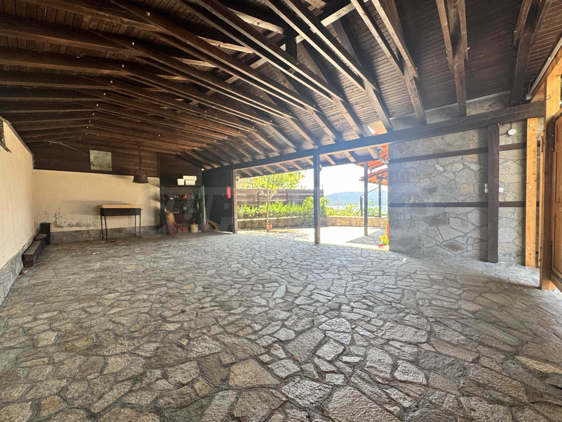• На първия етаж Ви посреща светла дневна зона с кухня и трапезария, отделна тоалетна и коридор, който води към веранда с навес и гледка, която ще Ви спре дъха – перфектната сцена за вечеря под звезди, чаша вино и отразено небе в тихата вода;