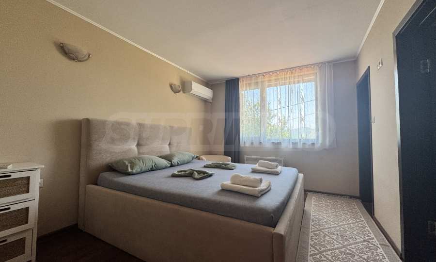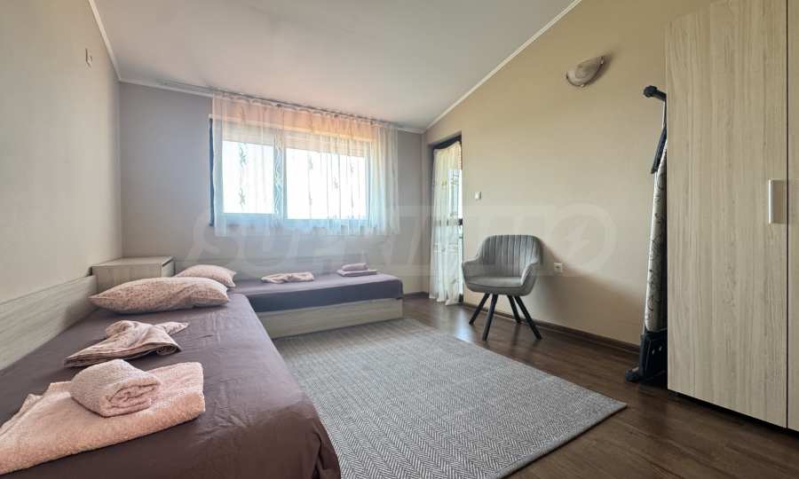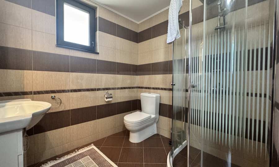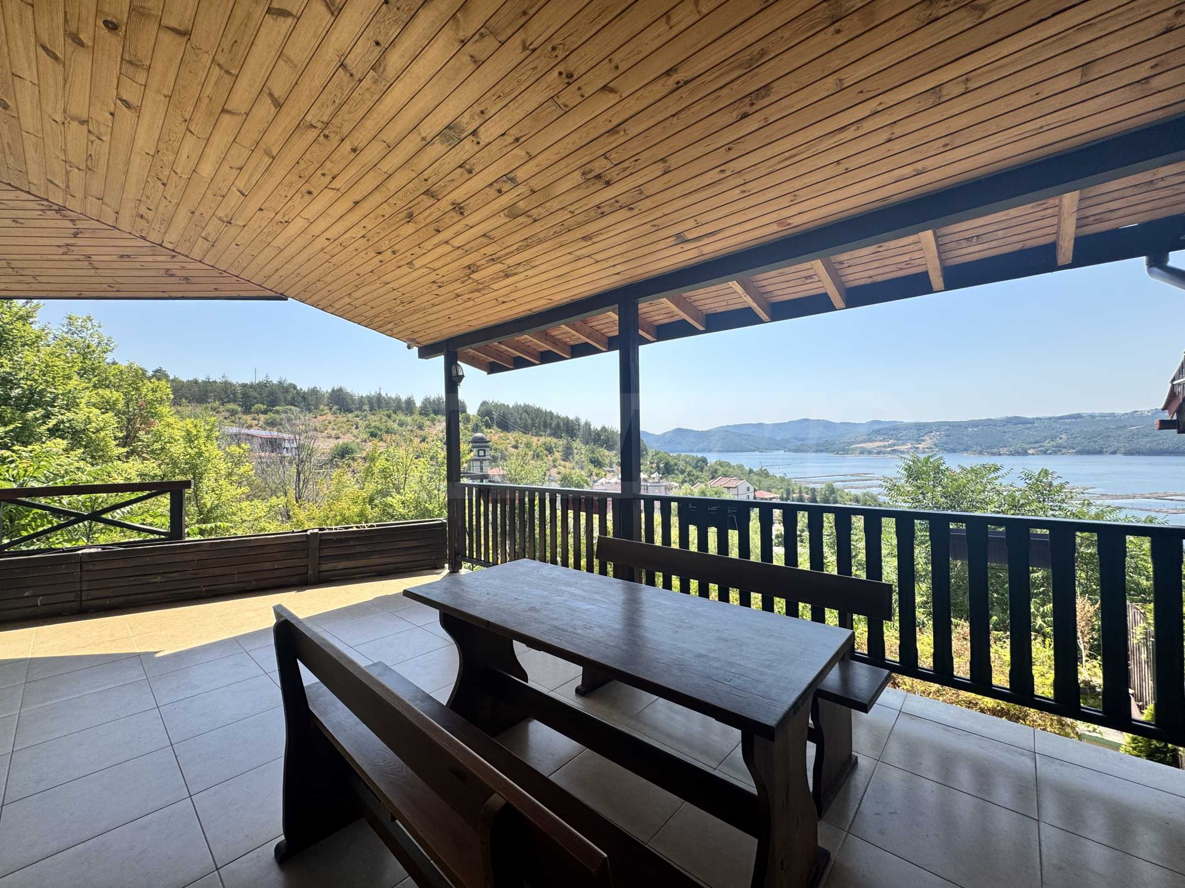 • Вторият етаж предлага три спални, две бани и балкон с панорамна гледка към язовира, където утрото започва със златна светлина и песен на птици.