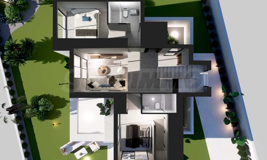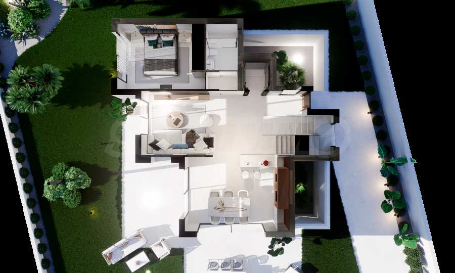Къщата се предлага с предварително изградена инсталация за климатик и аеротермална система за отопление и охлаждане, осигуряваща оптимален микроклимат през цялата година. За сигурността Ви е предвидена видеонаблюдение система, която Ви гарантира спокойствие, дори когато не сте у дома.