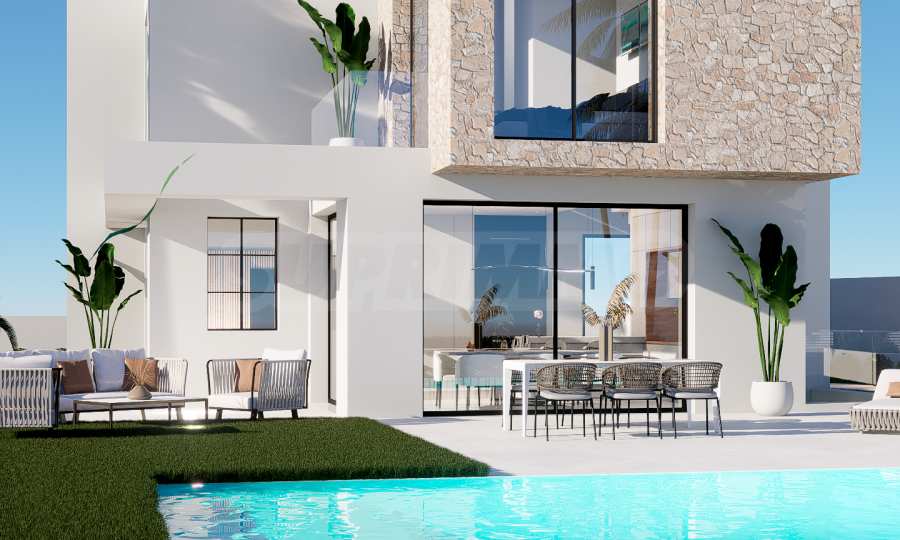 Представяме луксозна къща с три спални, част от бутиковия комплекс Las Bellas, разположен само на 5 минути от плажа в Бенидорм, Испания.