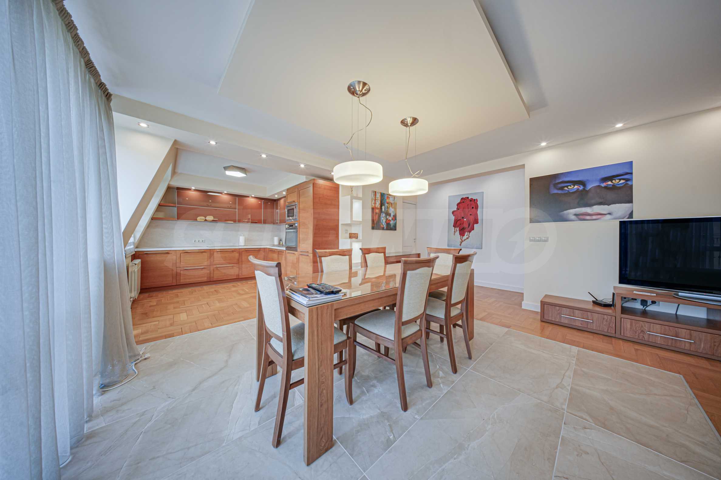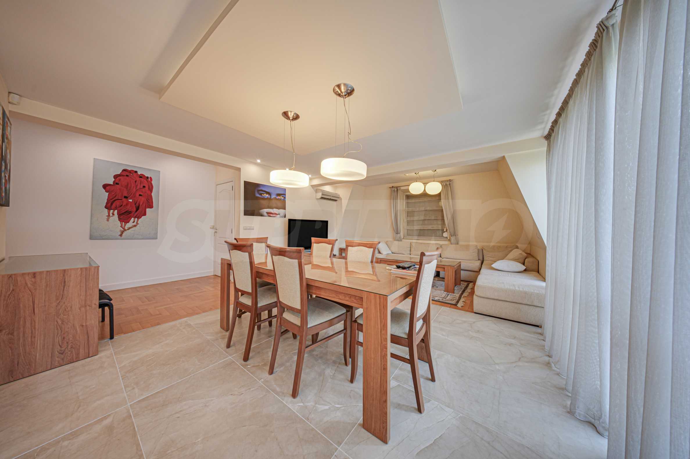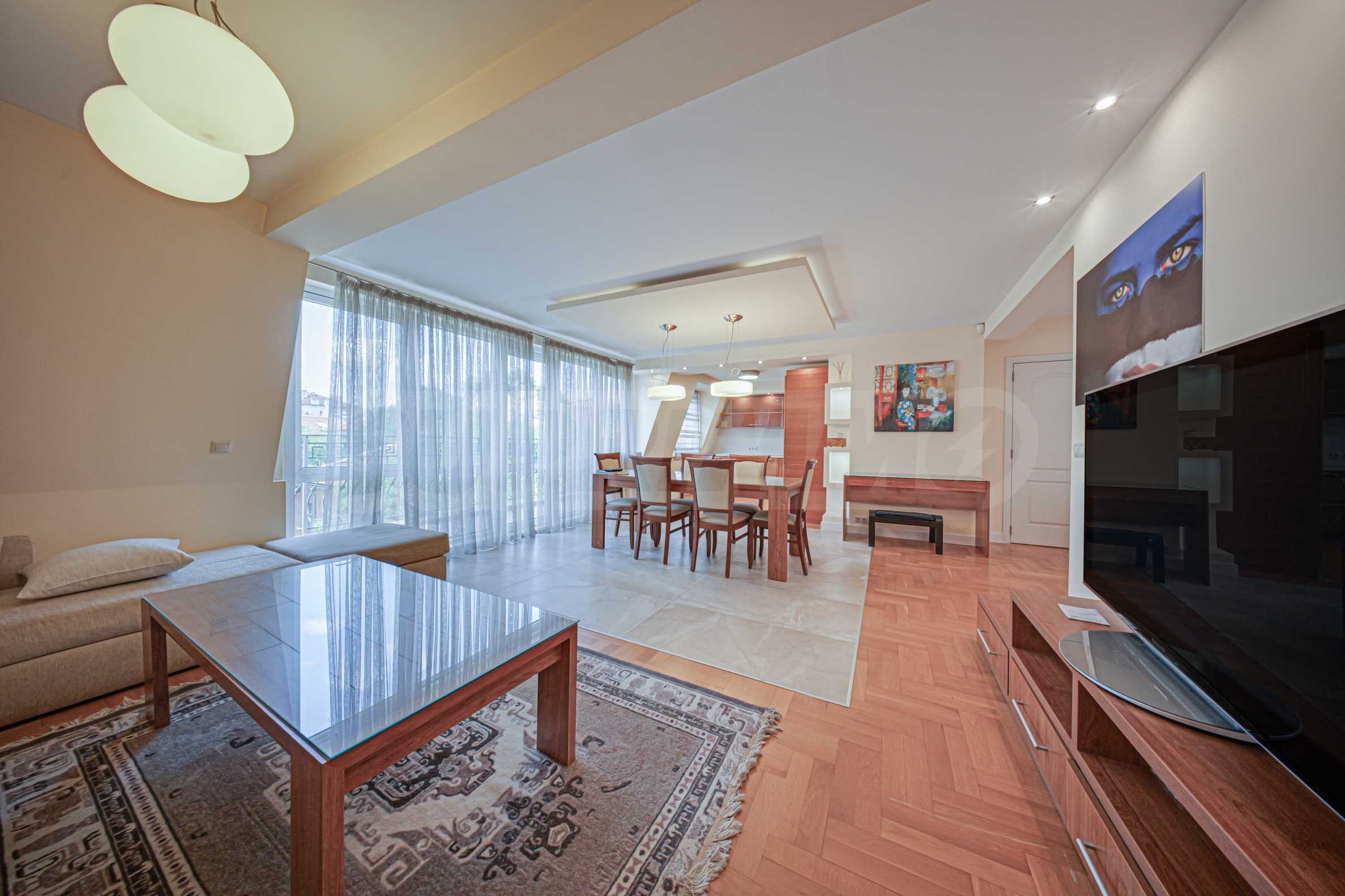 • разпределение: две спални, две бани, дневна с кухня, обширно антре, дрешник, две тераси.