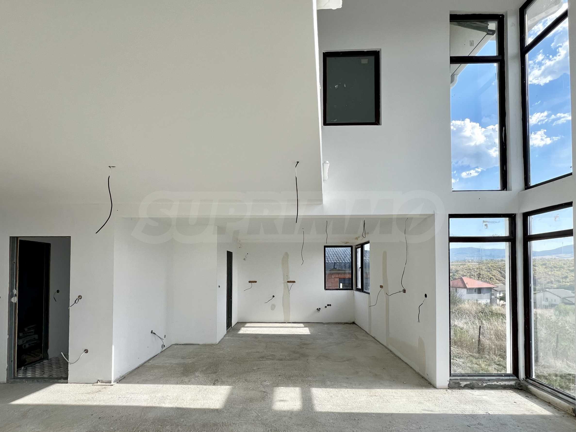 Изработена по дизайн от немски проект, къщата се отличава с модерна архитектура, просторни помещения и отлична осветеност, благодарение на големите панорамни прозорци, които откриват гледка към живописните хълмове над селото. Изградена е с висококачествена метална конструкция от закалена галванизирана стомана с поцинковано покритие.