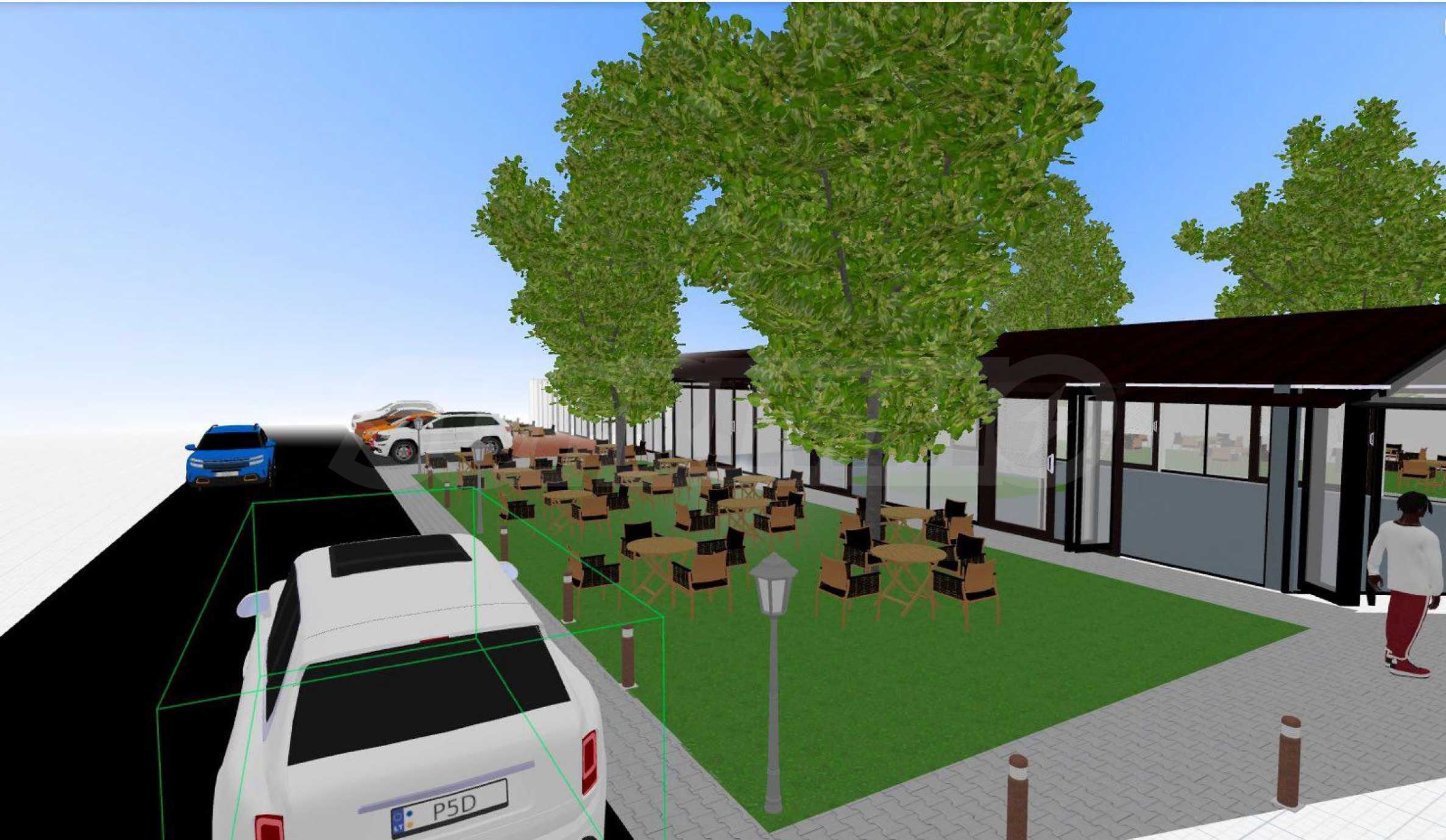 Заведението разполага със закрита площ от 310 кв.м. (търговска площ, възможност да се обособи кухня, 4 тоалетни) както и открита градина към него от 200 кв.м.