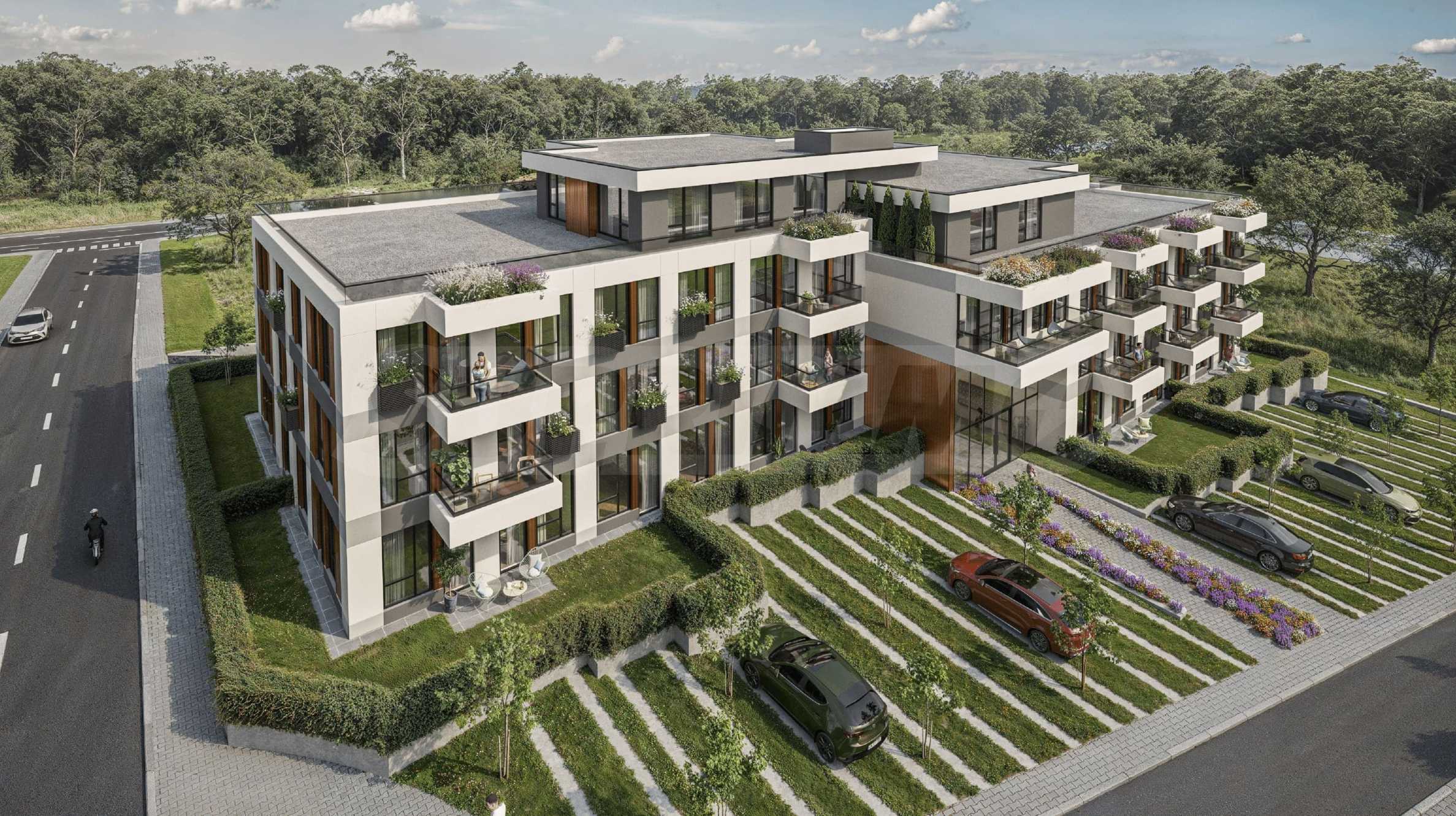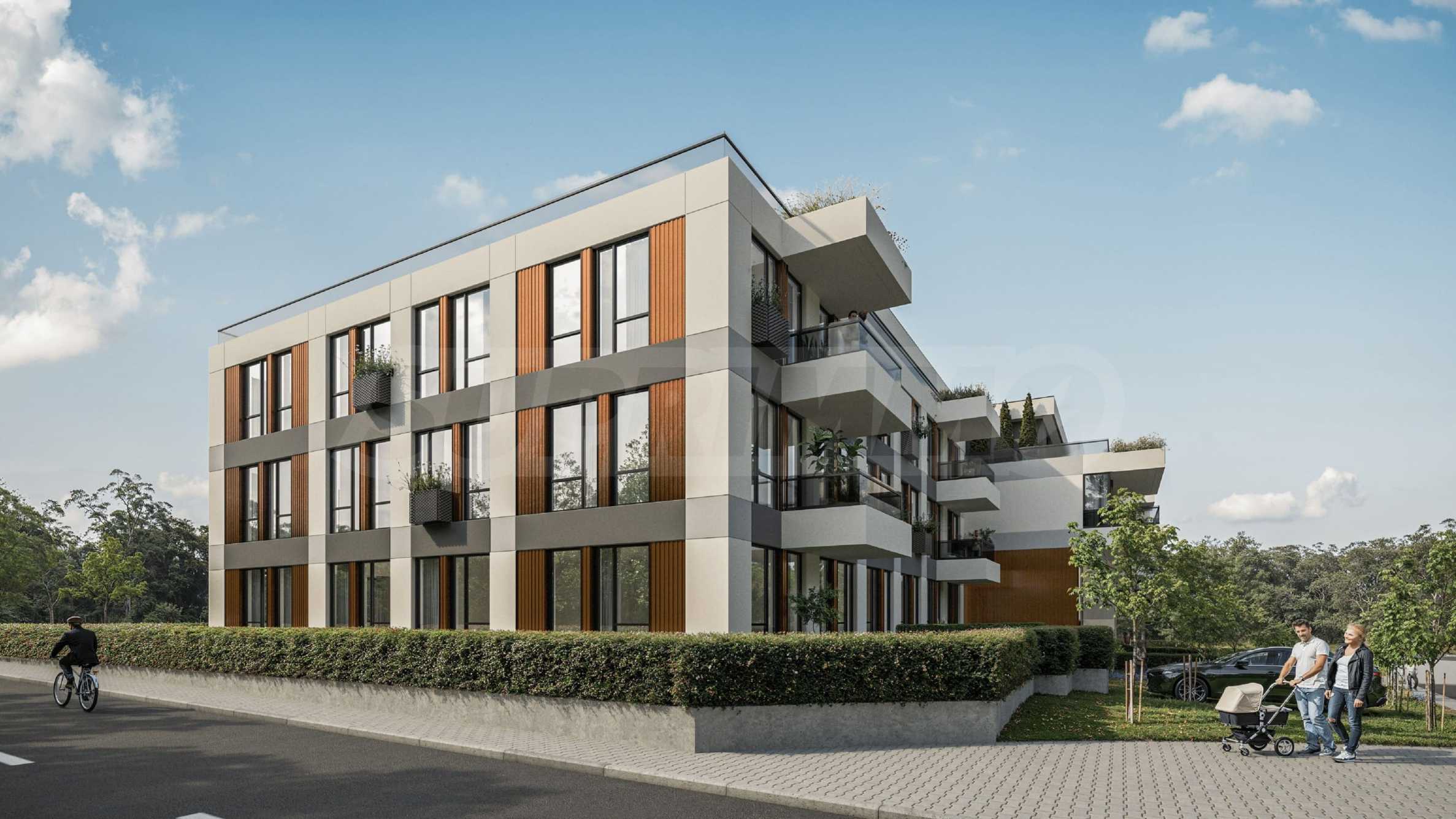 Концепцията на сградата съчетава елегантност и функционалност – просторни дневни, богата естествена светлина през целия ден и модерни архитектурни решения. Входните фоайета и общите части ще бъдат изпълнени с висок клас материали, с просторни коридори и естествено осветление.