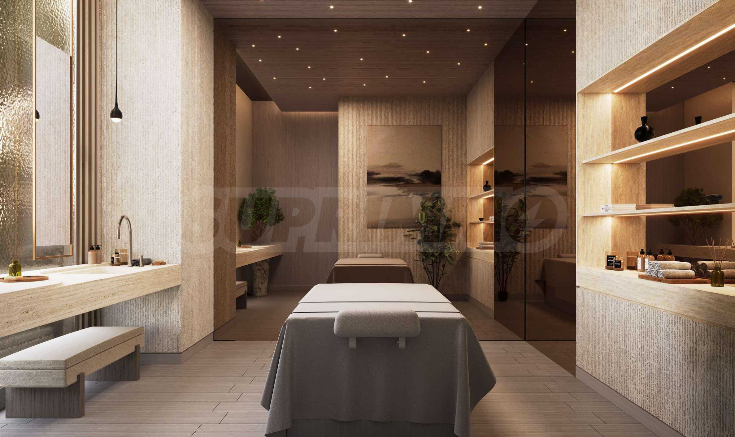 За активните обитатели сградата предлага напълно оборудвана фитнес зала и светла йога студио, от които се разкриват гледки към инфинити басейна и зоните за релакс. За пълноценна почивка са предвидени уелнес пространства със сауна и парна баня – гаранция за изискано изживяване и възстановяване след динамични дни.