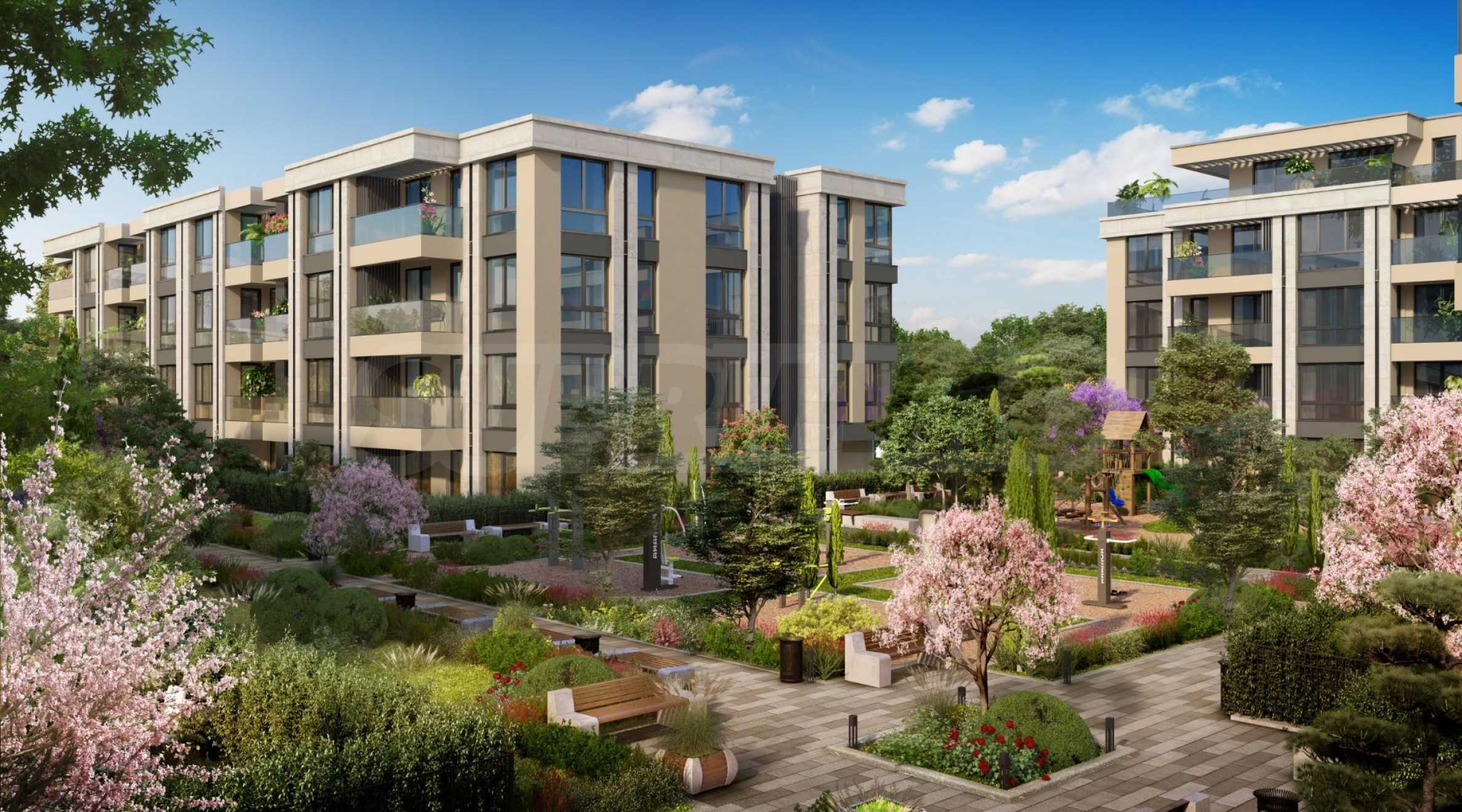 Комплексът ще се откроява със зеленината на вътрешния двор - собствен парк, който ще бъде изграден върху терен от 4000 кв.м, под който няма предвидено подземно паркиране, и дървесните видове ще могат да развият кореновата си система свободно. Така във времето градините ще добият красив естествен вид. Този компонент от проектирането за зеленината и връзката с природата е основна част от концепцията. В планирането на прилежащия терен към сградите ще се организира паркирането и достъп на автомобили в периферията на комплекса, така че да се съхрани вътрешността му, където да се развие безопасна и чиста паркова среда.