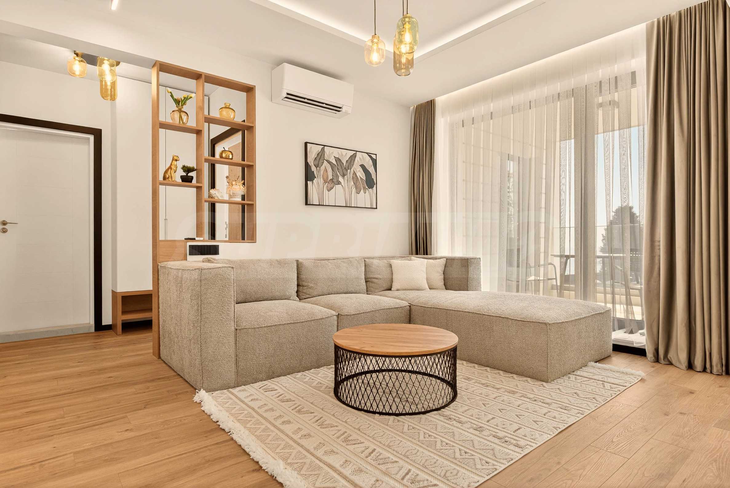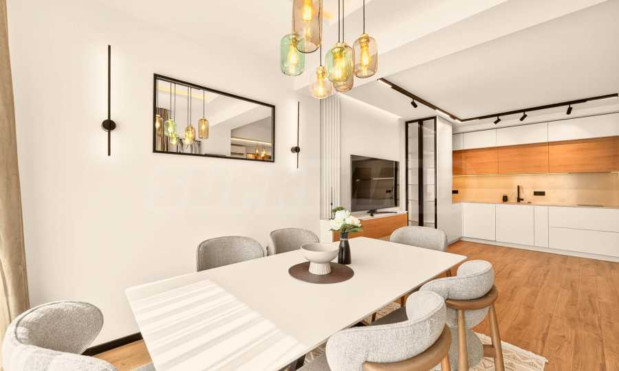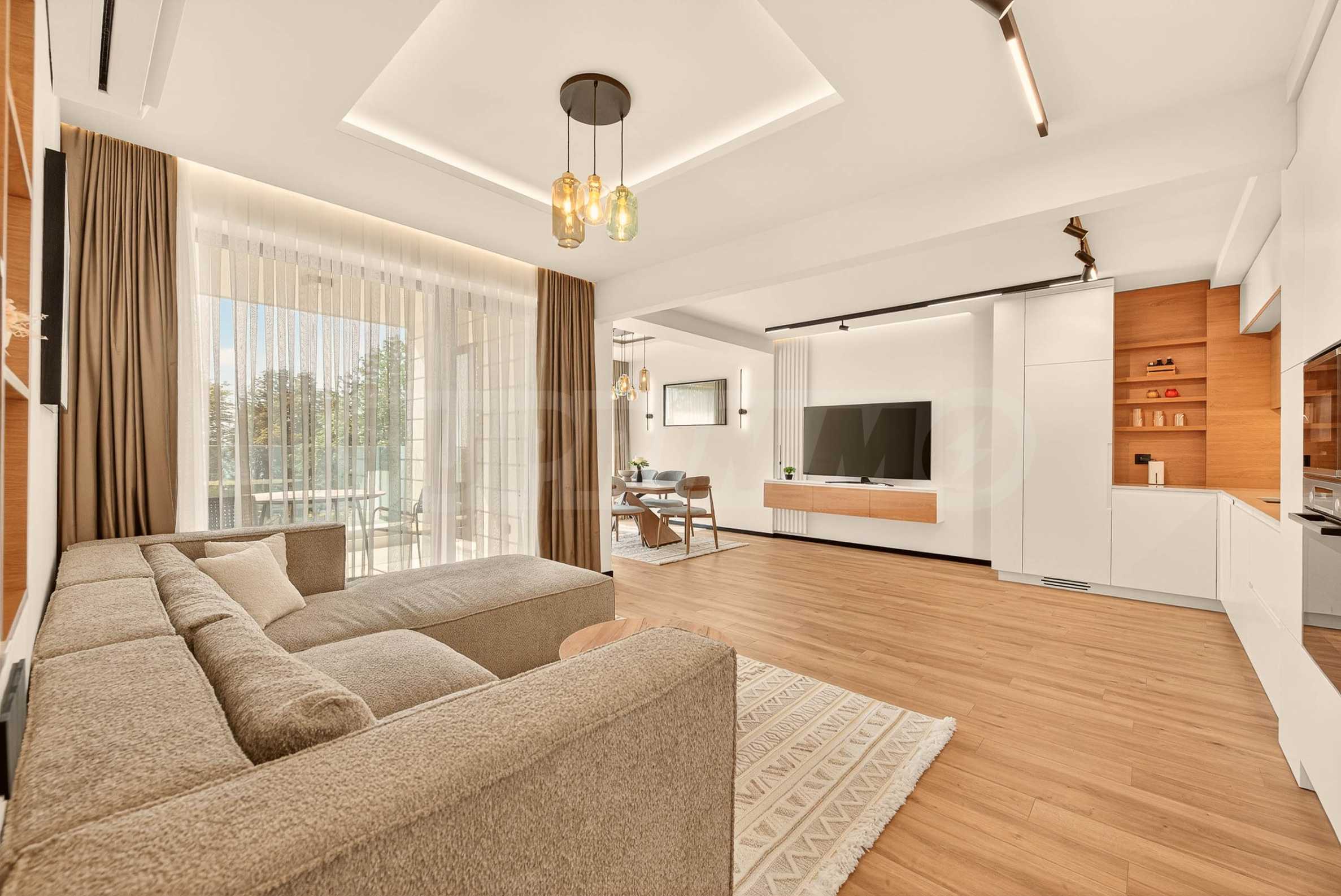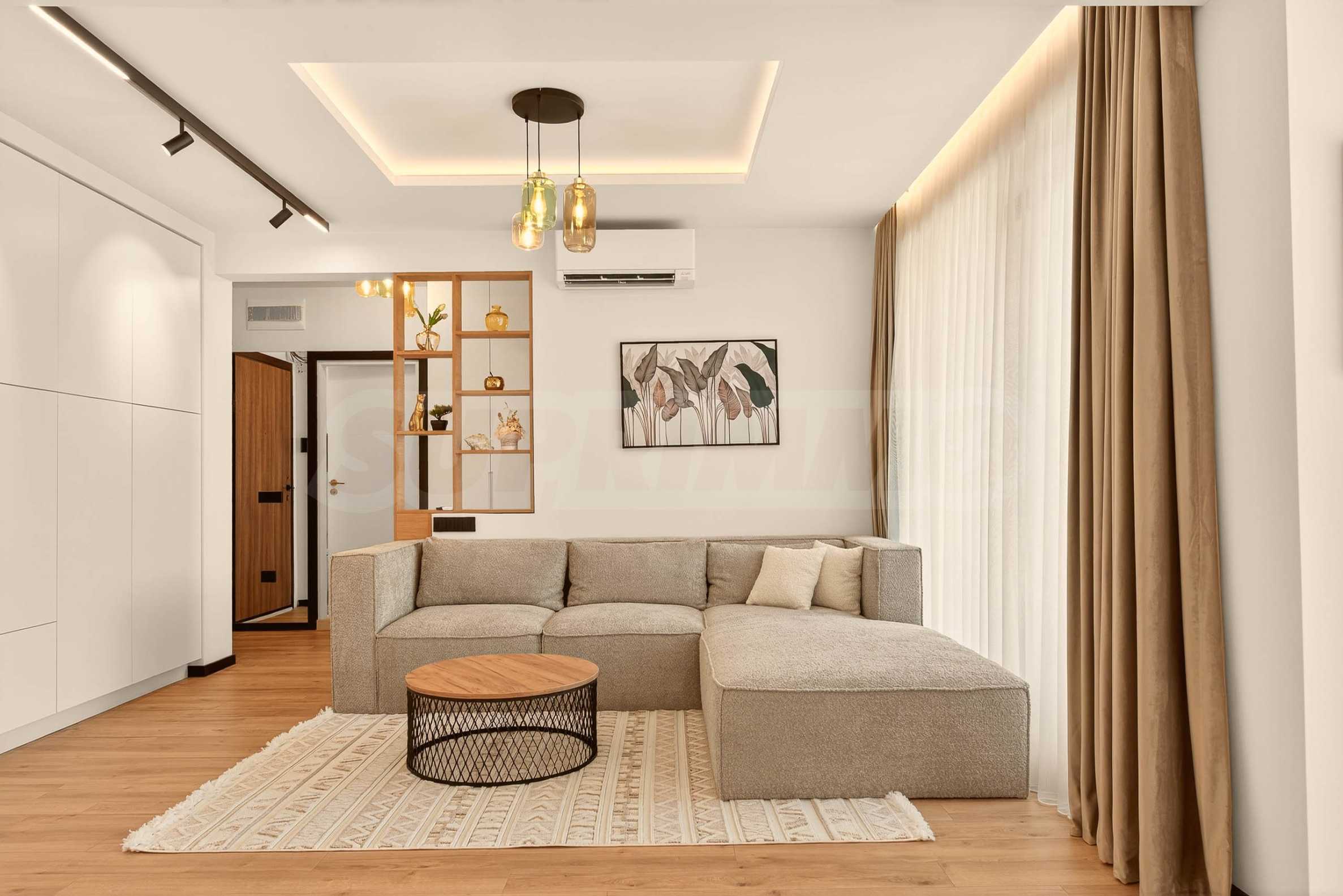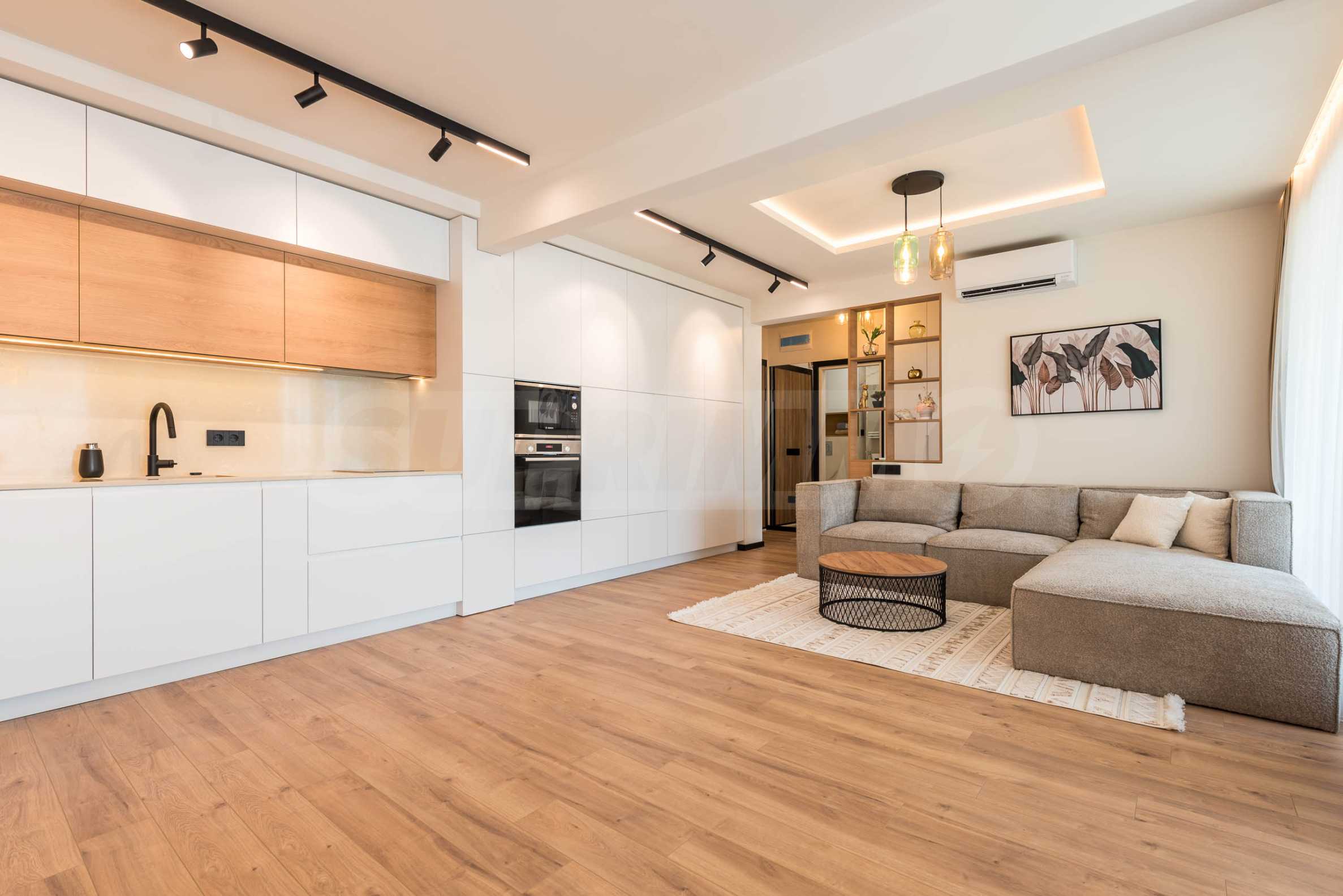 Апартаментът е чисто нов, проектиран и обзаведен от интериорен дизайнер с внимание към всеки детайл – комбинация от елегантност, функционалност и уют.