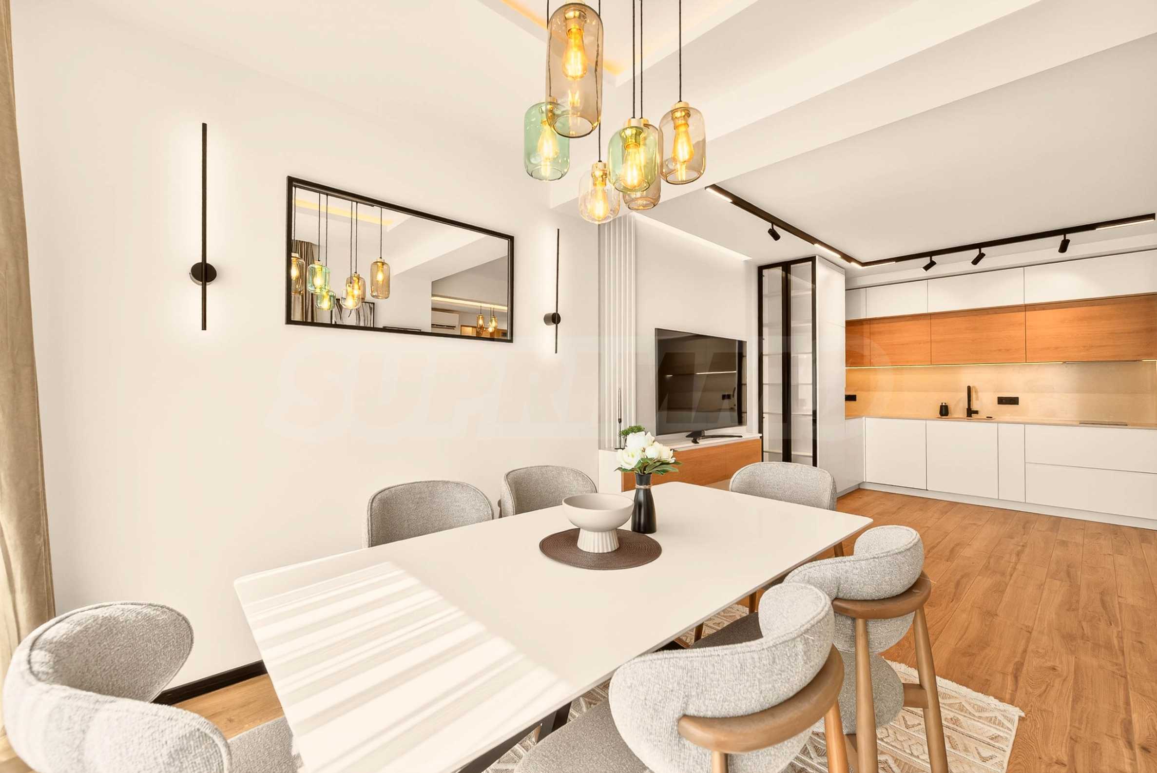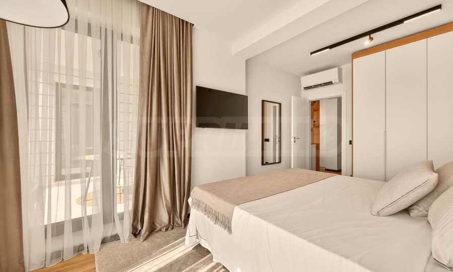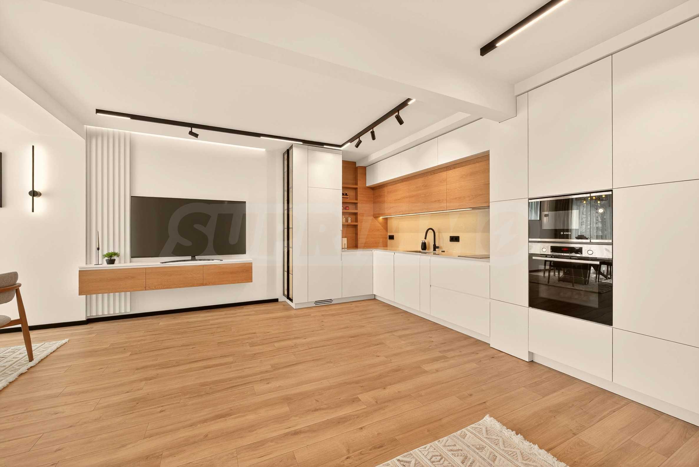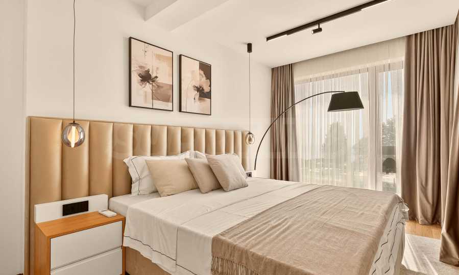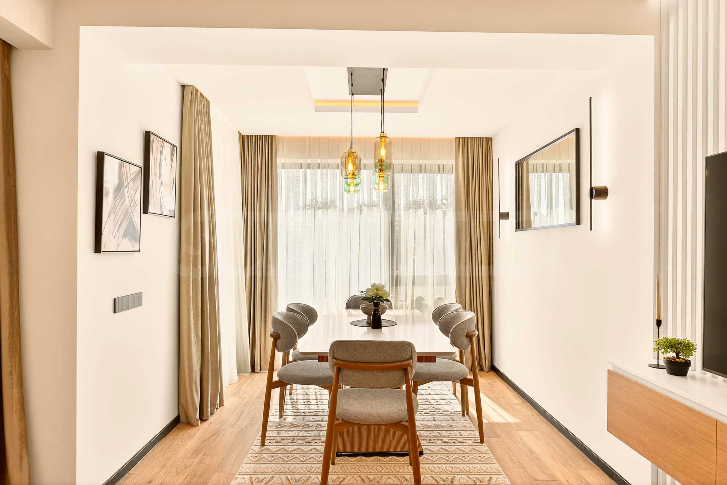 Апартаментът е чисто нов, проектиран и обзаведен от интериорен дизайнер с внимание към всеки детайл – комбинация от елегантност, функционалност и уют.