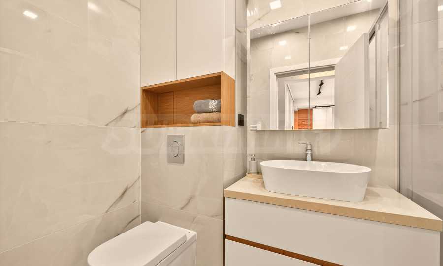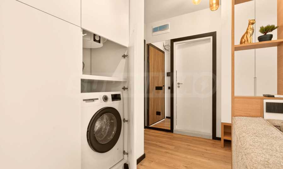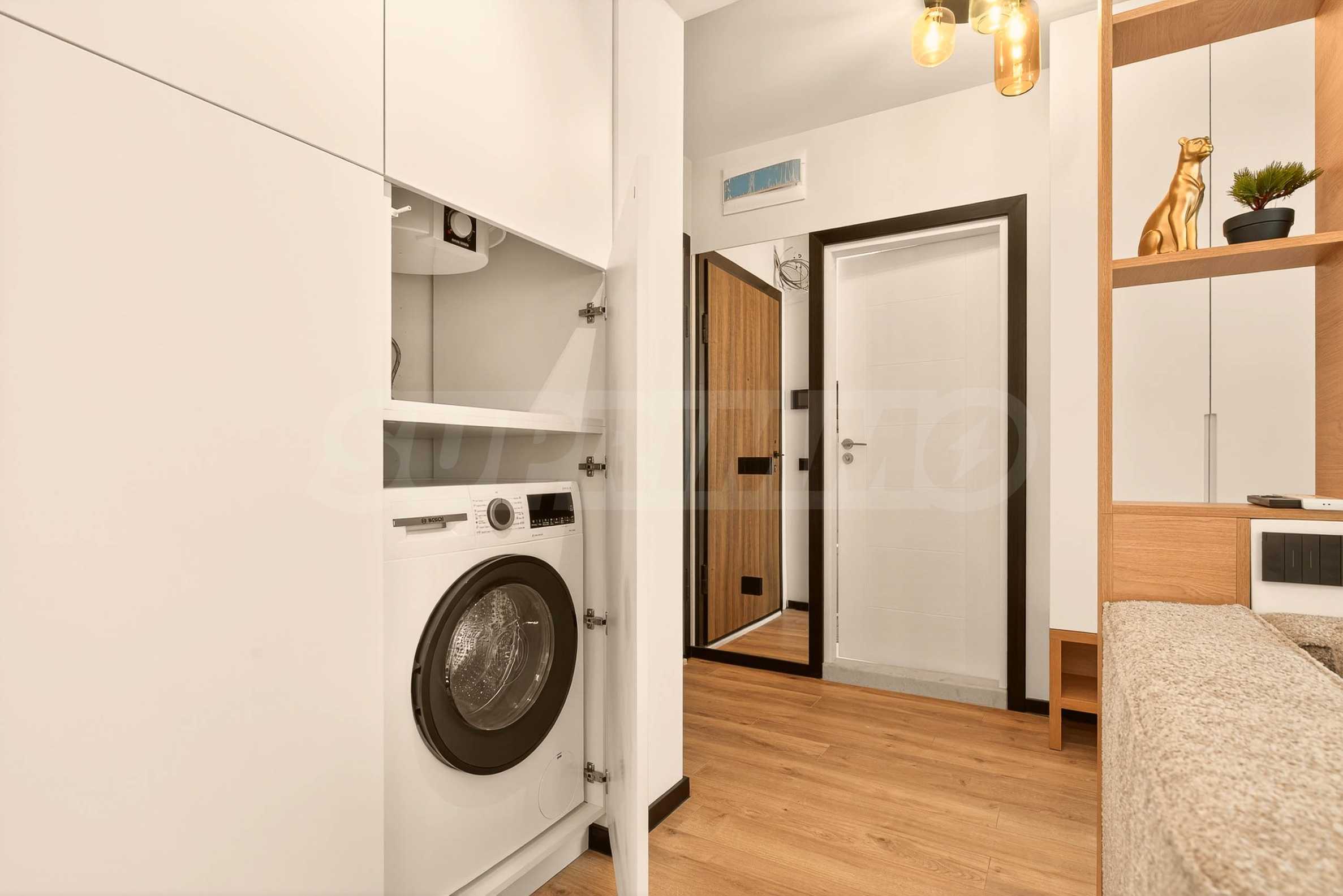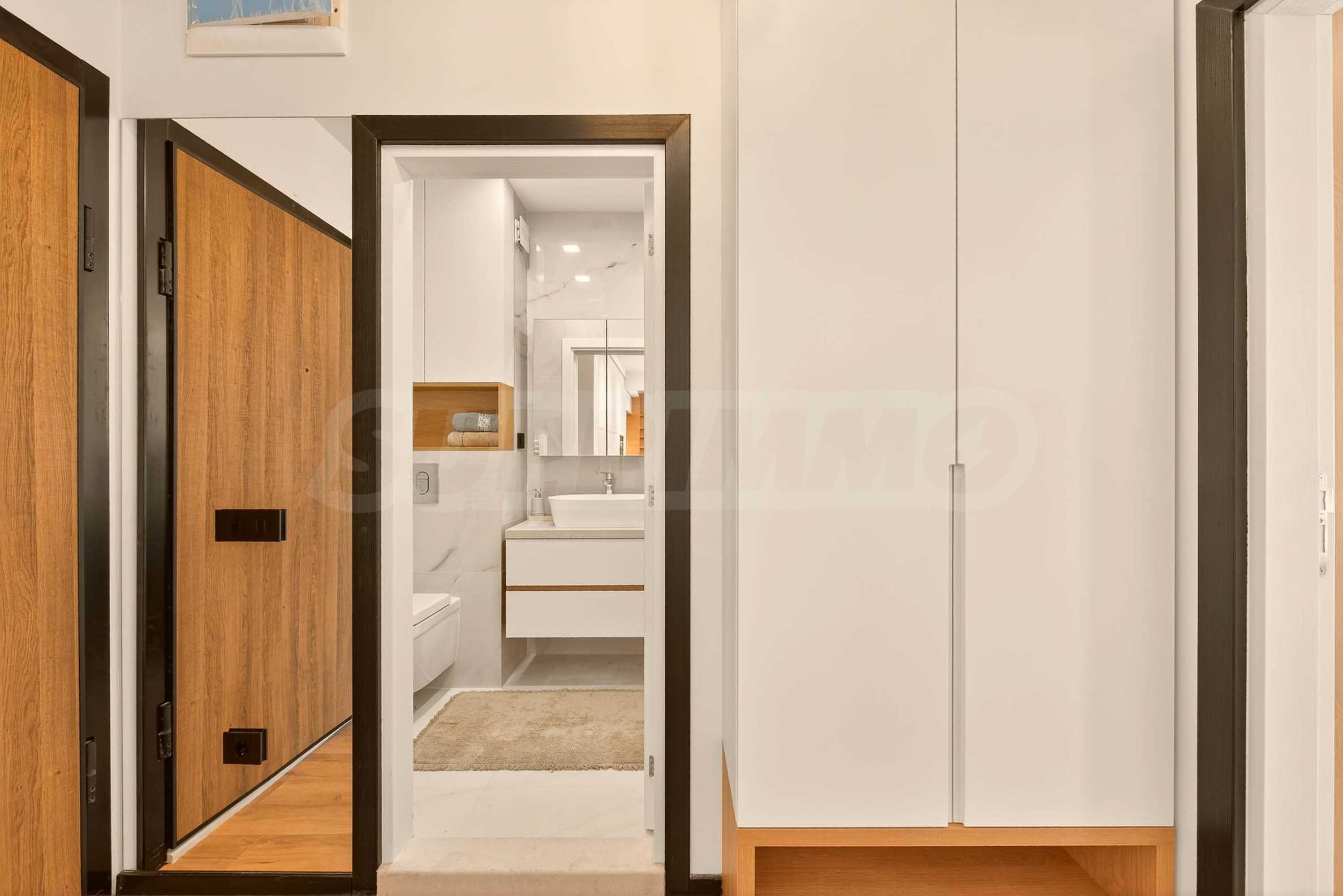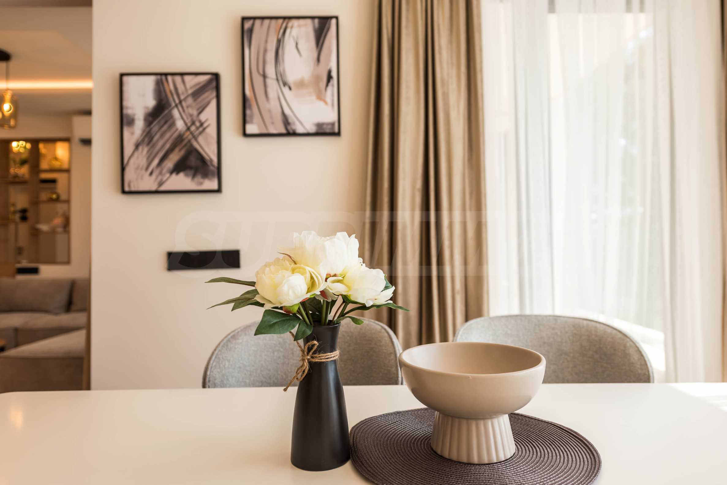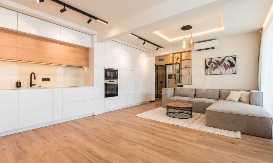 Апартаментът е чисто нов, проектиран и обзаведен от интериорен дизайнер с внимание към всеки детайл – комбинация от елегантност, функционалност и уют.