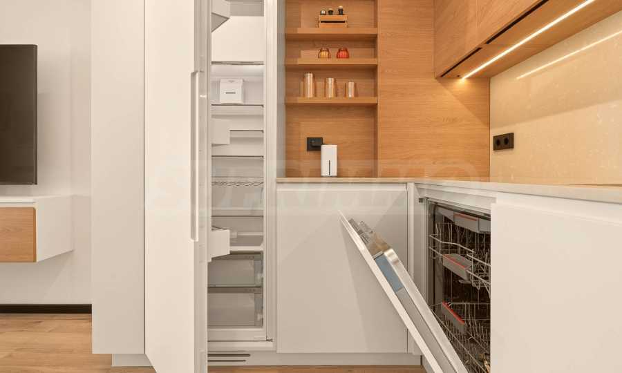 • Просторен дневен тракт с дизайнерски мебели и модерна кухня, оборудвана с висок клас електроуреди;