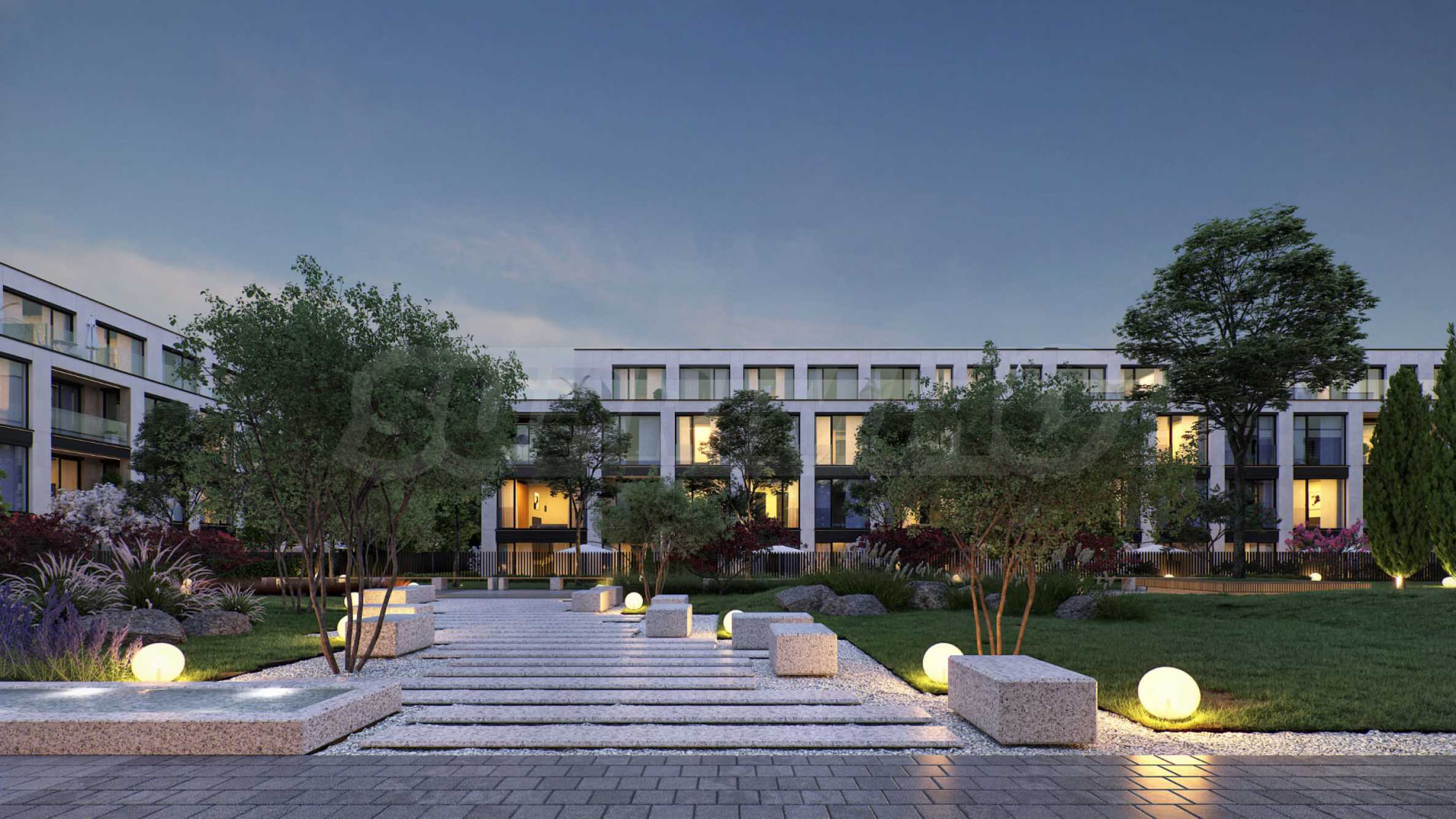Комплеkсът е част от модерен квартал с площ от 38 000 кв.м, отличаващ се с цялостно архитектурно планиране - съвременна архитектура на сградите, зона с ниско застрояване, богато озеленяване, нова подземна и надземна инфраструктура с красиво улично осветление, качествено павирани тротоари с озеленяване и модерни енергоефективни решения. Уютна обстановка, която предоставя възможност за прекарване на повече време със семейството на открито.