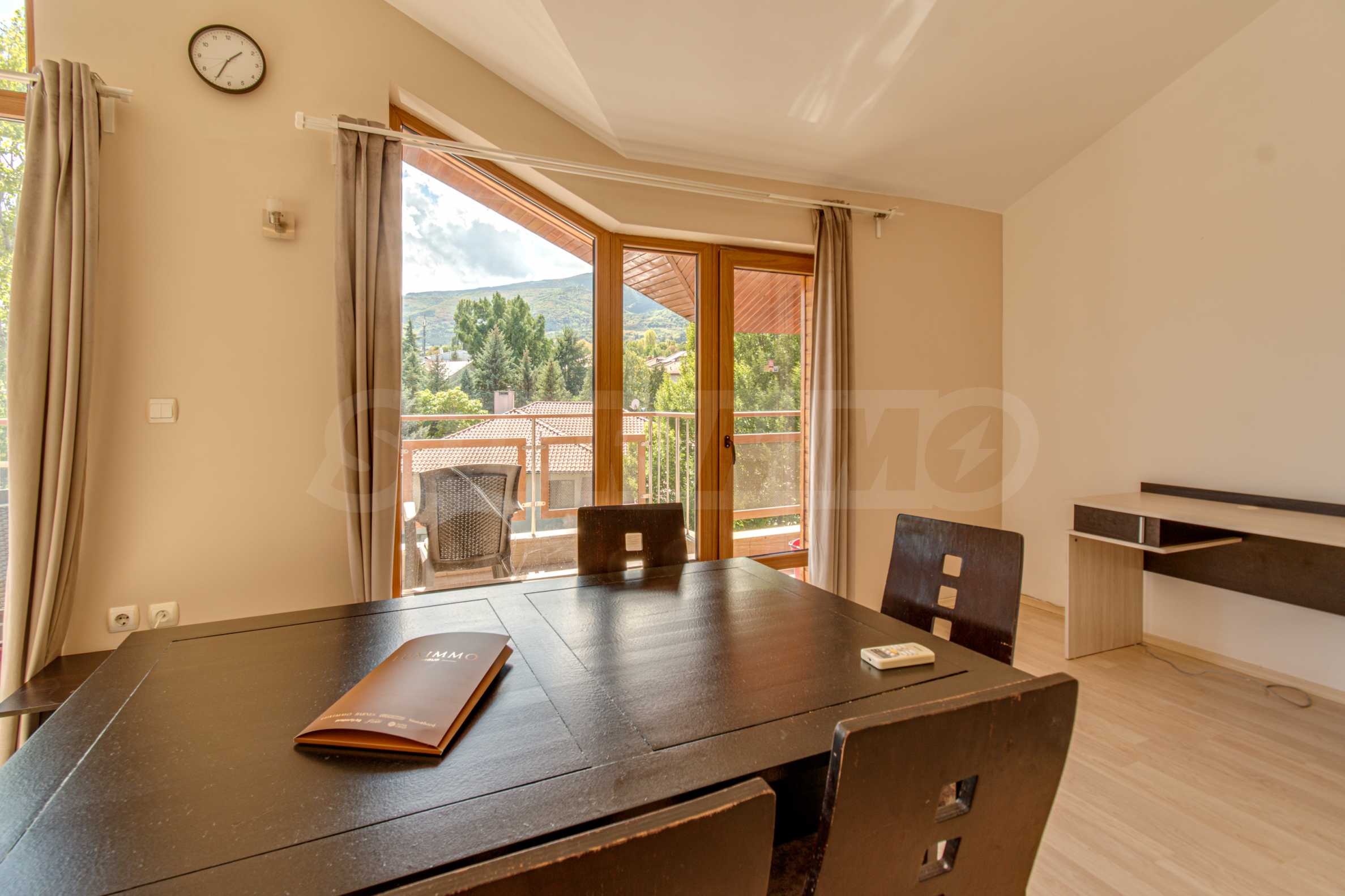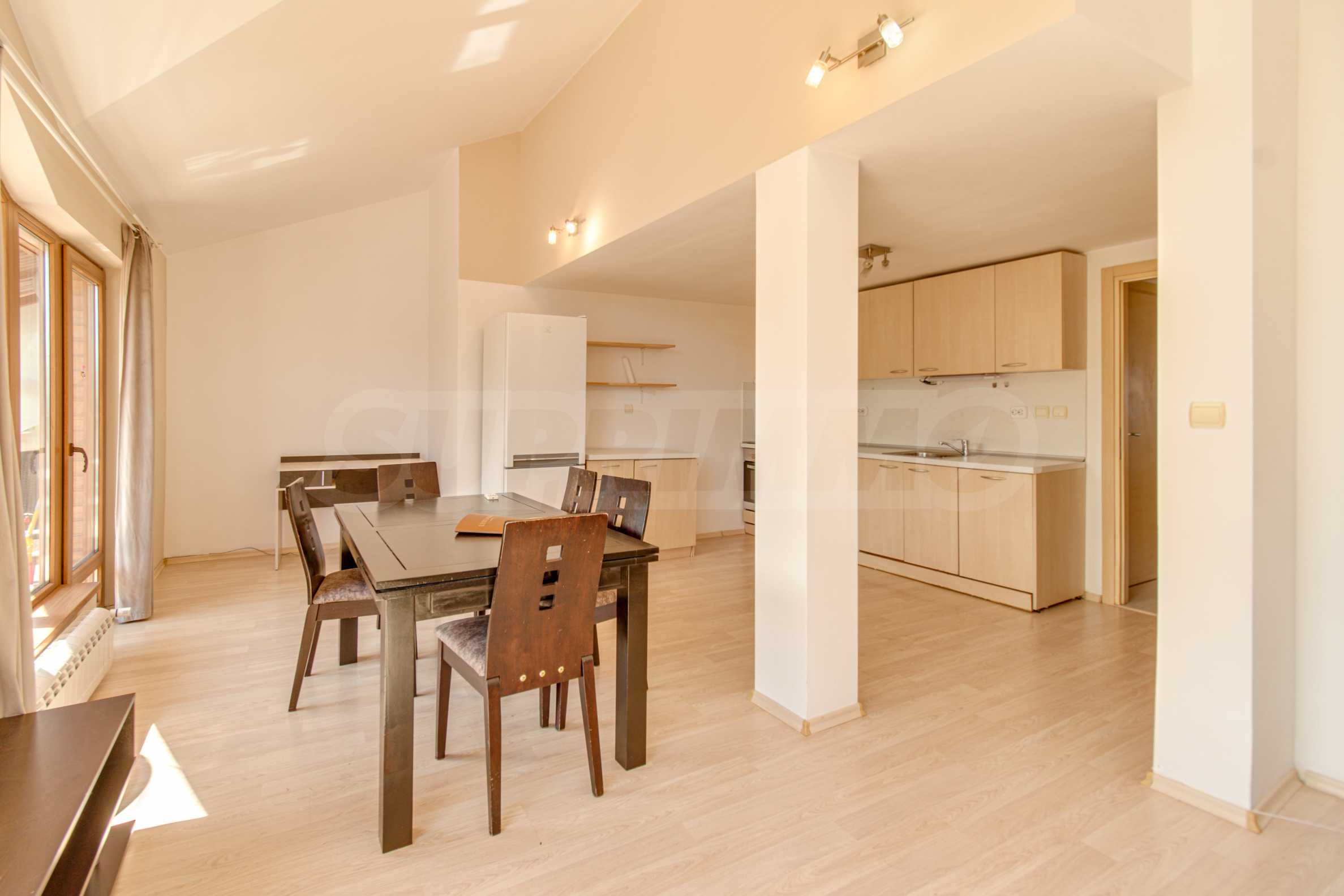 Апартаментът е напълно обзаведен и разполага с всичко необходимо за ежедневните нужди. Кухнята е оборудвана с печка с фурна, абсорбатор, хладилник и пералня. Холът е обзаведен с мека мебел и секционна част, създаващи топла и уютна атмосфера. Отоплението е решено чрез индивидуално газово котле и/или климатици, което позволява оптимален контрол на температурата през всички сезони.