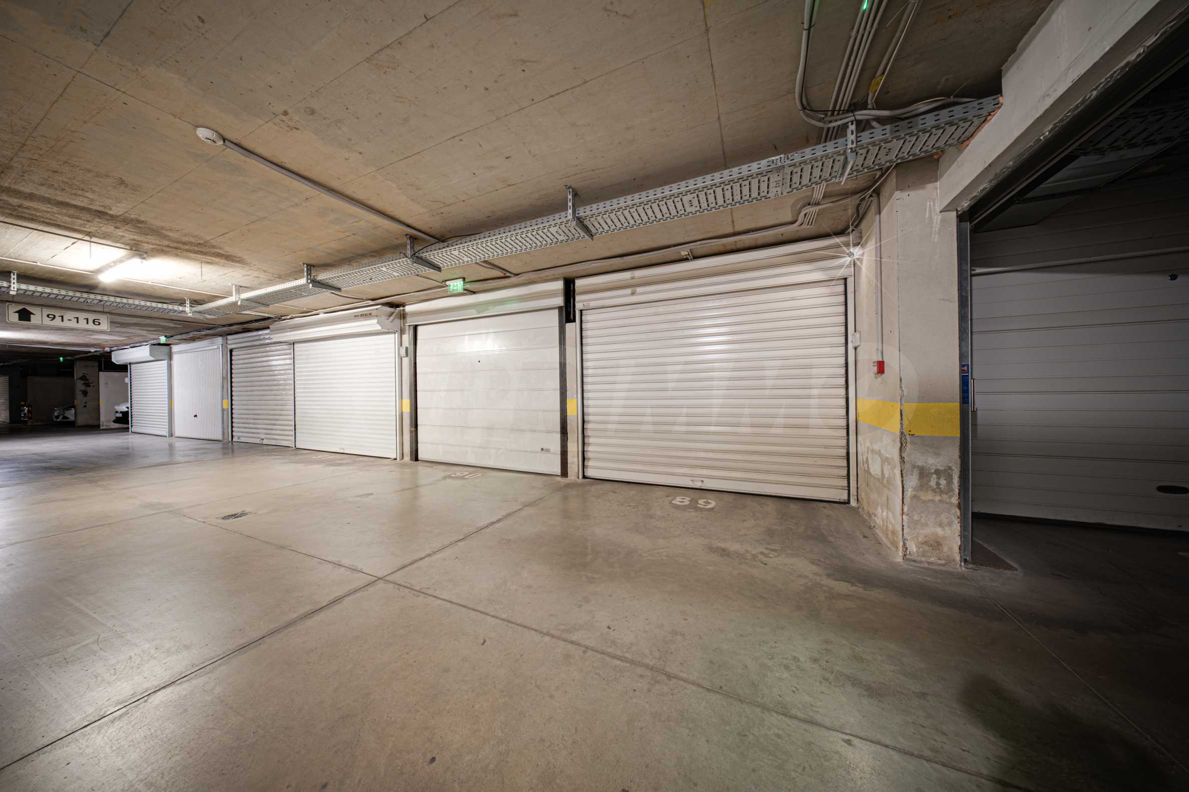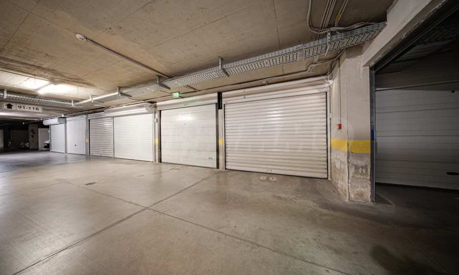 Подземният гараж е просторен, поддържан и чист, с възможност за разминаване на два автомобила и рампи с подгряване.