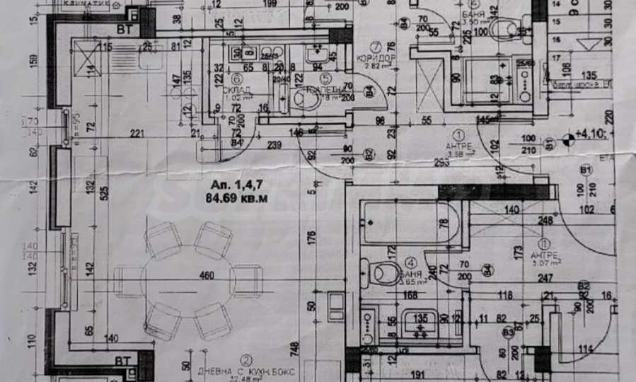 Апартаментът е на първи жилищен етаж над магазини, на височина 4 метра над партер (т.нар. втори етаж), с просторни и светли помещения, идеални за комфортно семейно ежедневие.