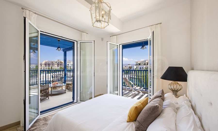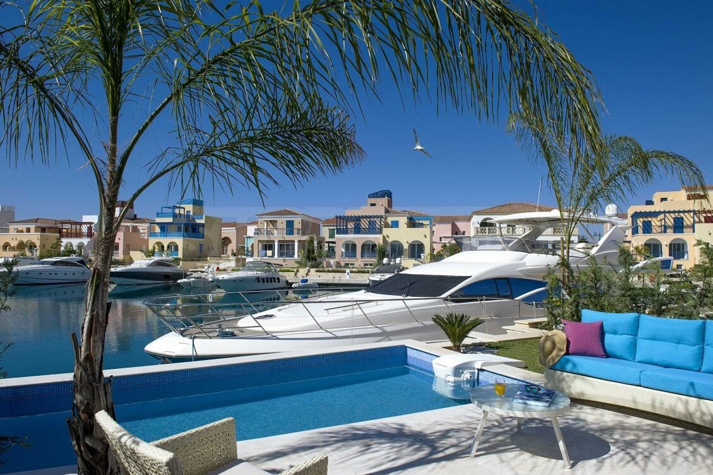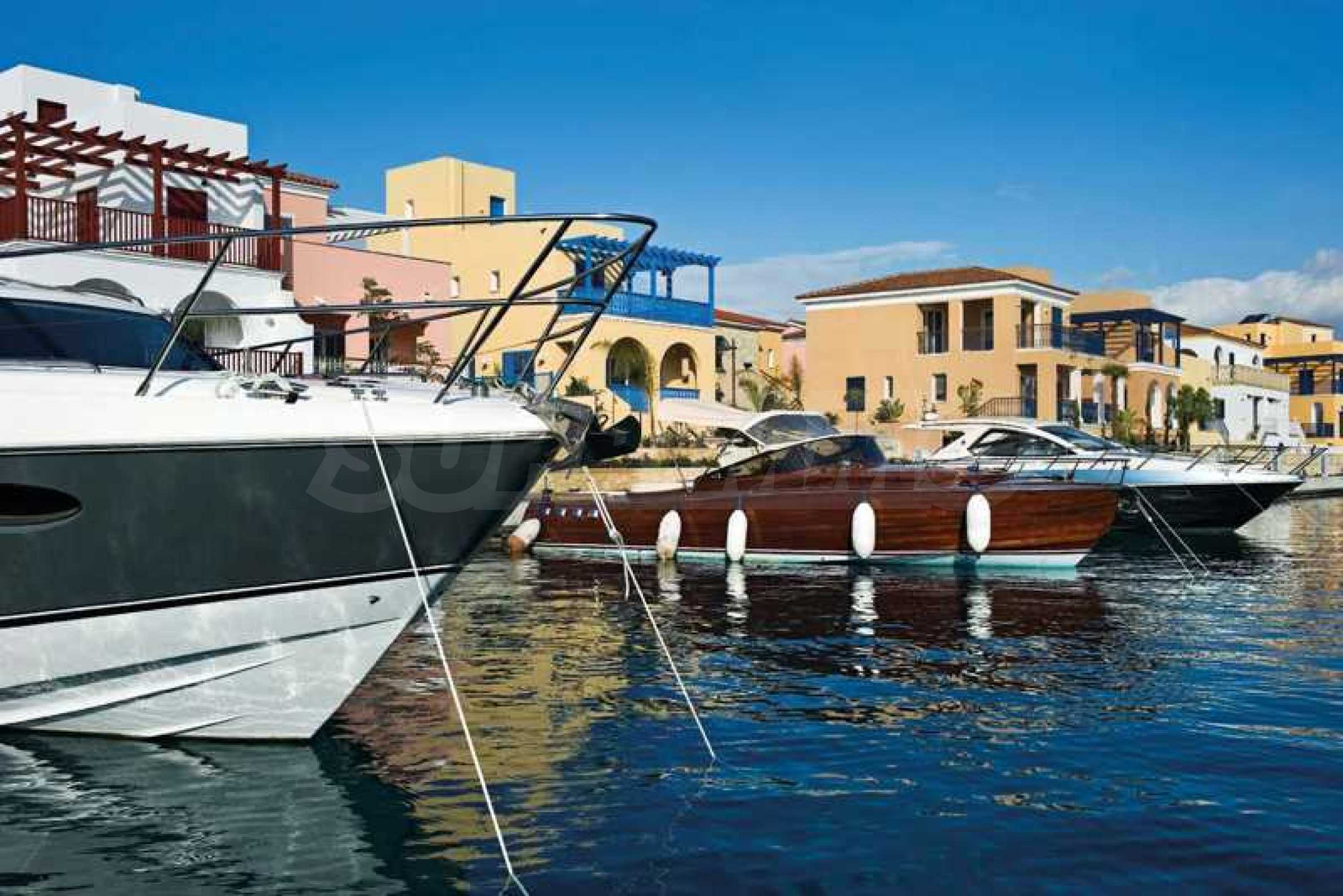 • Разположен на първа линия с гледка към яхтеното пристанище и морето;