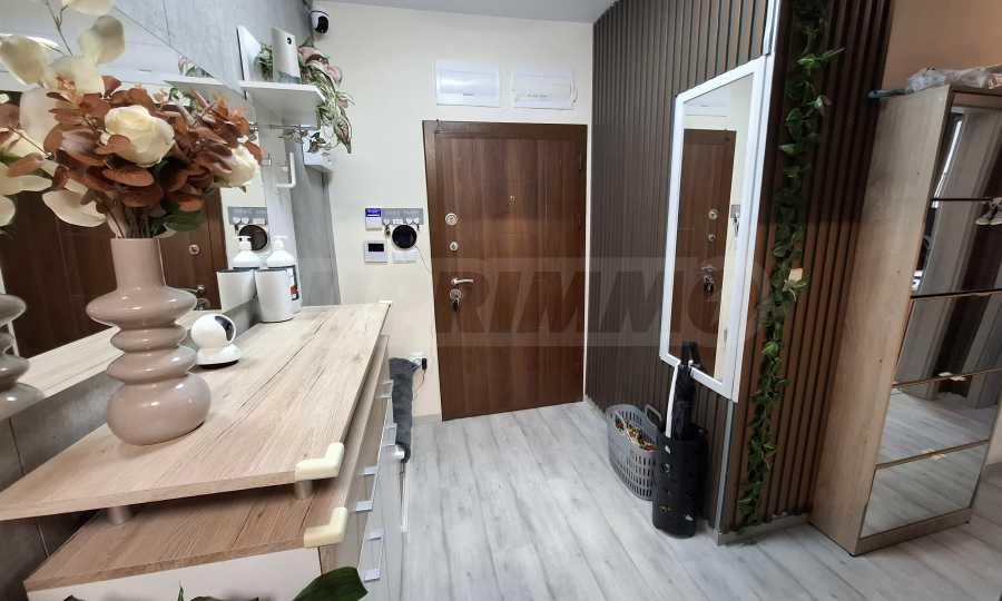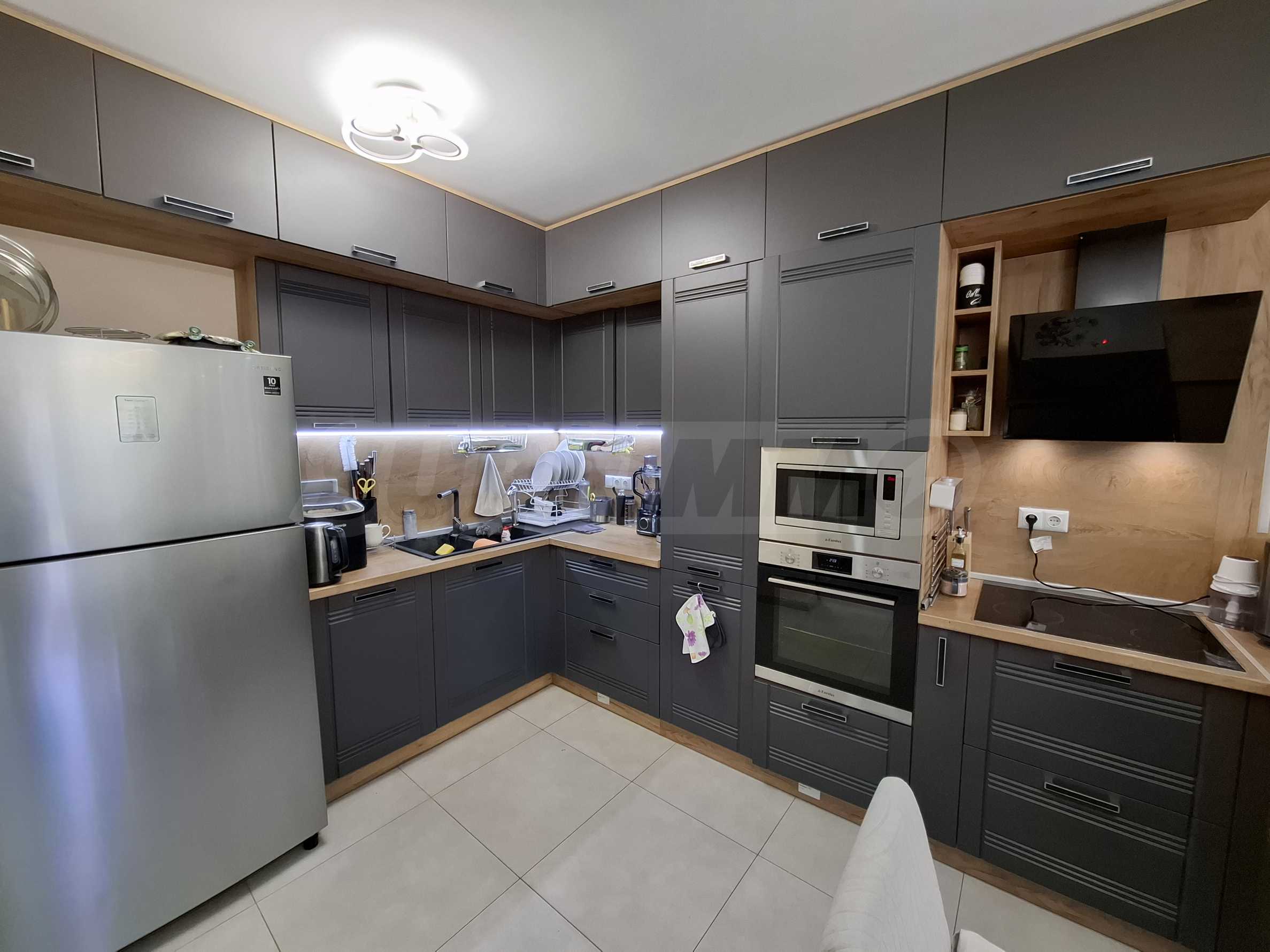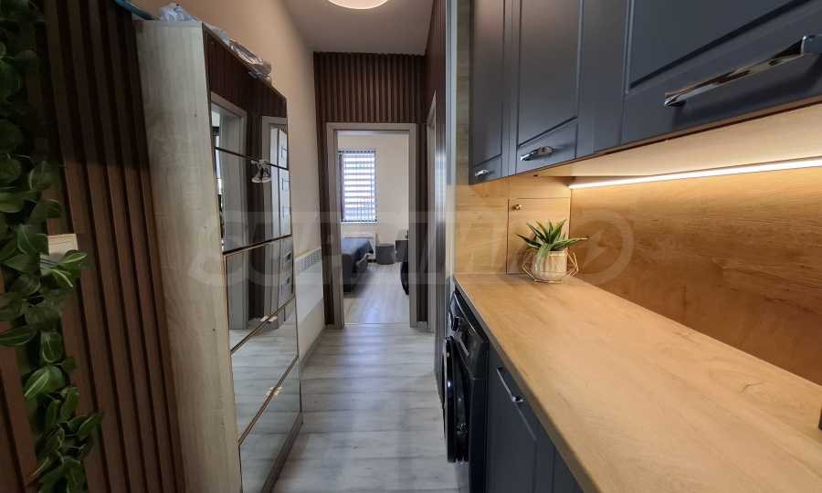 Апартаментът е с модерен интериор, напълно обзаведен и оборудван с висок клас ел. уреди - пералня, вградена фурна и плот с котлони, хладилник, два климатика, два телевизора микровълнова и др. Разполага и с висок клас алармена система за сигурност.