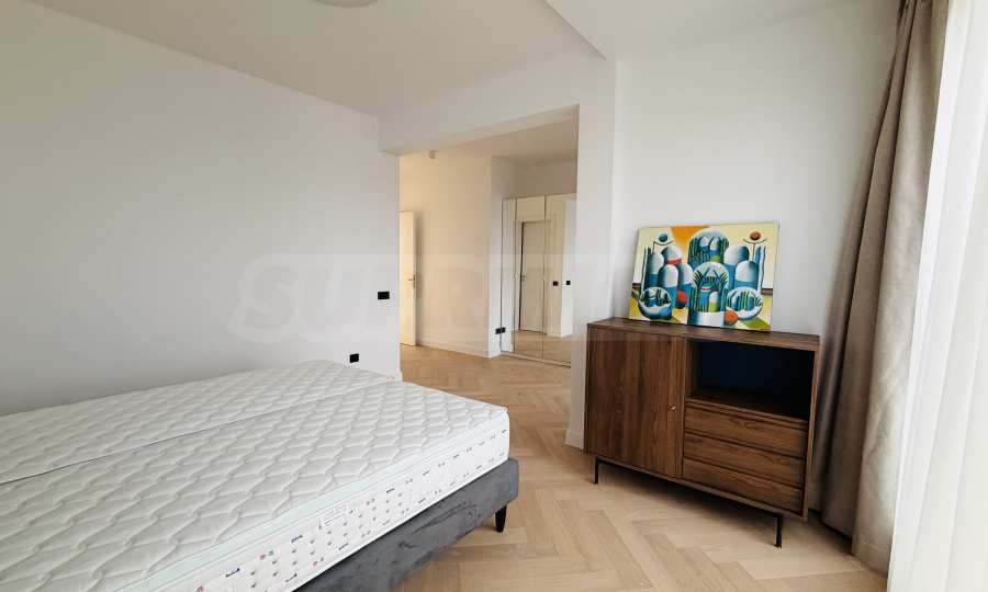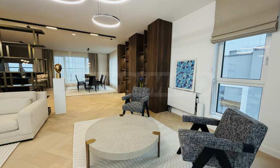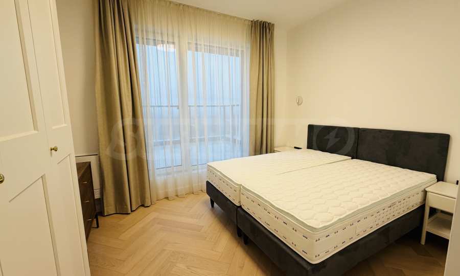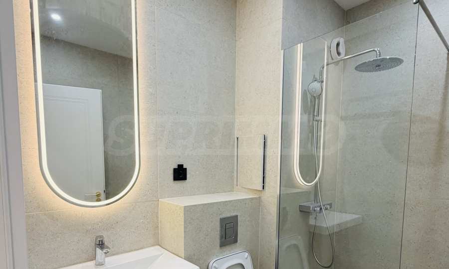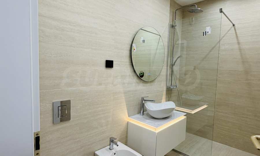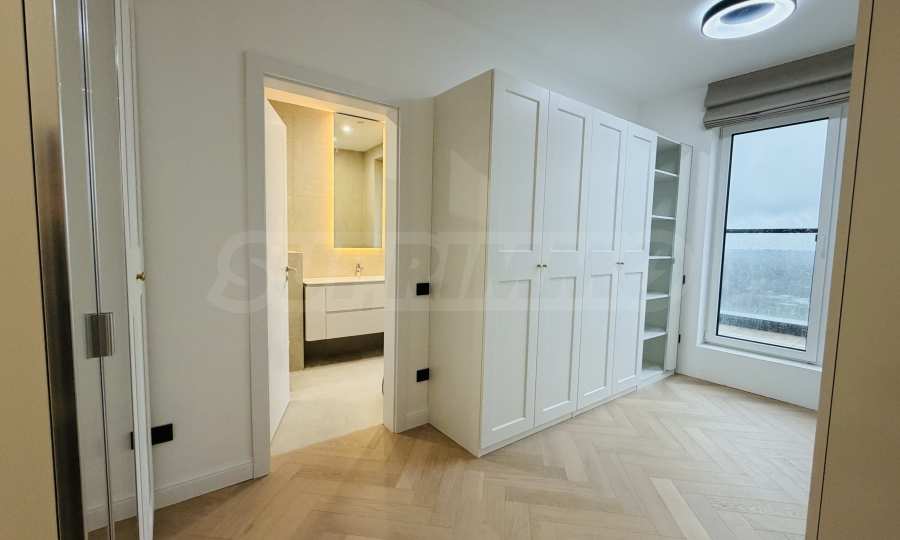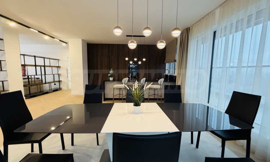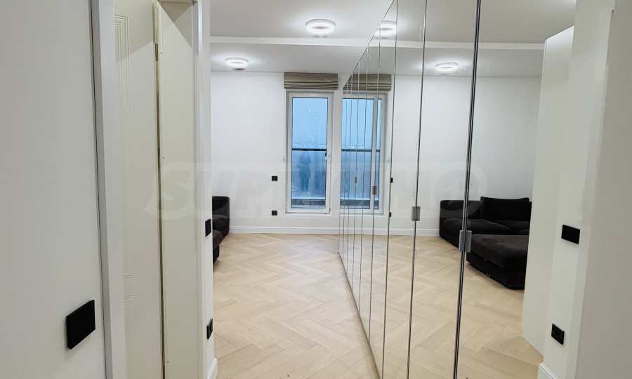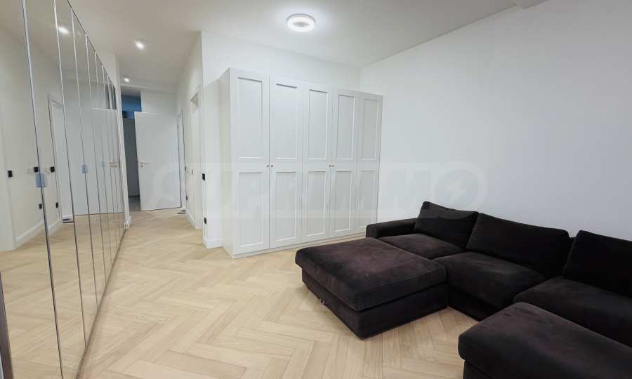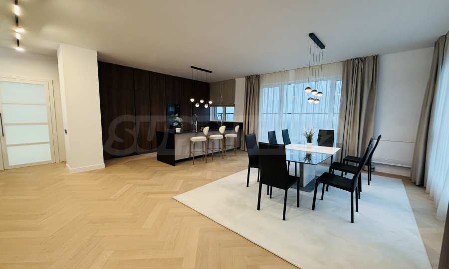 Апартаментът е завършен "до ключ", реализиран по индивидуален интериорен проект с внимателно подбрани материали и мебели от висок клас.
