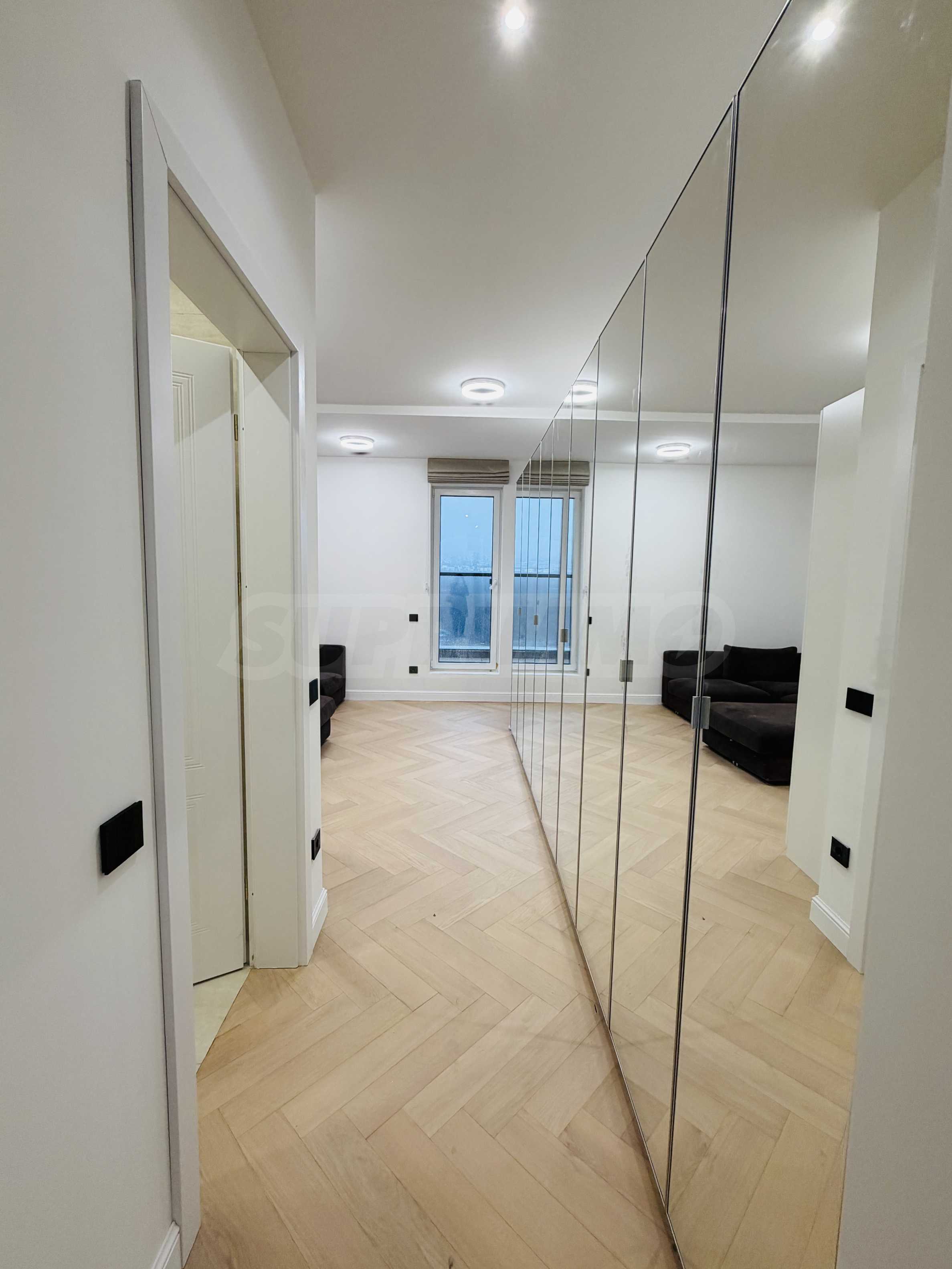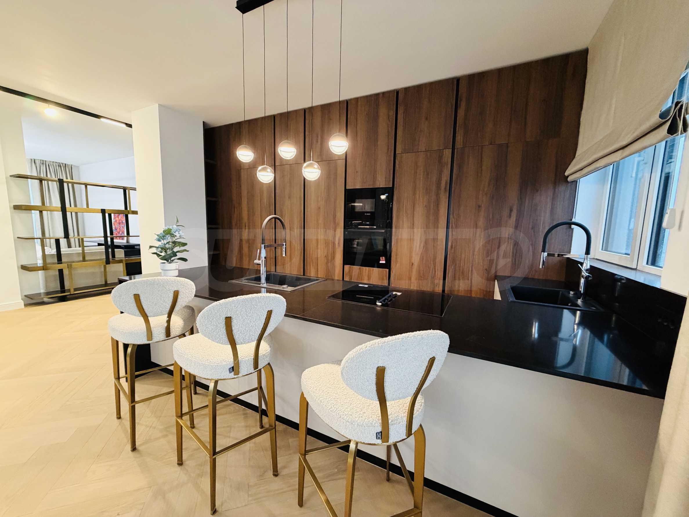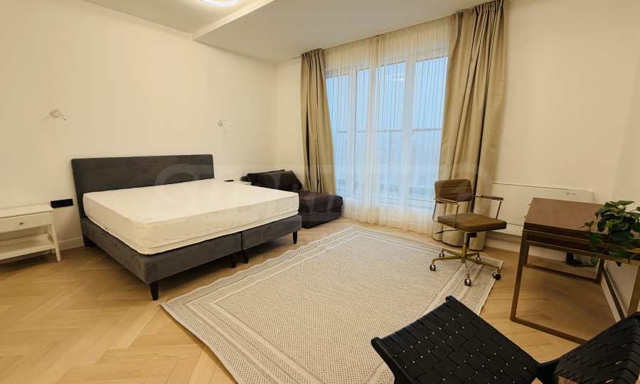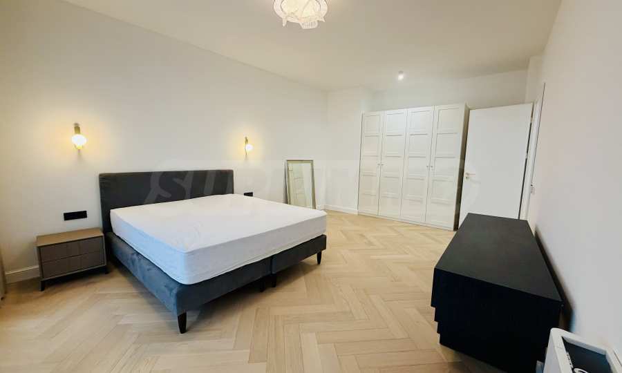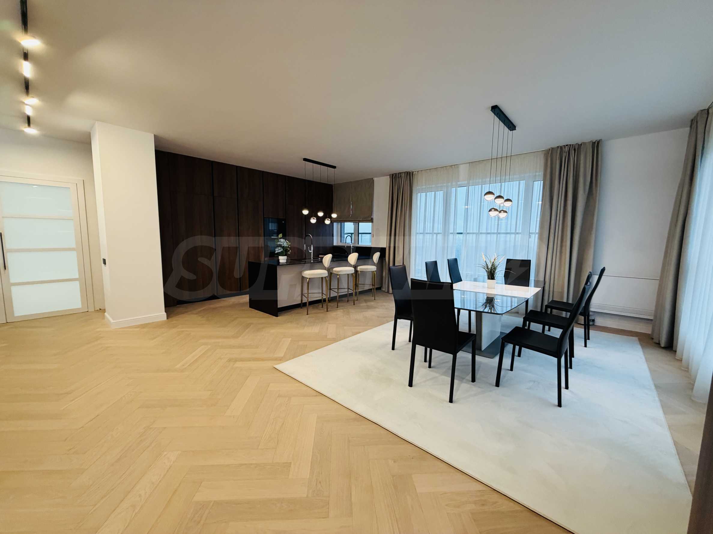 Апартаментът е завършен "до ключ", реализиран по индивидуален интериорен проект с внимателно подбрани материали и мебели от висок клас.