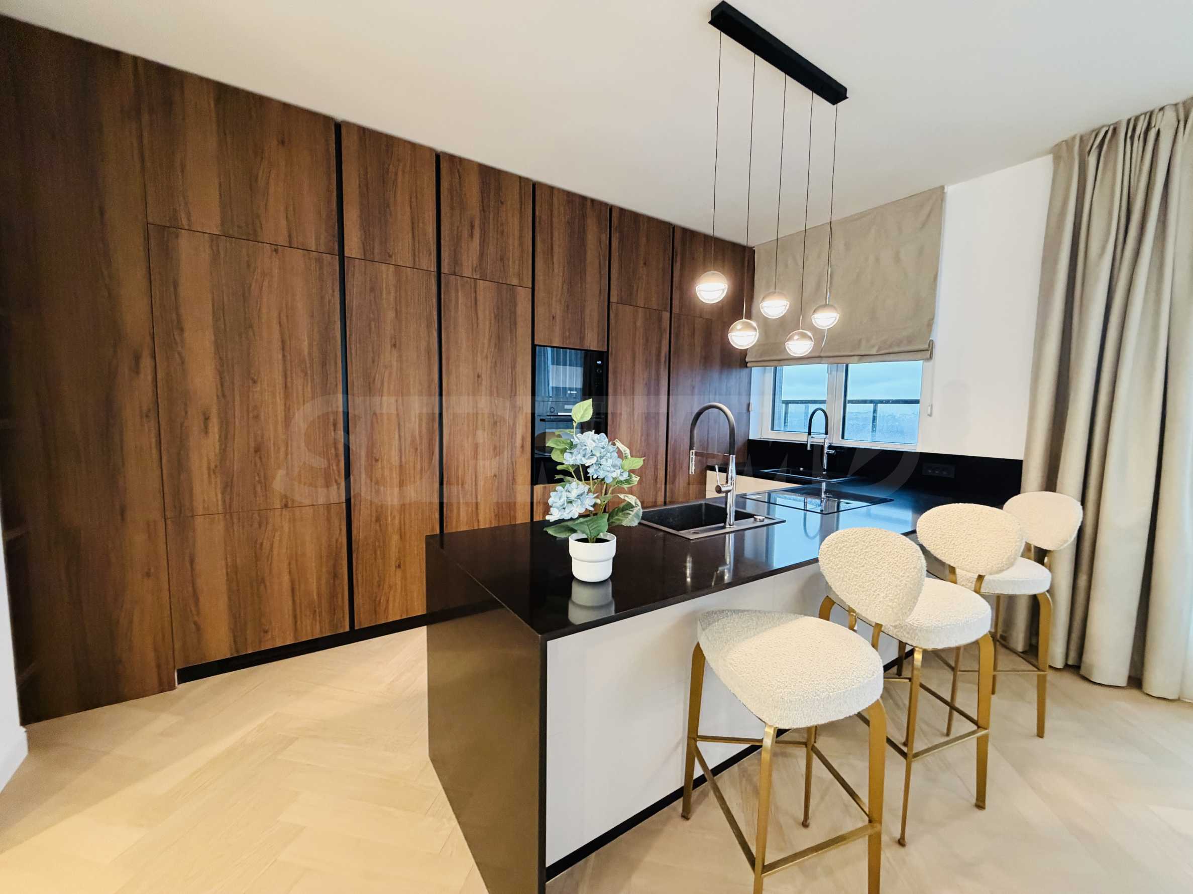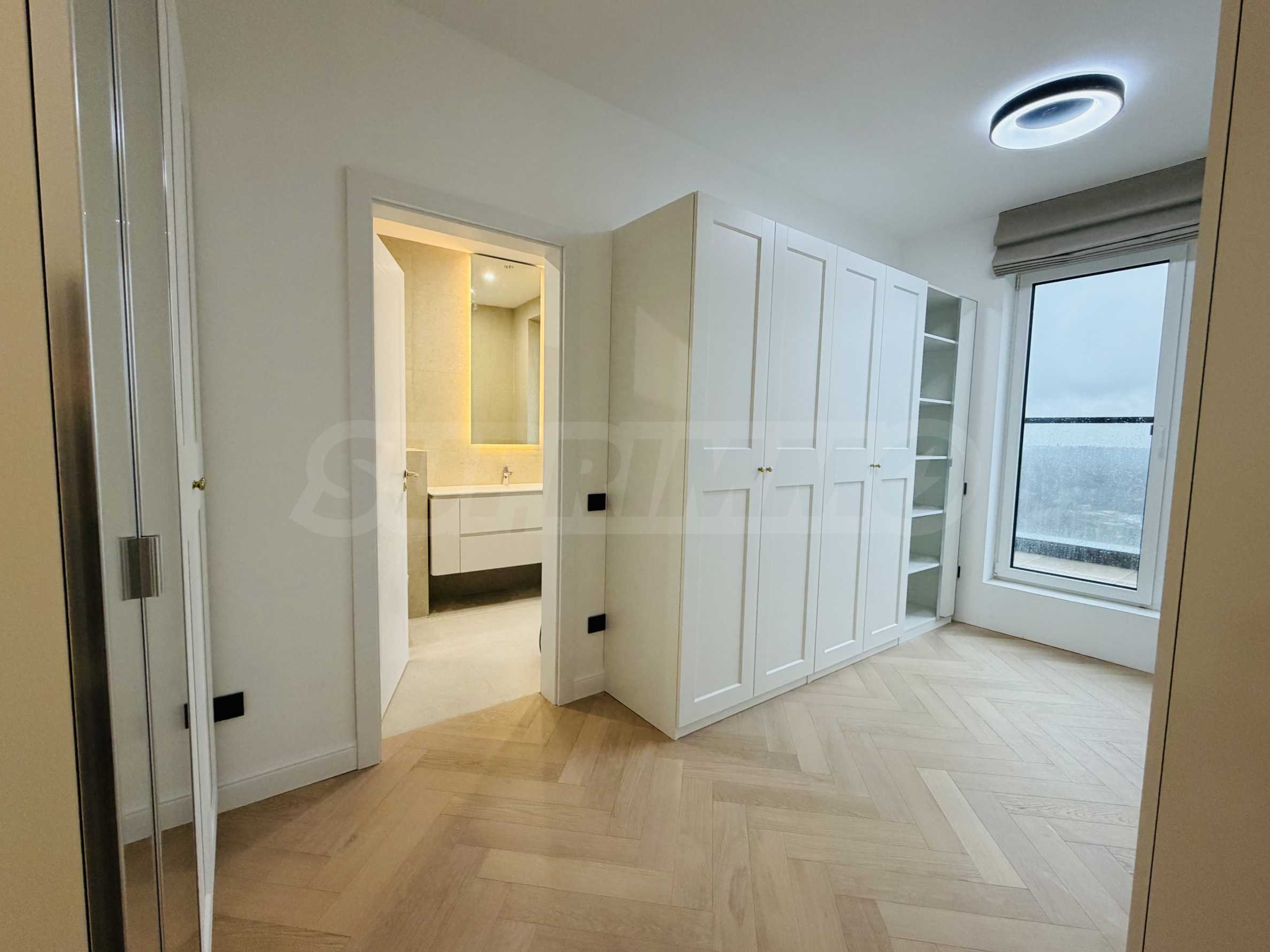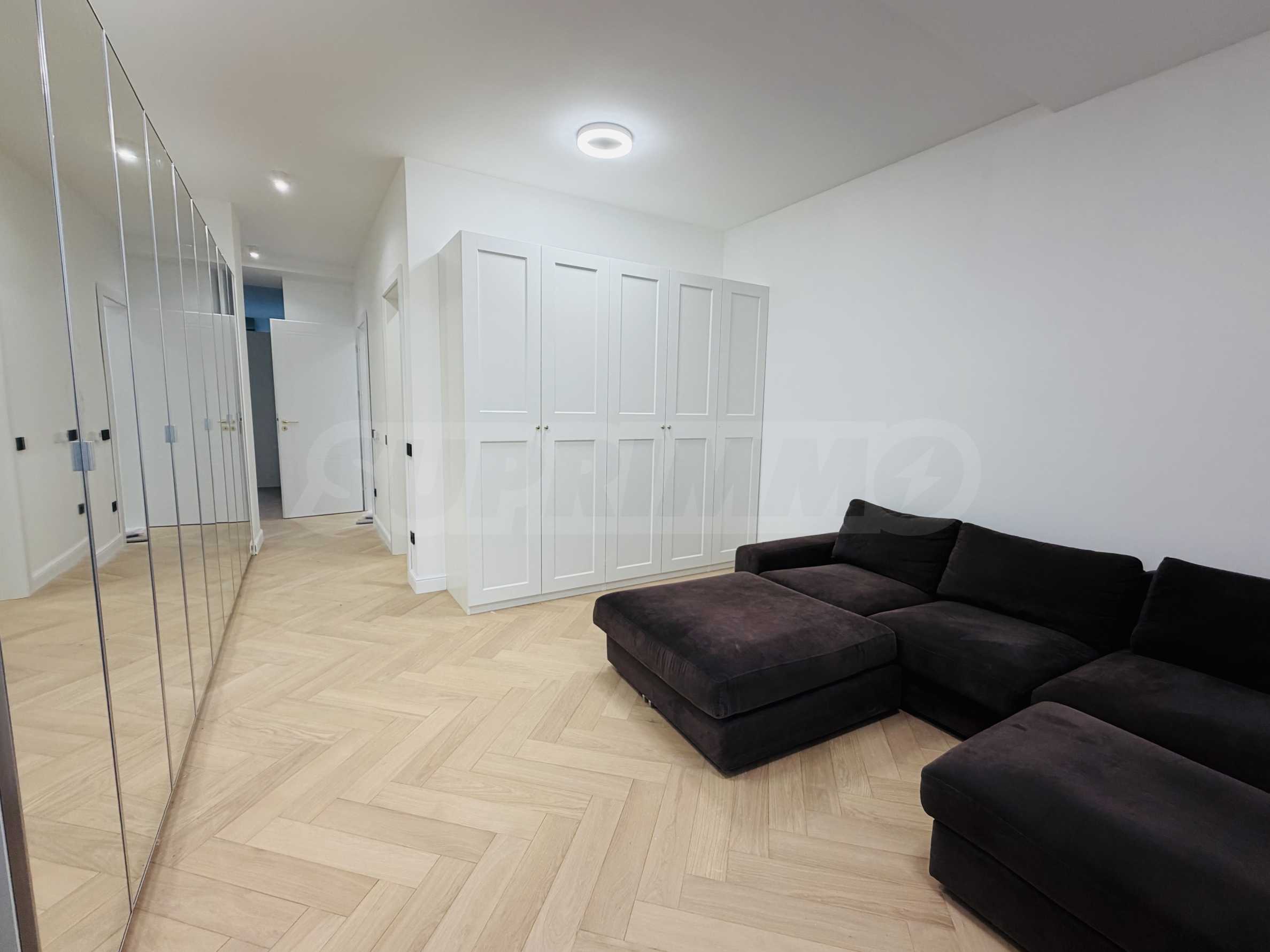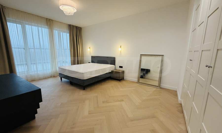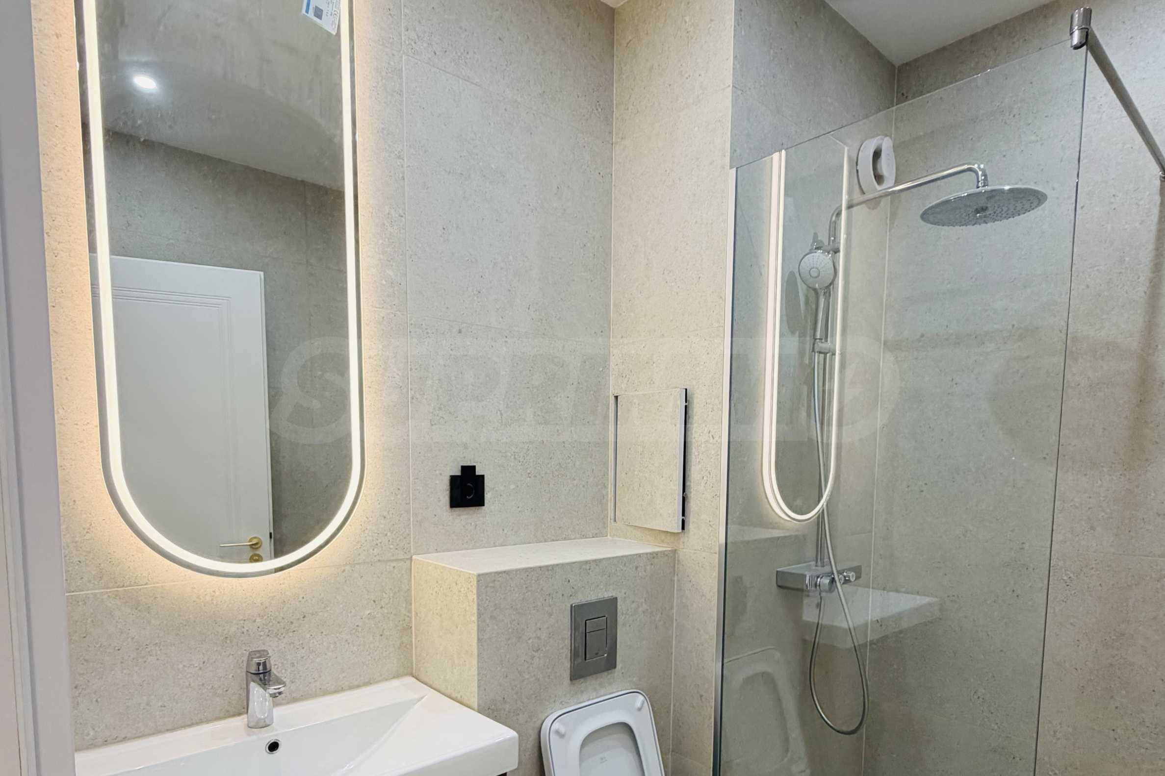 Апартаментът е завършен "до ключ", реализиран по индивидуален интериорен проект с внимателно подбрани материали и мебели от висок клас.
