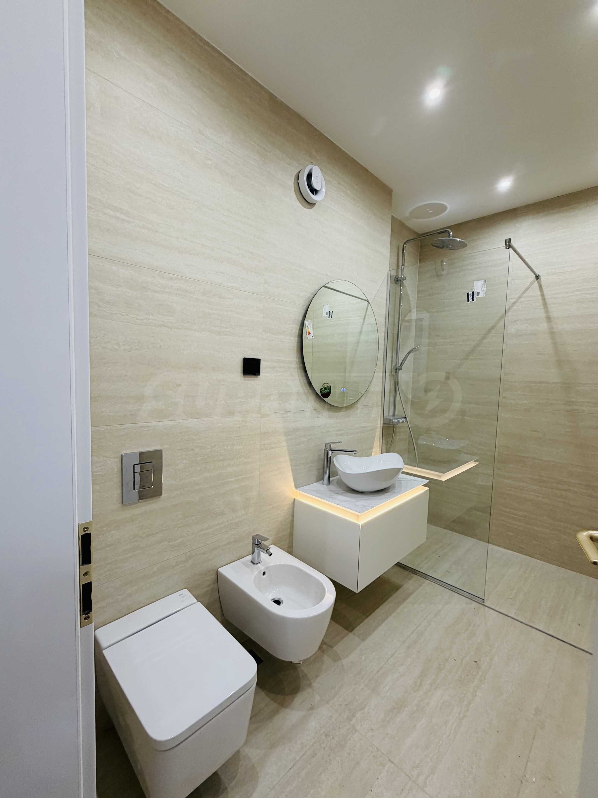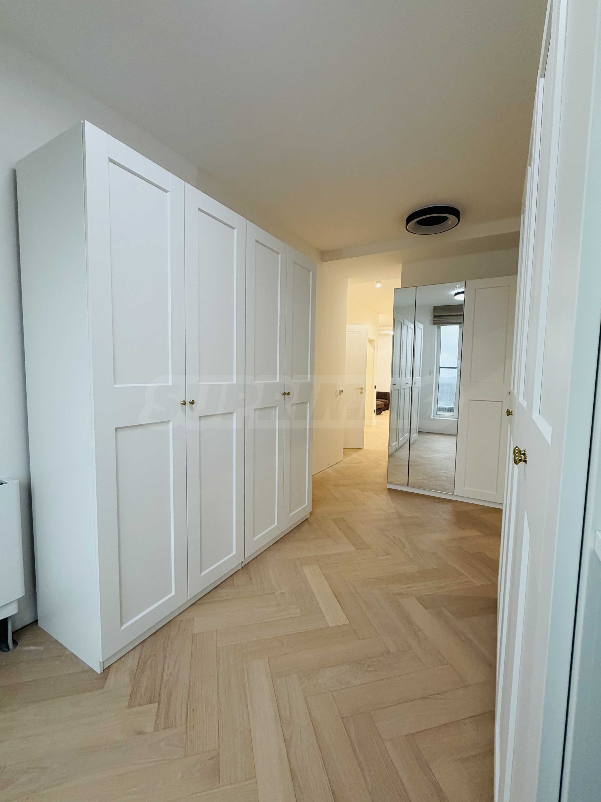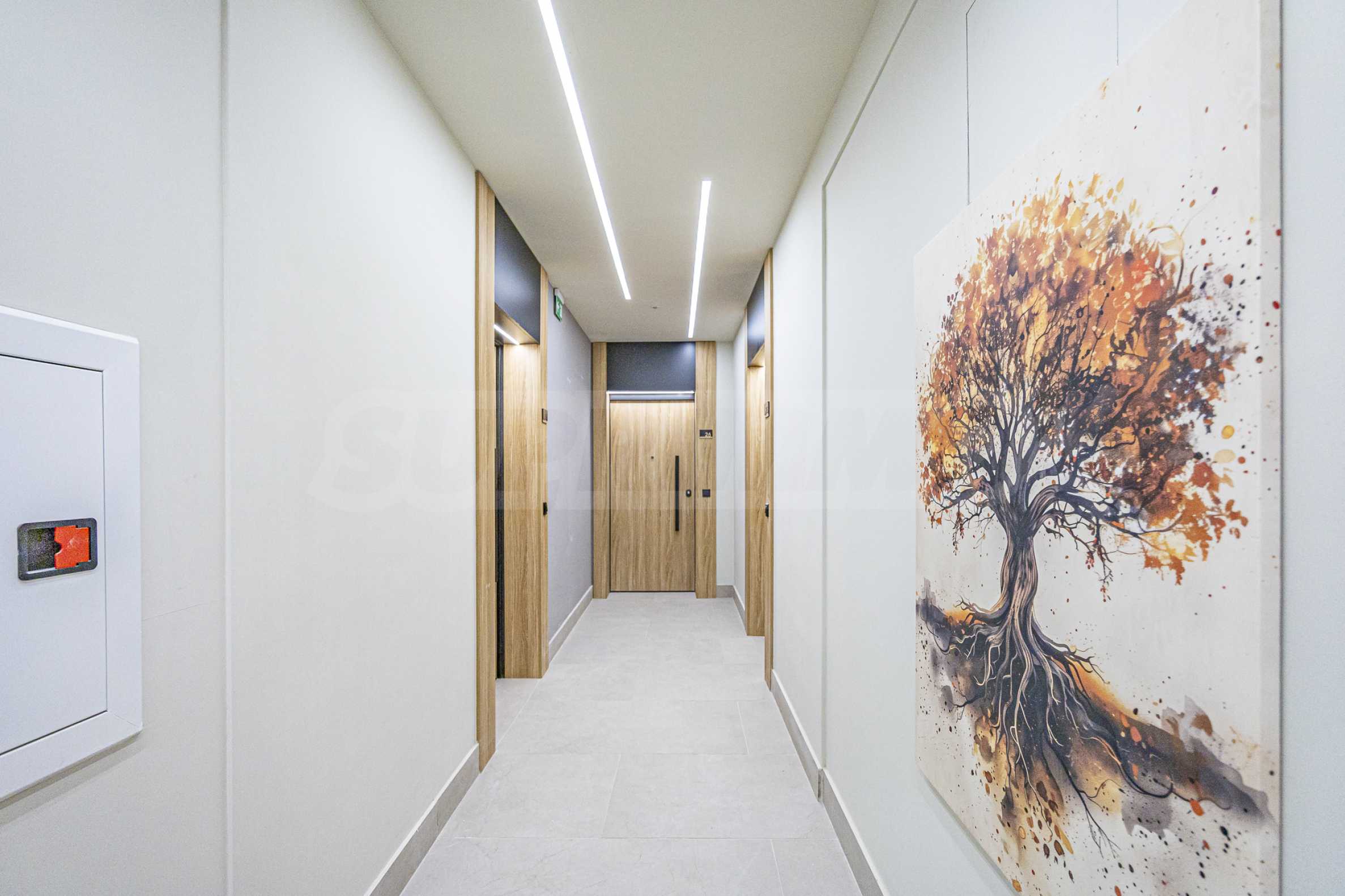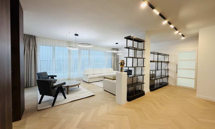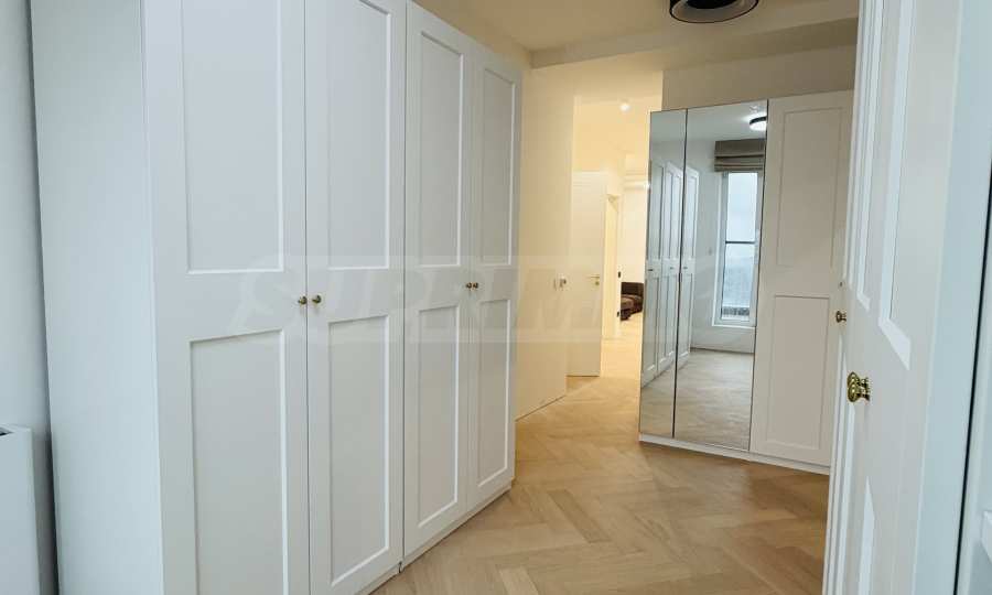 Апартаментът е завършен "до ключ", реализиран по индивидуален интериорен проект с внимателно подбрани материали и мебели от висок клас.