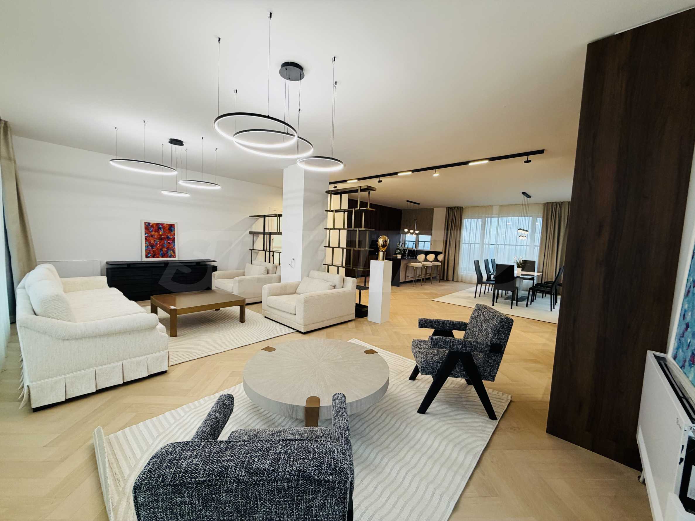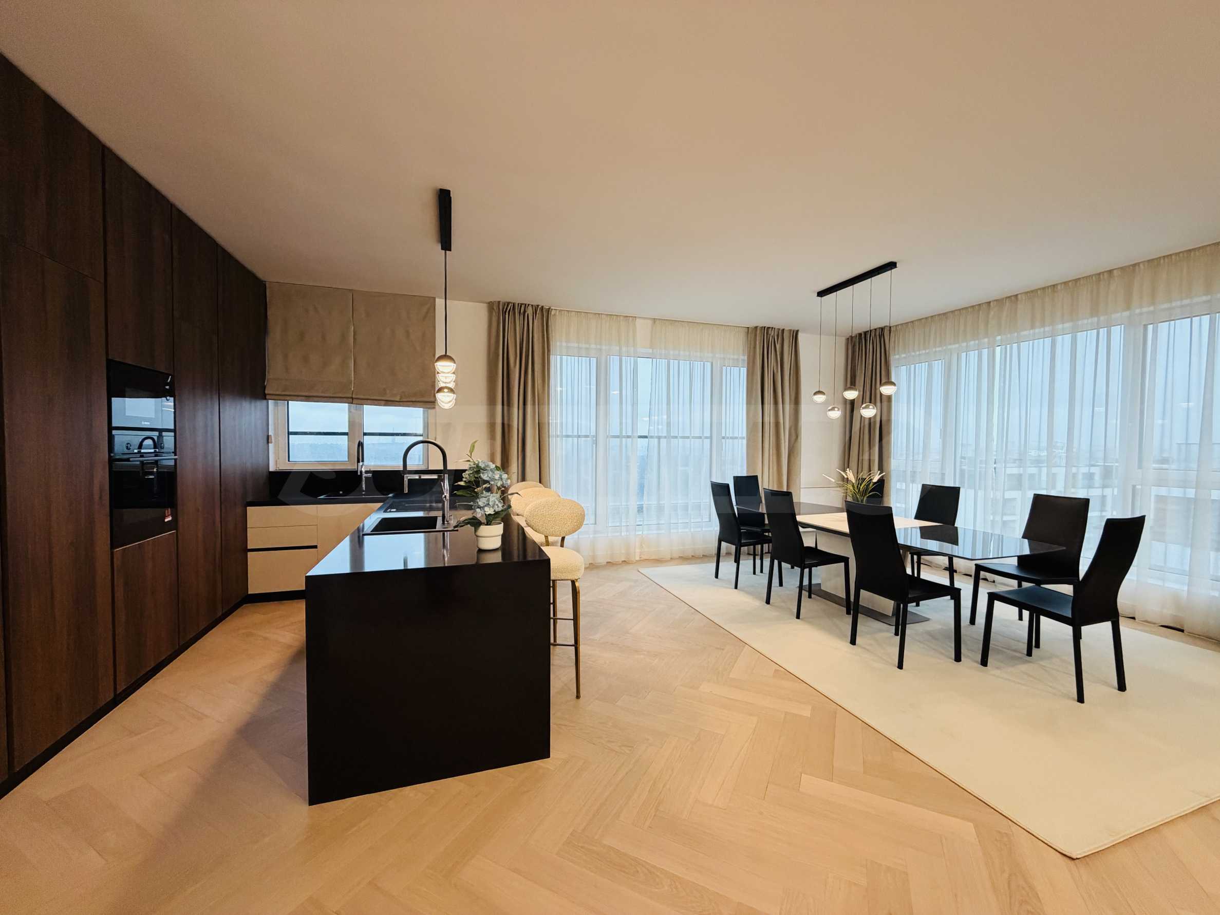 • Впечатляваща, просторна и светла всекидневна с трапезария и кухня от 83 кв.м;