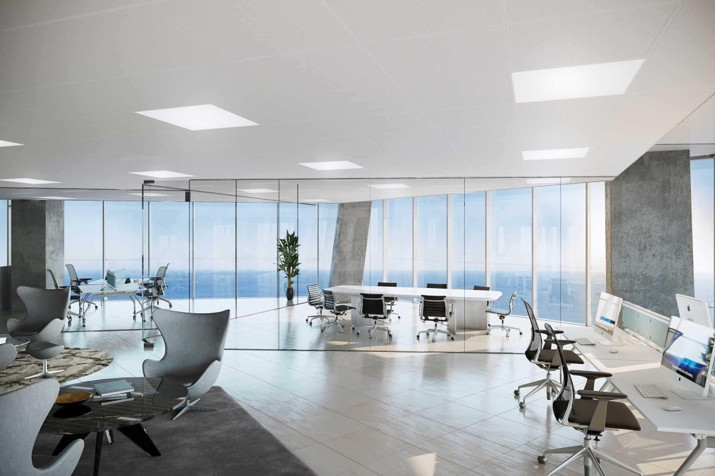 Имотът е разположен на 24-ти етаж и е с обща площ 170 кв.м. Разпределението включва просторна дневна с кухня и две спални.