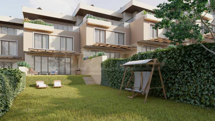 Представяме Ви уникална възможност за закупуване на редови къщи в престижния район на Банкя, разположени на комуникативно място с бърз достъп до главната улица. Комплексът включва общо 7 модерни къщи, всяка с просторни и светли помещения, функционално разпределение и двор с различни опции за големина. В допълнение, в близост до комплекса ще бъде изграден и магазин, който ще осигури допълнително удобство за бъдещите обитатели.