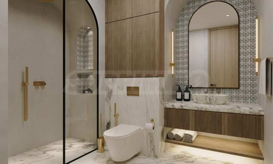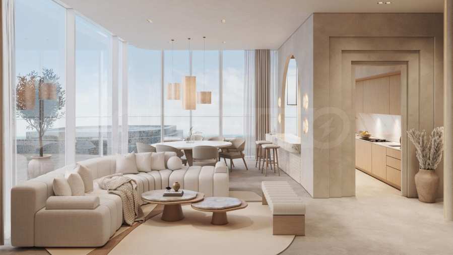 Интериорите са проектирани с внимание към всеки детайл – високи тавани и панорамни прозорци от пода до тавана осигуряват усещане за светлина и простор, докато морската панорама се превръща в естествен фон на Вашето ежедневие.