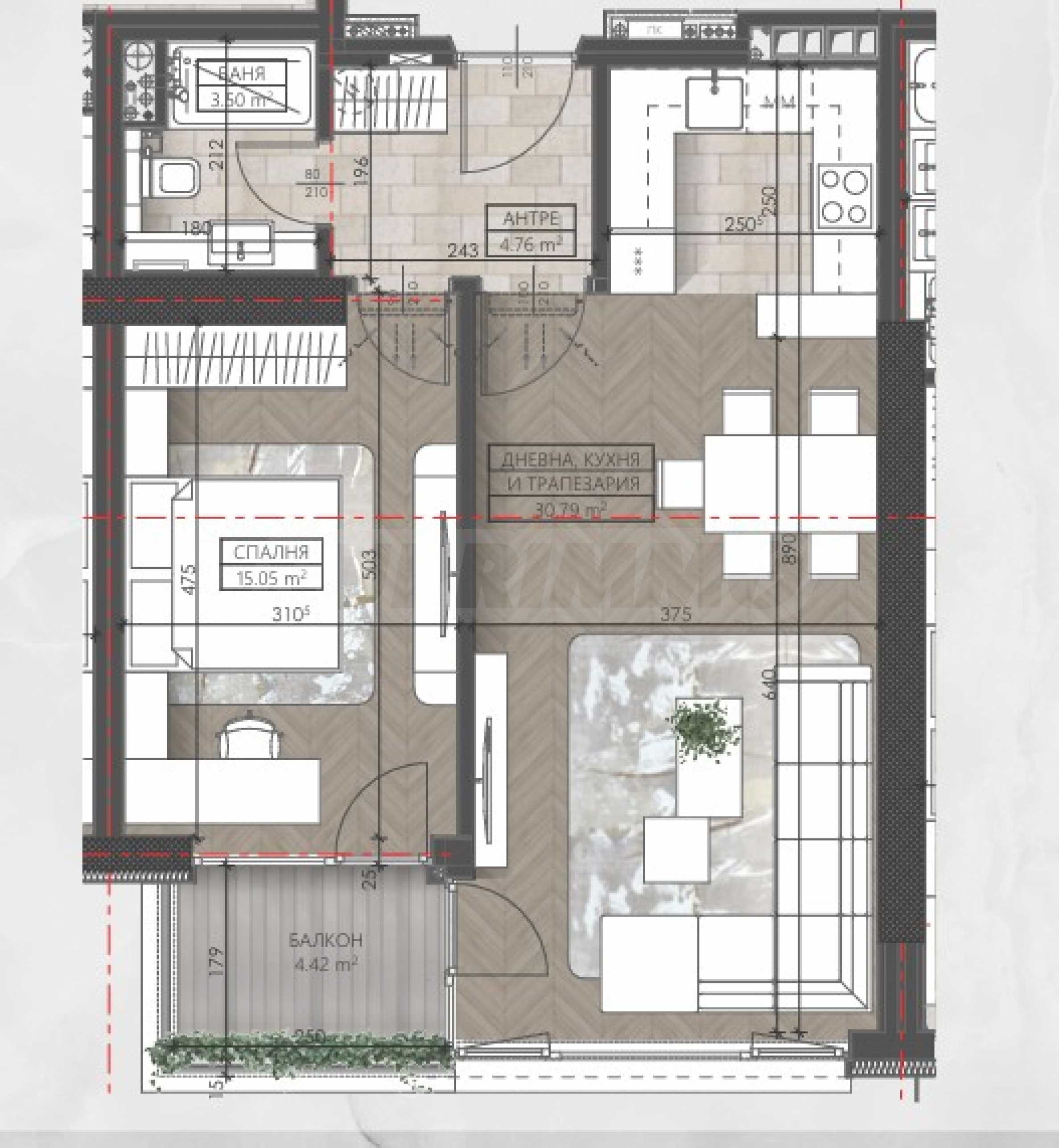 • Монолитна стоманобетонна конструкция, проектирана и изпълнена по най-съвременни стандарти за дълготрайност и устойчивост;