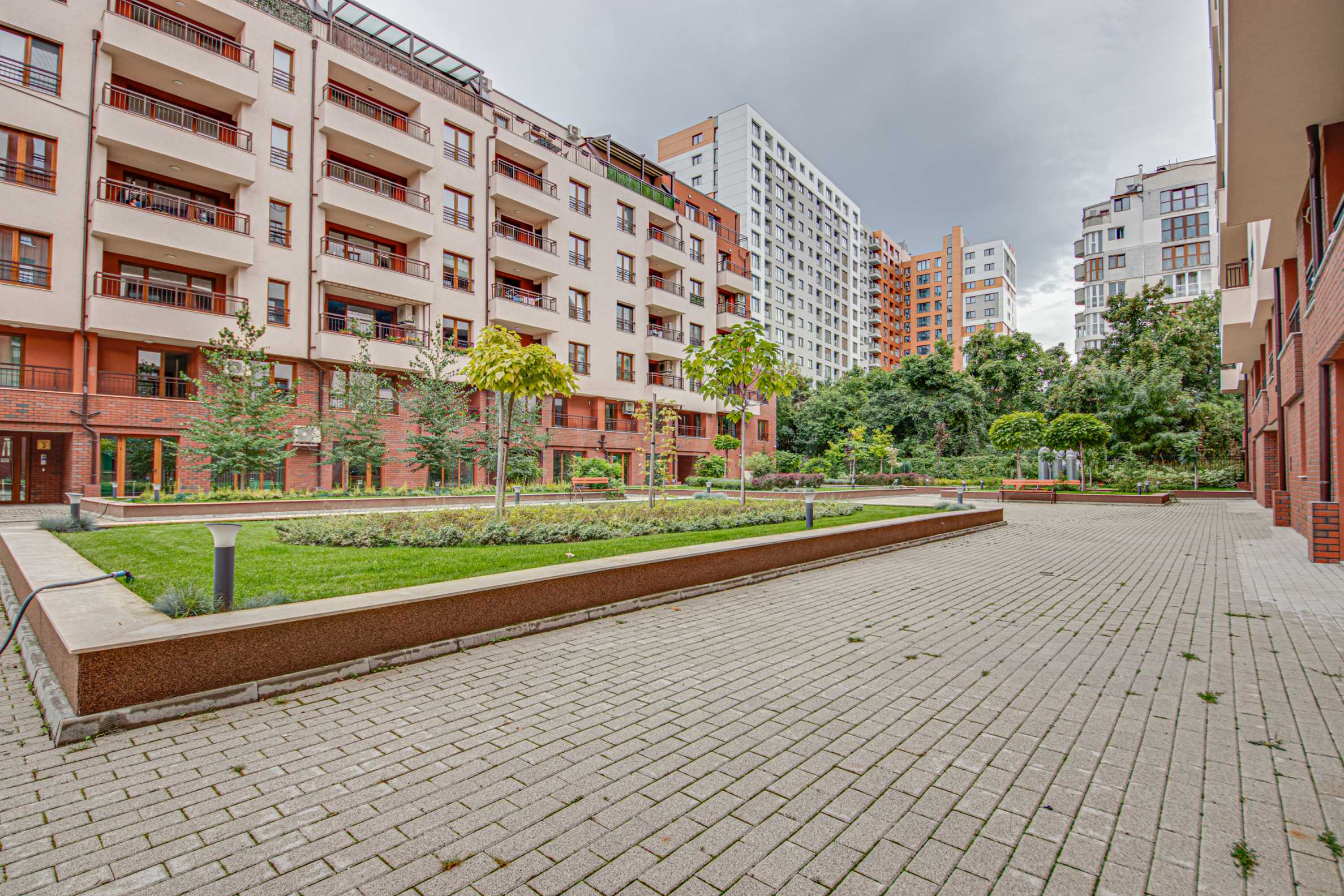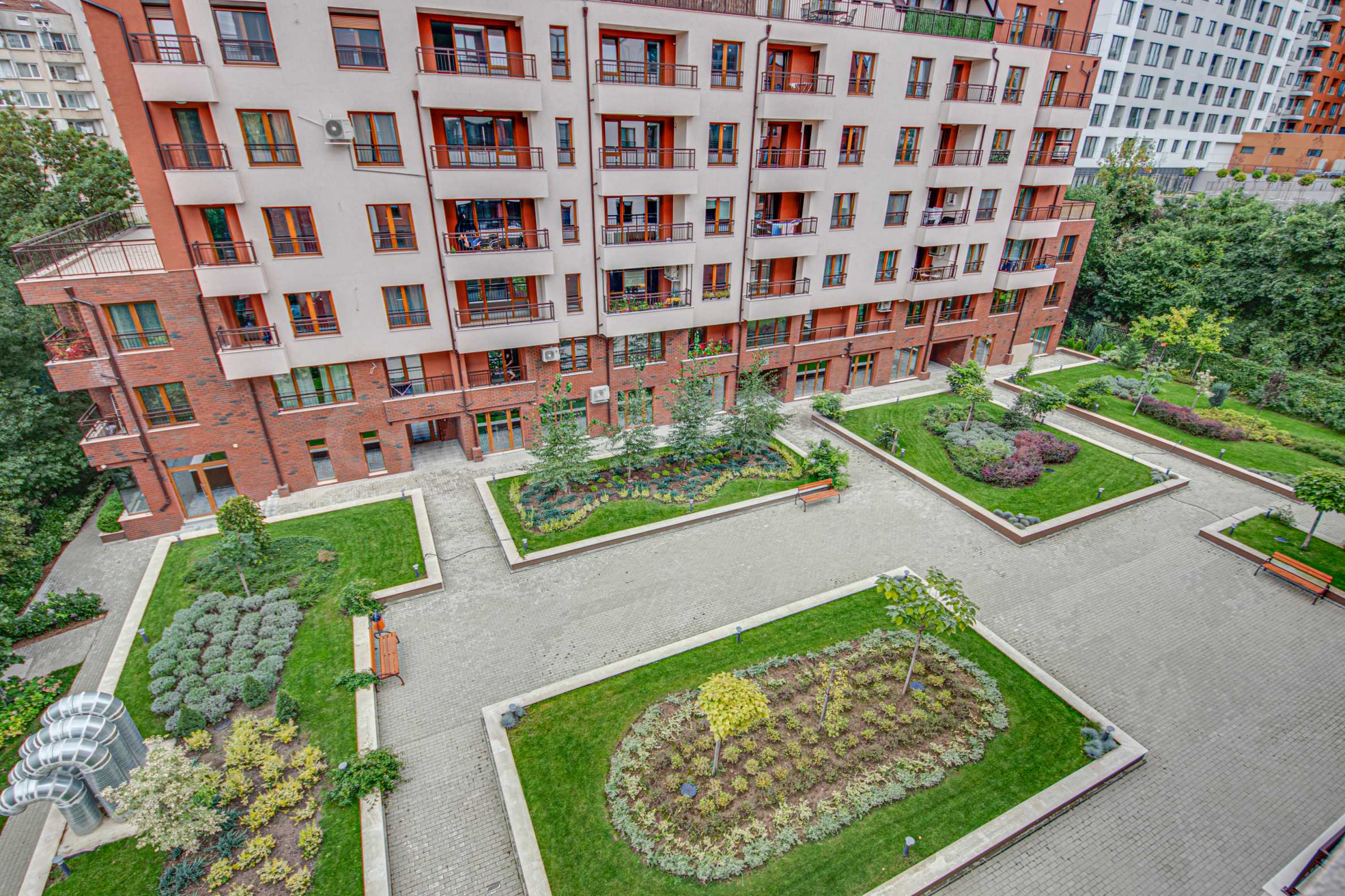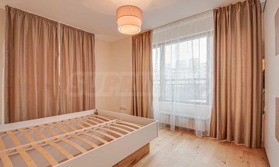 Апартаментът предлага престижно местоположение в близост до всички градски удобства, а сградата е висококачествено строителство, с озеленен двор.