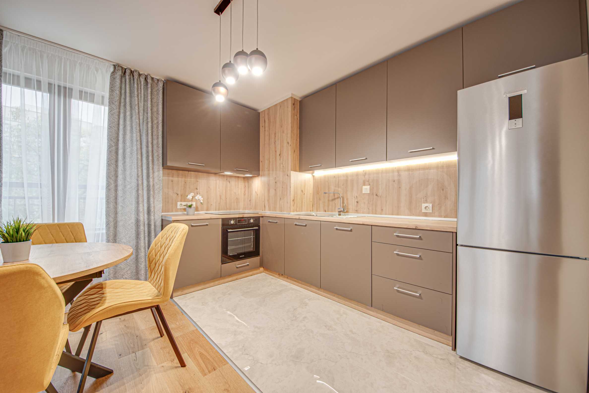 Имотът е разположен на 4-ти етаж, предлага 120 кв.м чиста площ. Помещенията са светли, завършени с качествени довършителни работи и интериор в топли тонове, с подбрани модерни мебели.