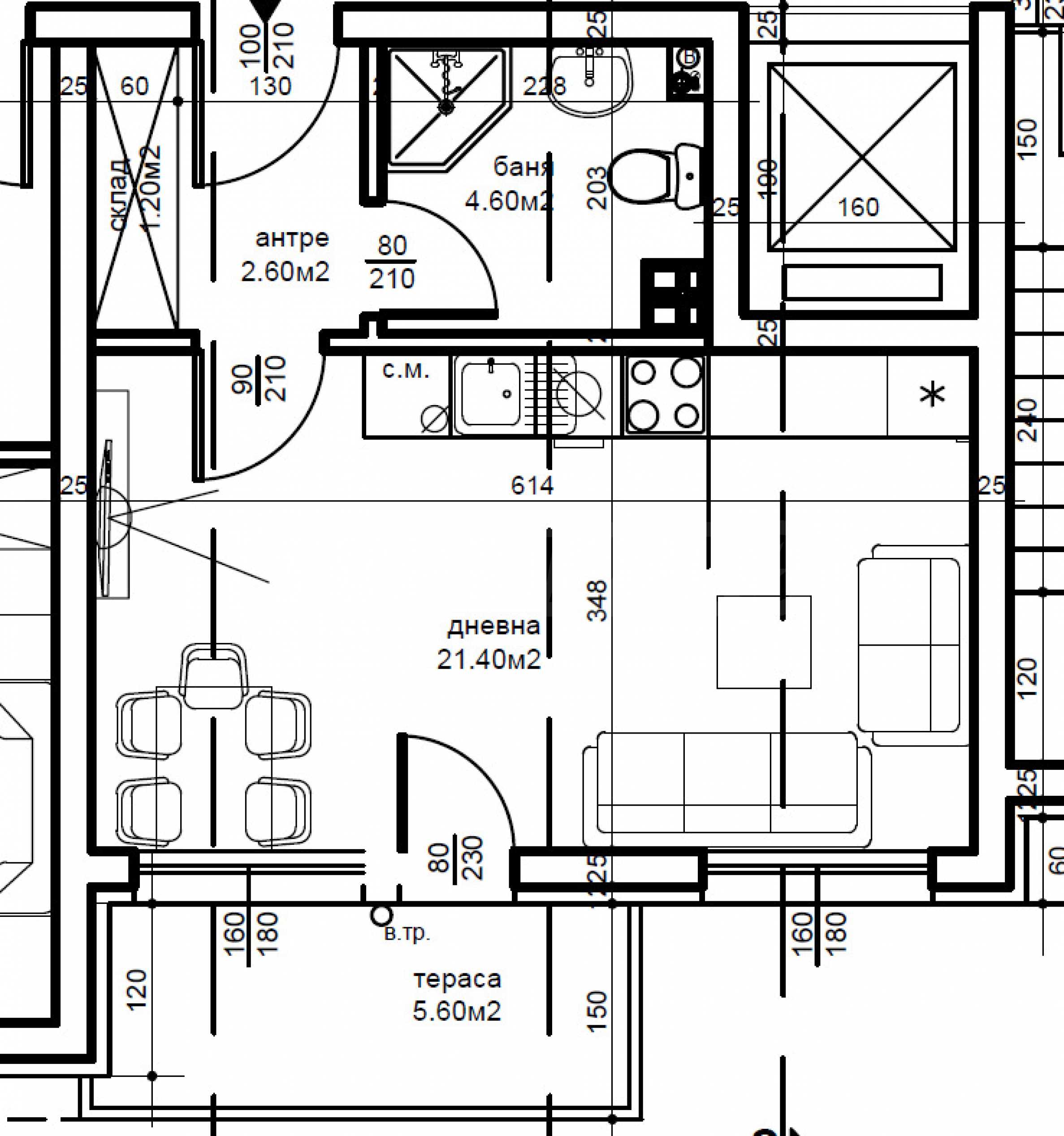 • конструкция - монолитна стоманобетонна конструкция с външни 25 см тухлени стени с ефективна топлоизолация;