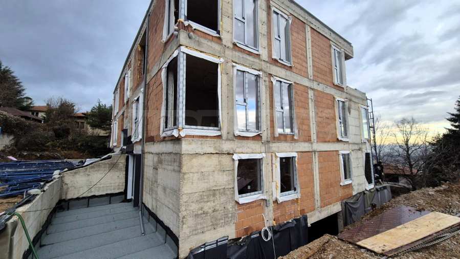 • Вентилируема окачена фасада с облицовка от естествен камък и топлоизолация – каменна вата 10 см;