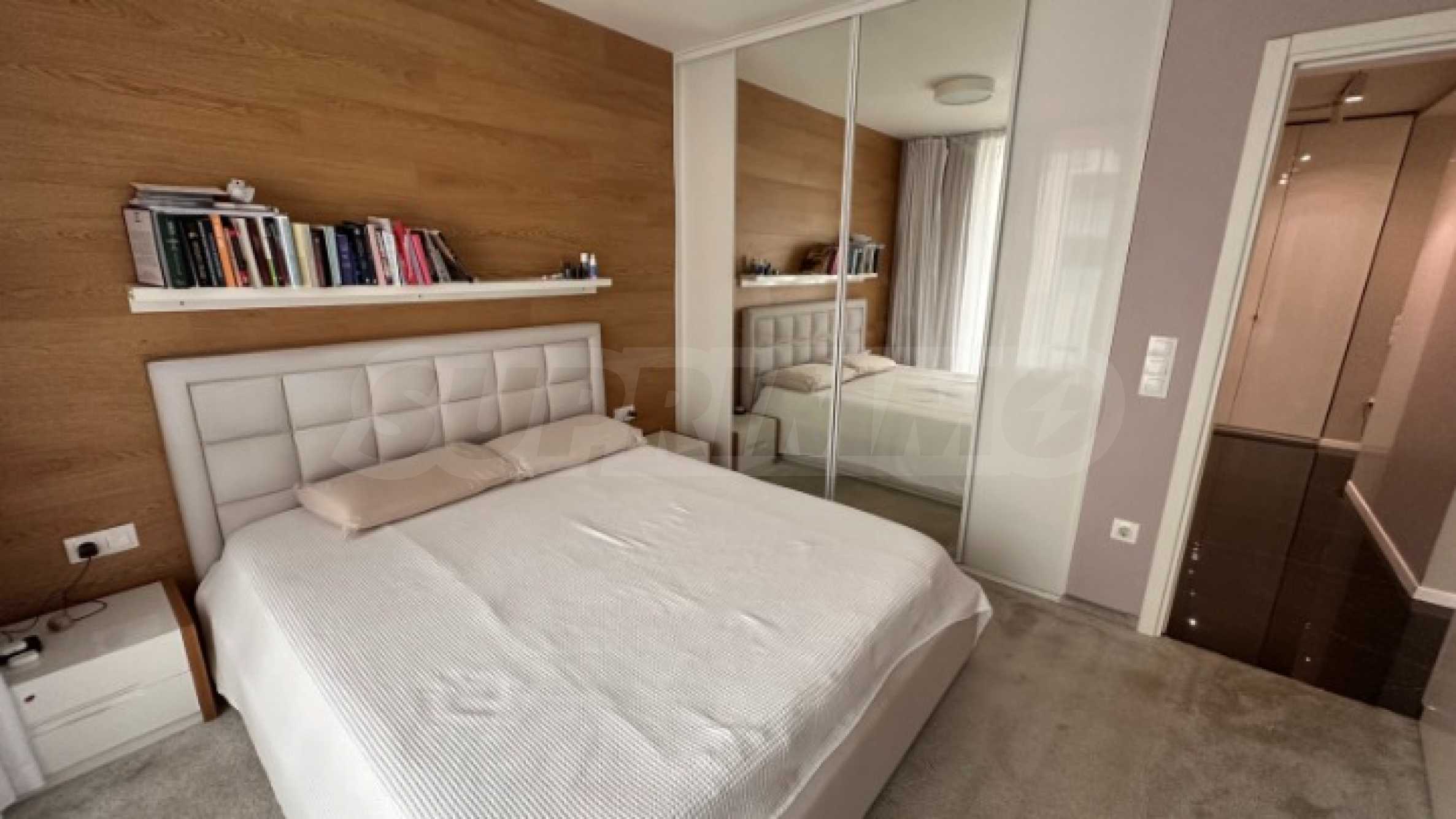 С площ от 110 кв.м, апартаментът впечатлява с функционално разпределение, високи тавани и изобилие от естествена светлина. Интериорът е завършен с внимание към всеки детайл, в съвременен и изискан стил.