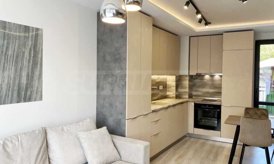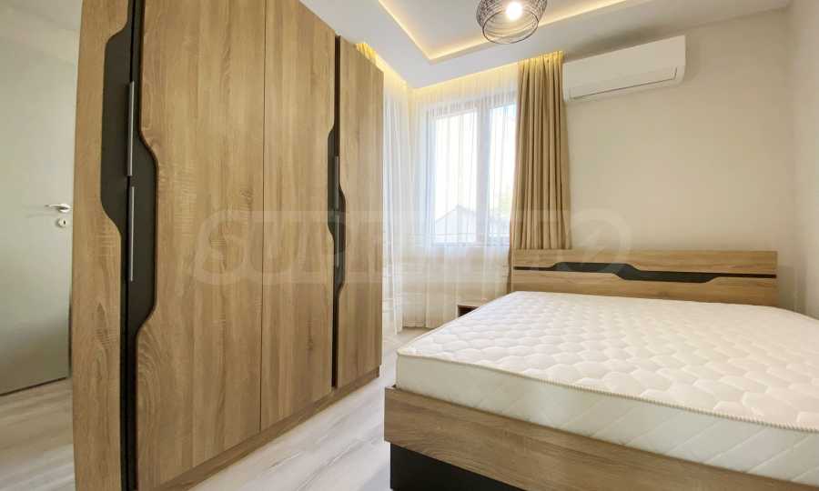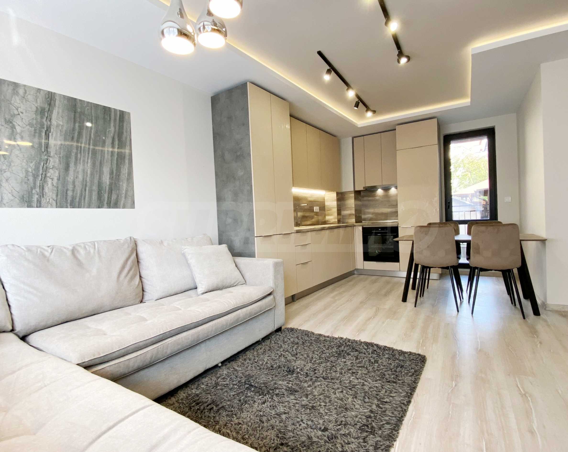 Апартаментът е напълно обзаведен и оборудван с всичко необходимо, с мебели и ел. уреди в гаранция и с висок енергиен клас, включително съдомиялна. Разполага и с smart TV, както и оптичен интернет. Отоплението и охлаждането са решени с инверторни климатици във всяка стая.
