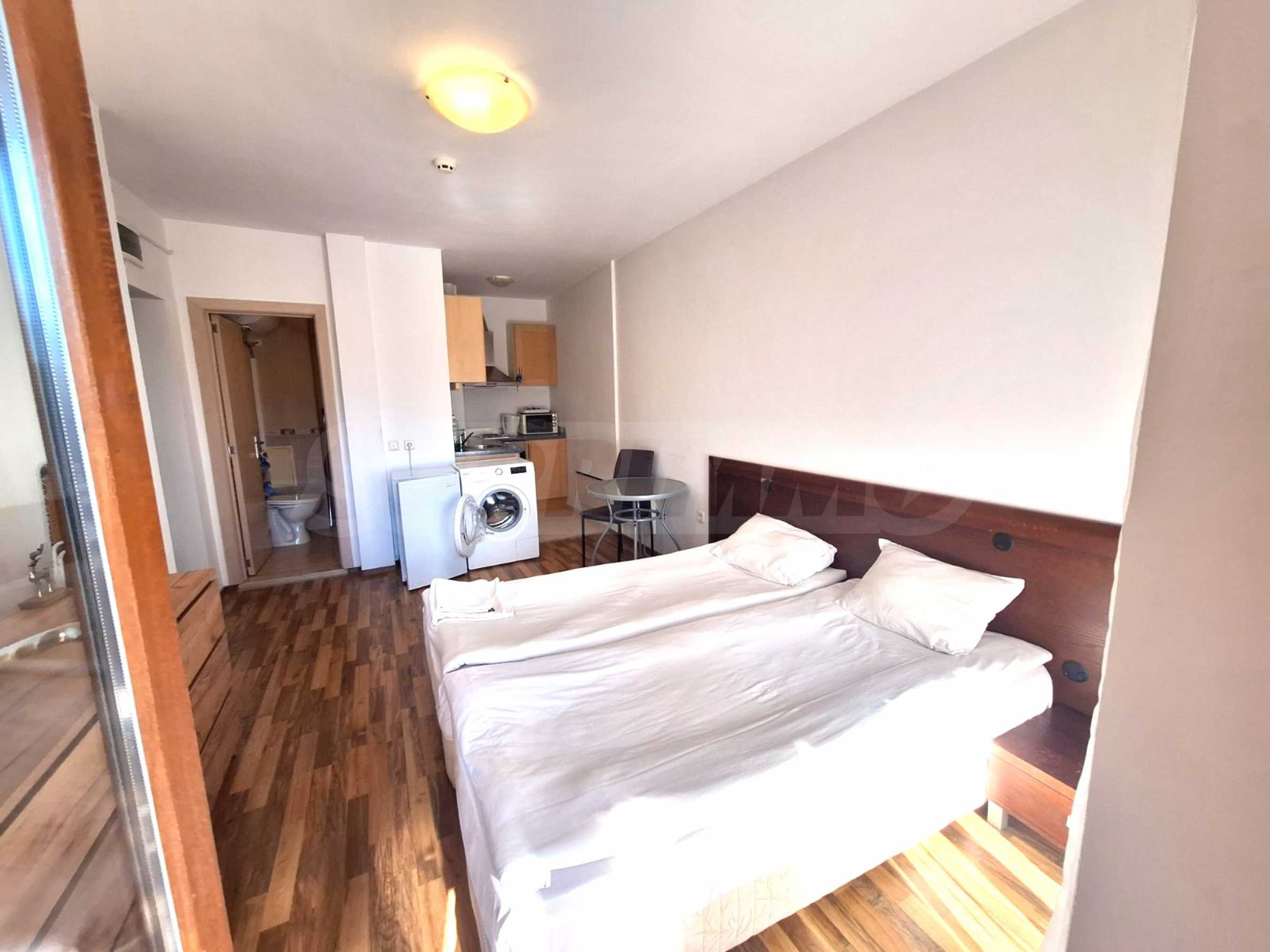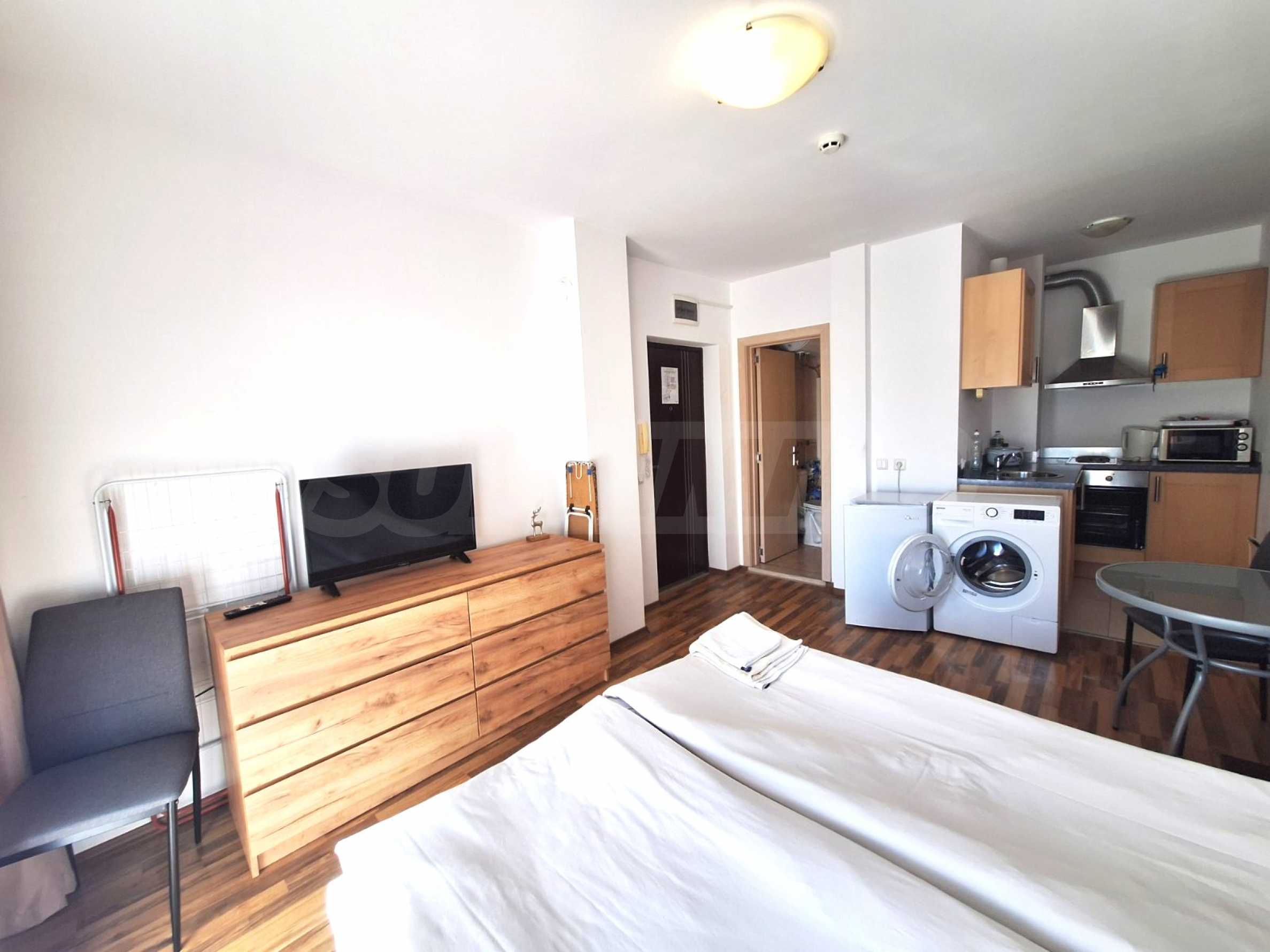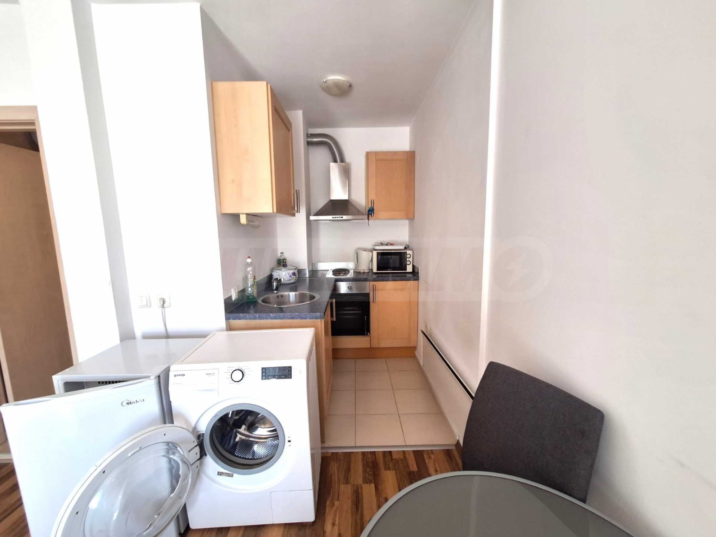 Дневна зона с обособен кухненски бокс, пералня, хладилник и маса за хранене;